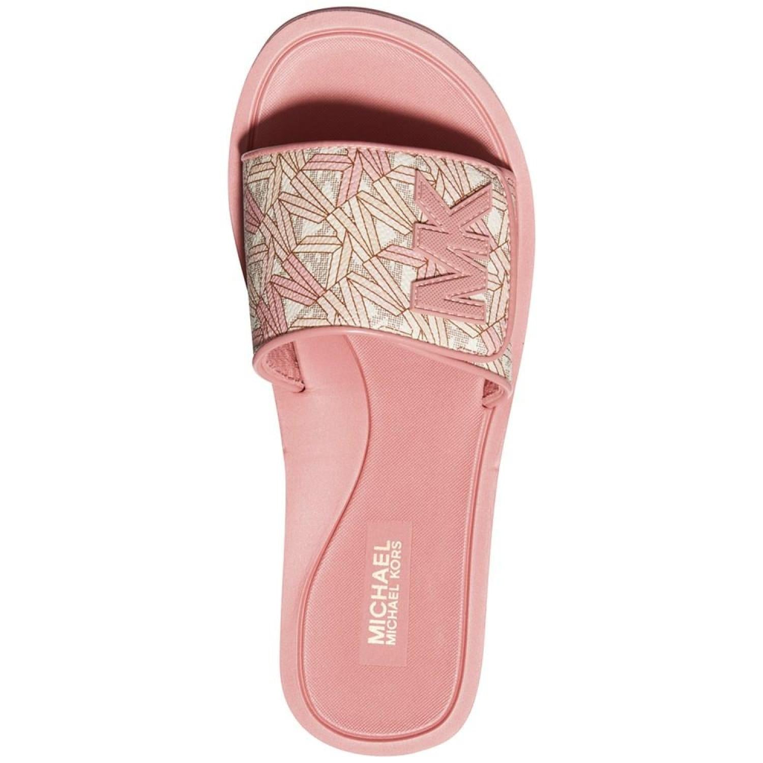 • Fresh and sporty fashion combine in the chunky platform and casual slip-on stylings of the MK slides from Michael Michael Kors.