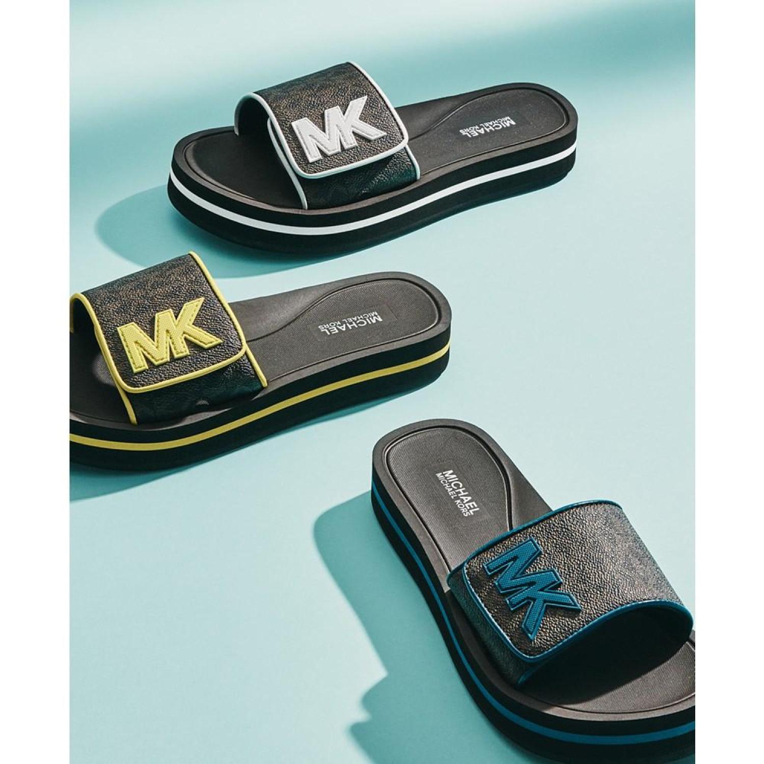 Fresh and sporty fashion combine in the chunky platform and casual slip-on stylings of the MK slides from Michael Michael Kors.