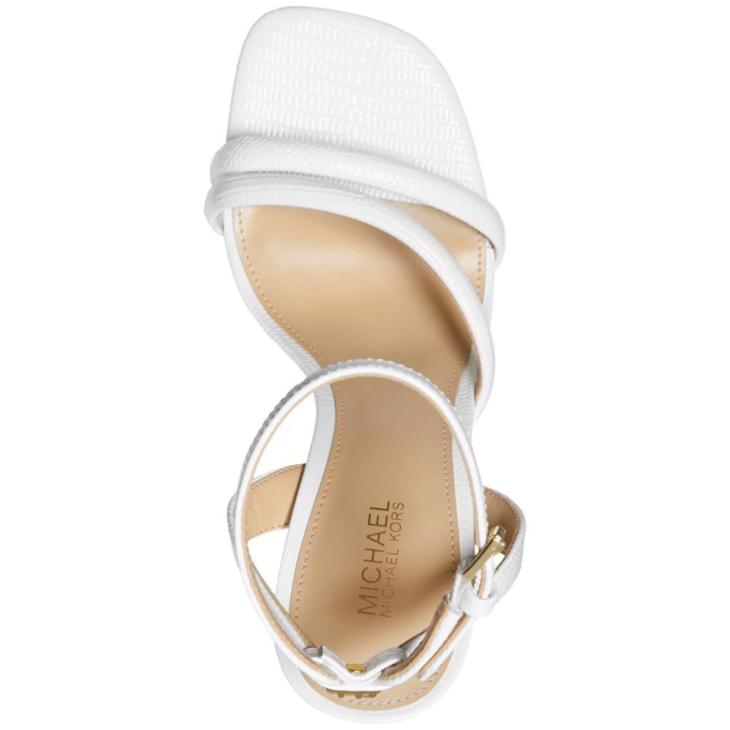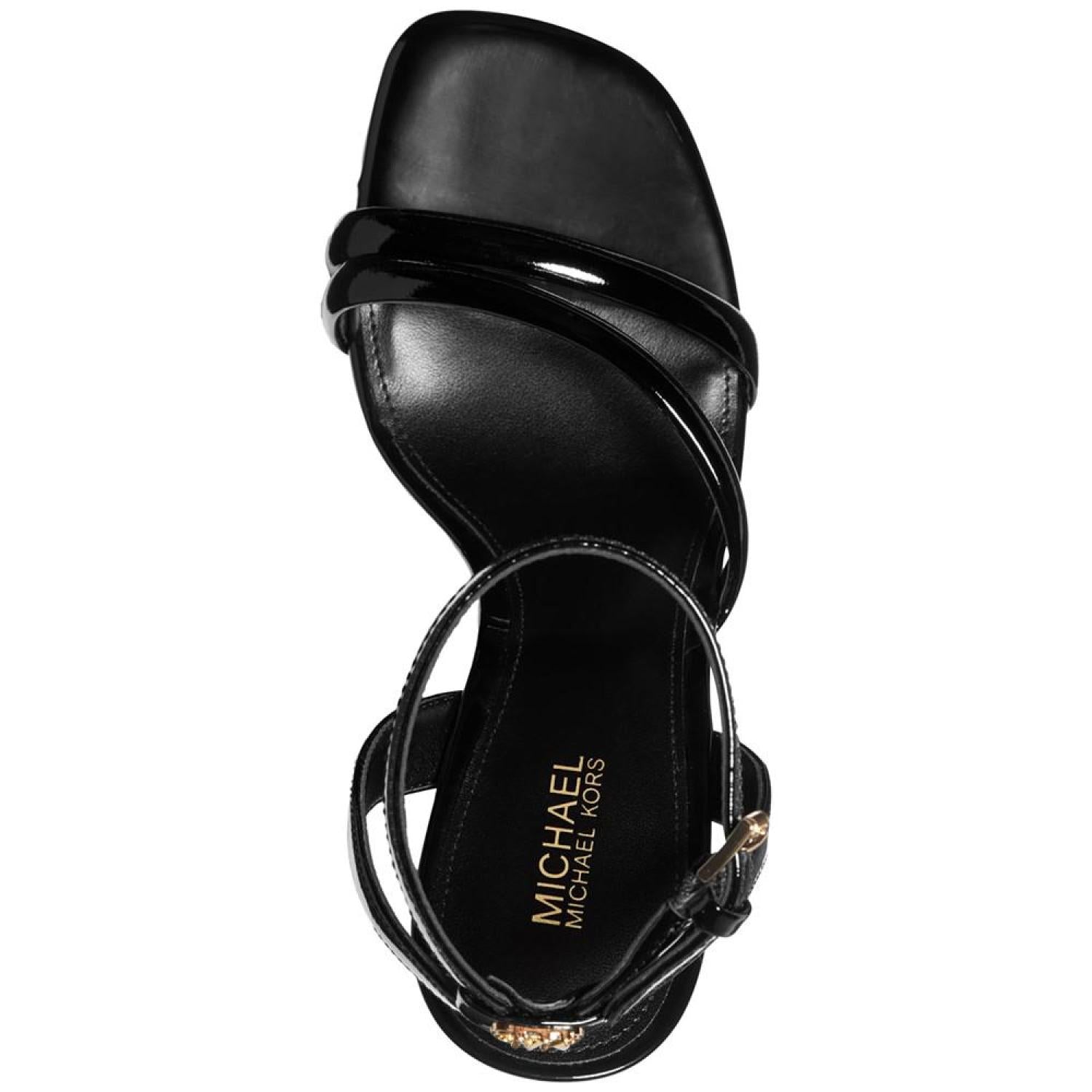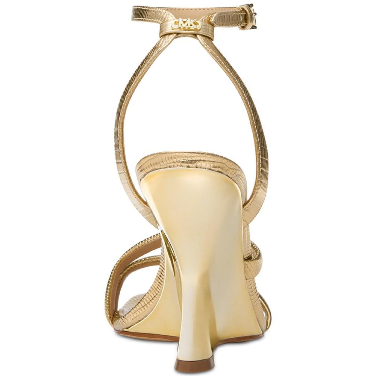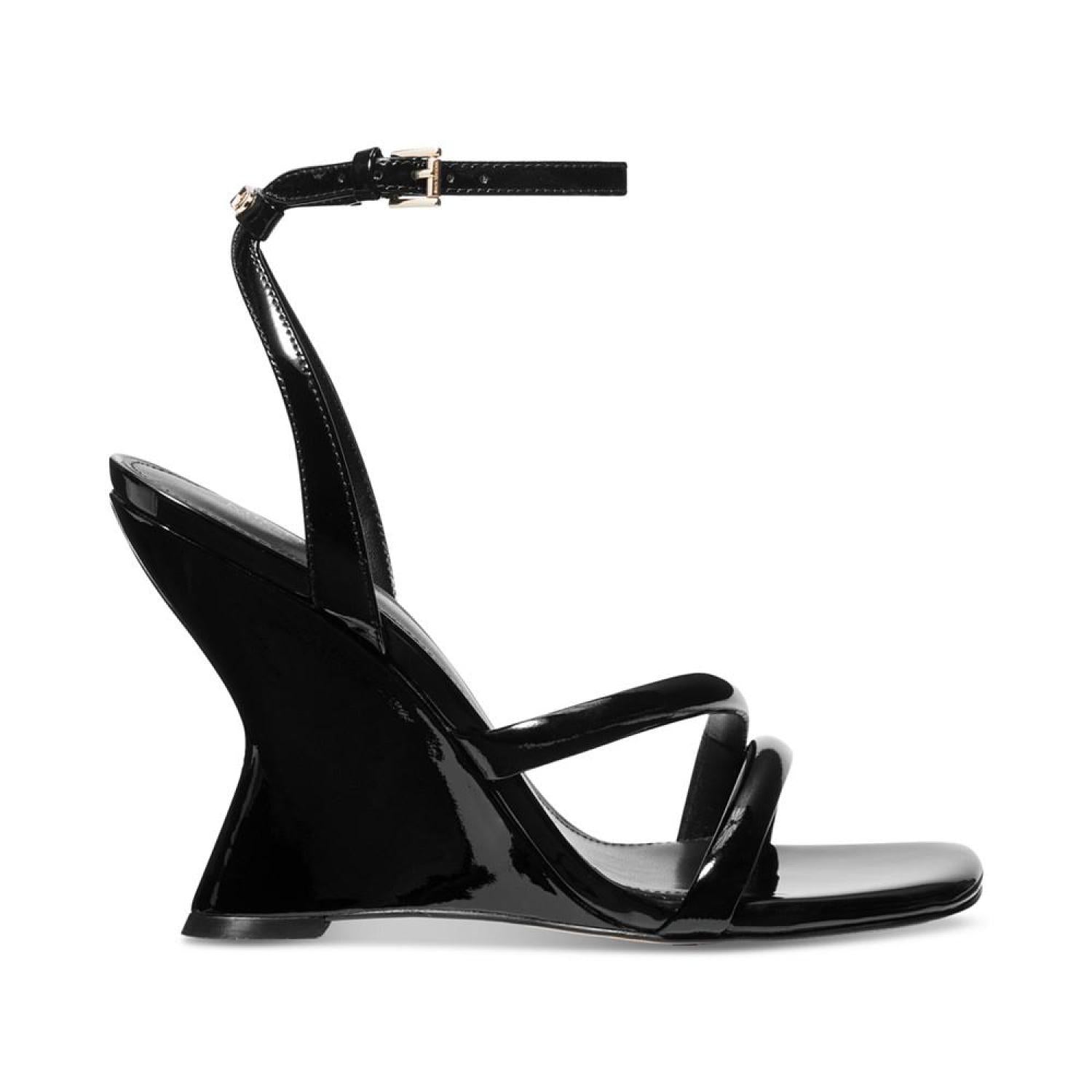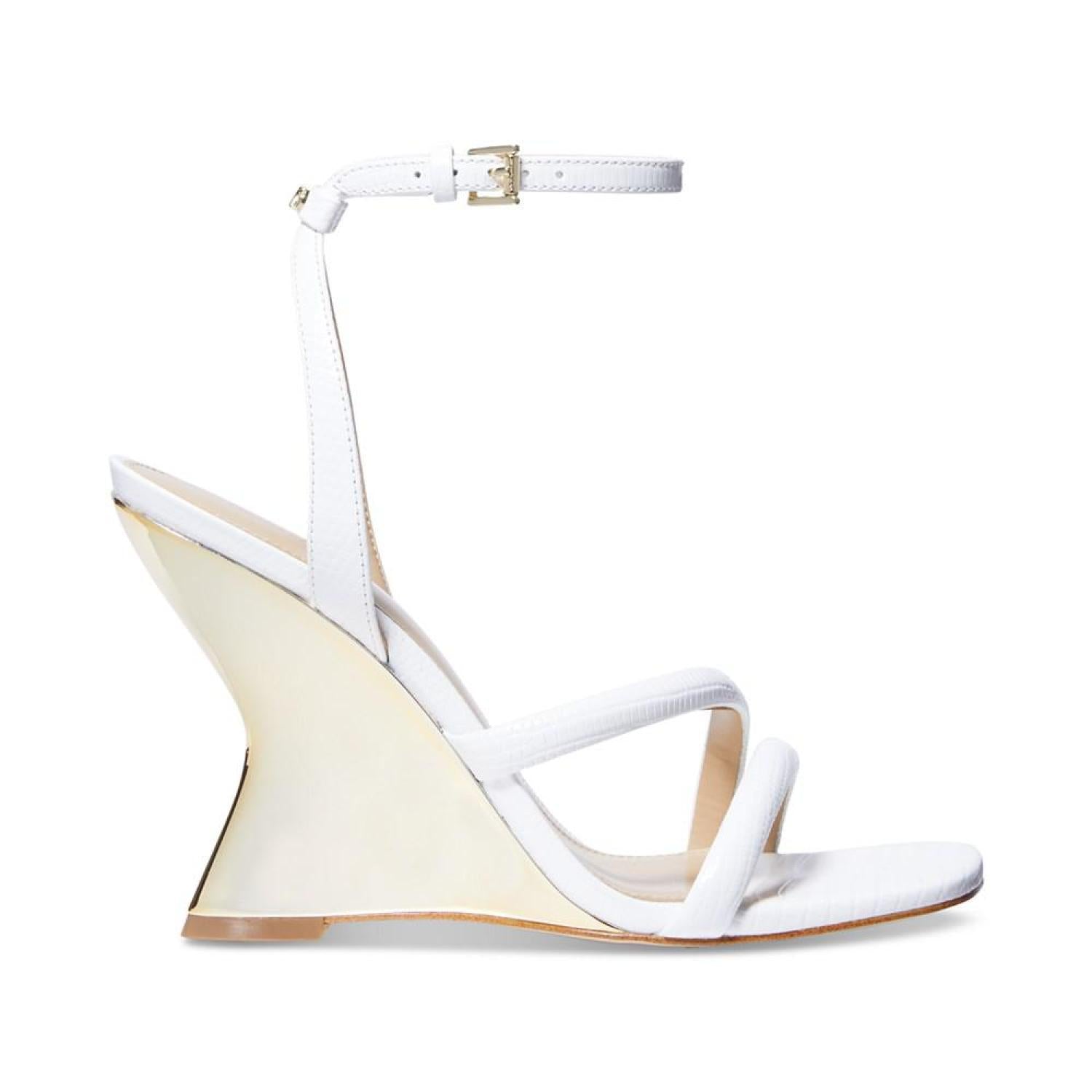 Polished straps and galvanized wedges elevate a gorgeous silhouette in the Nadina sandals by MICHAEL Michael Kors. 4" galvanized wedge heel Round toe Buckled ankle strap Leather upper; manmade lining; manmade sole Imported