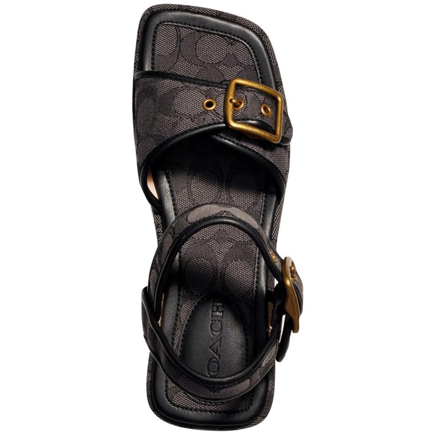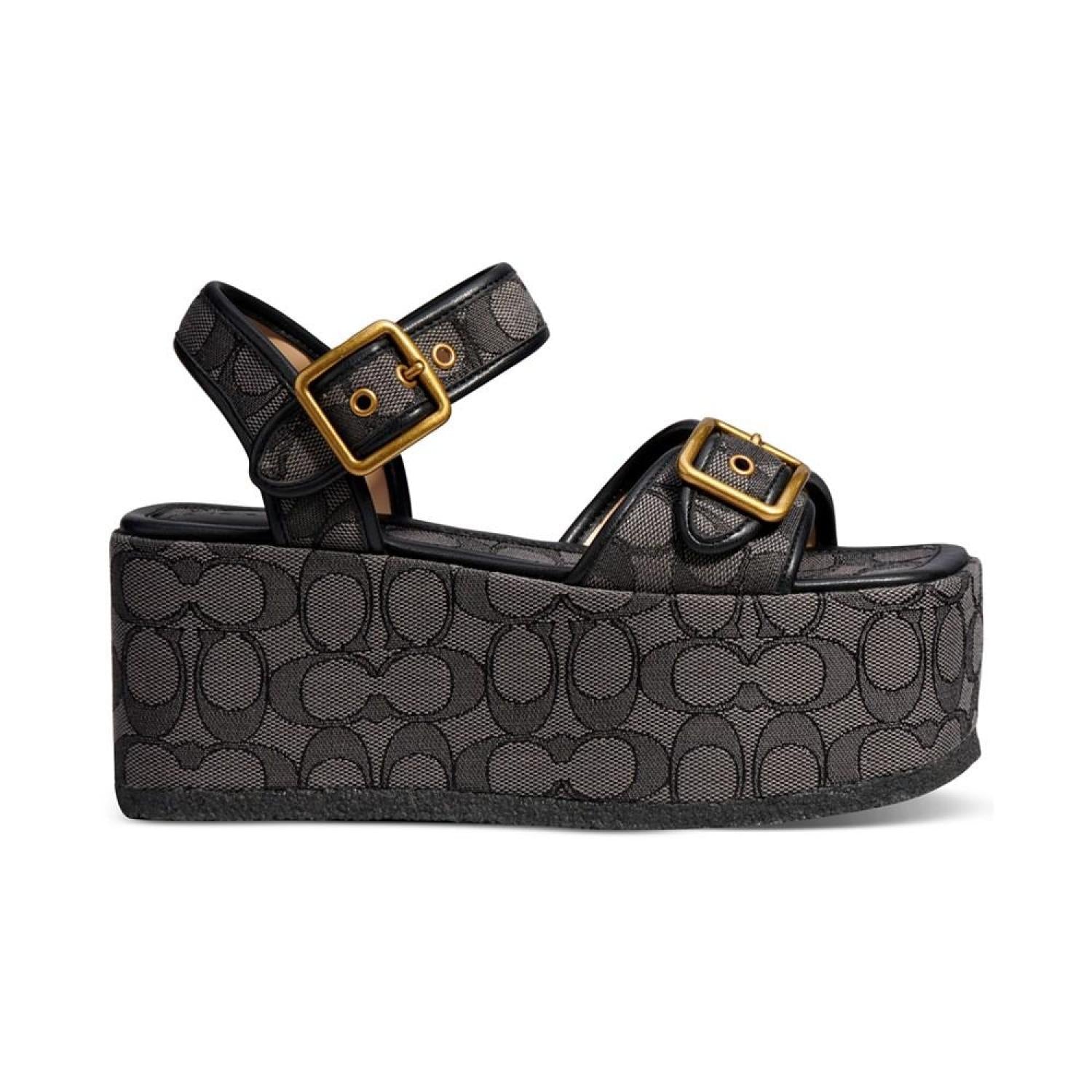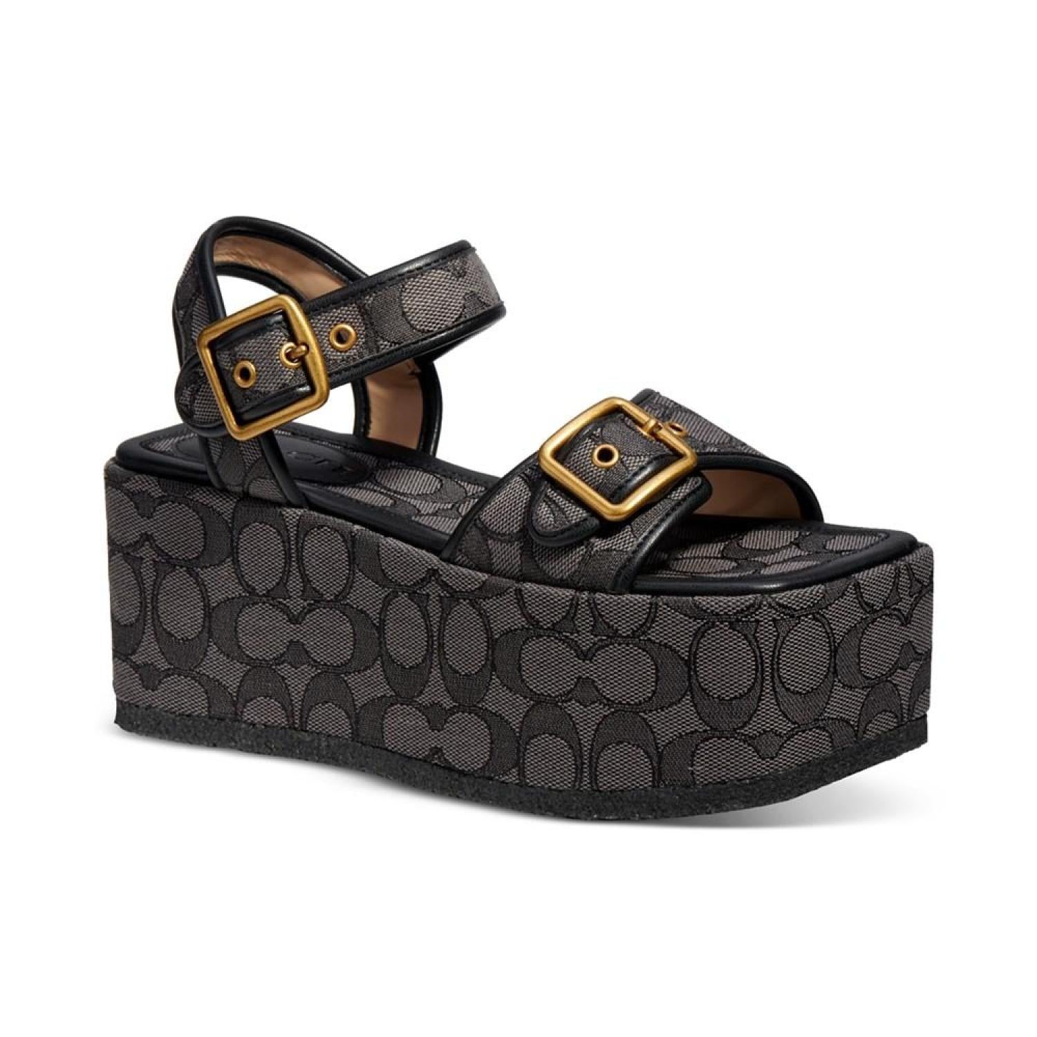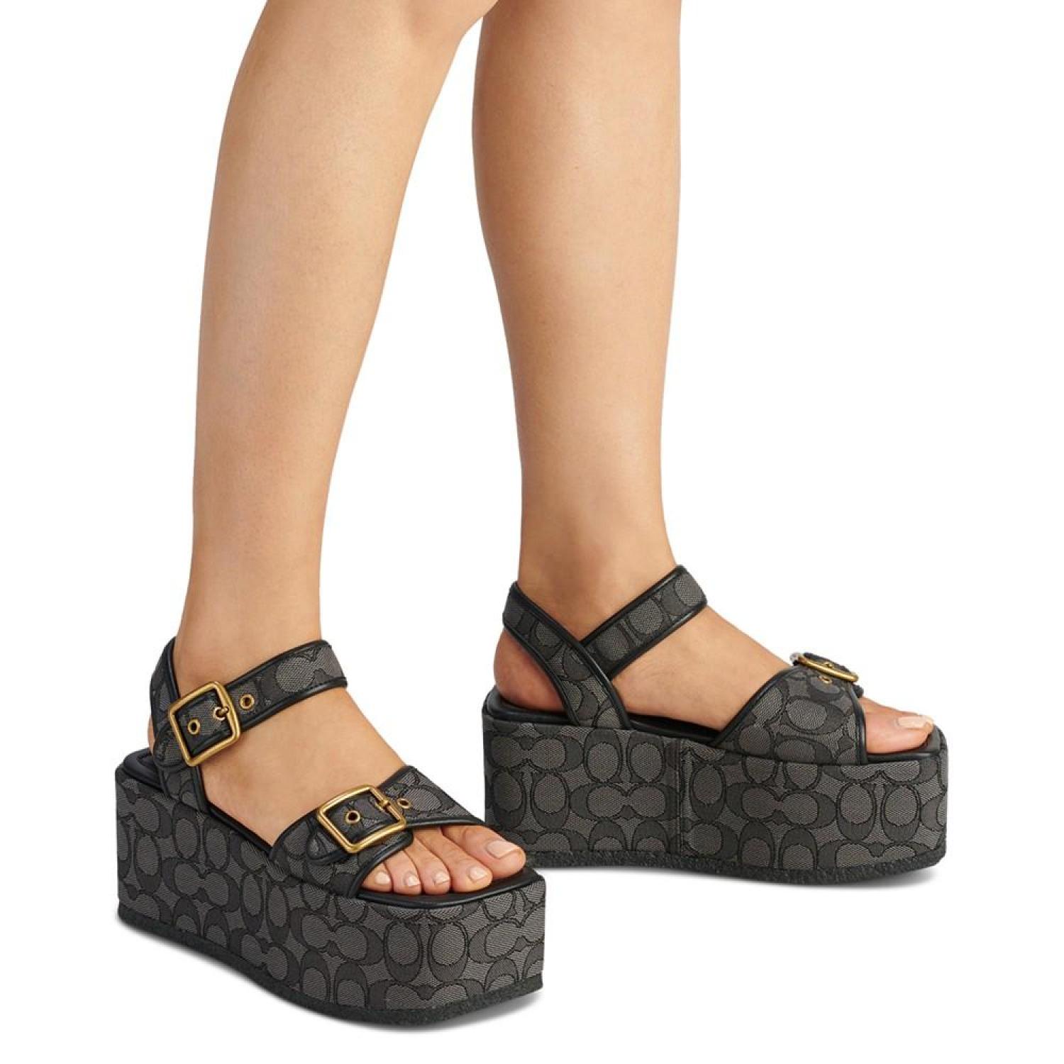 • Buckled straps and signature style top off the sky-high platform of COACH's Naomi sandals for a fun lift.