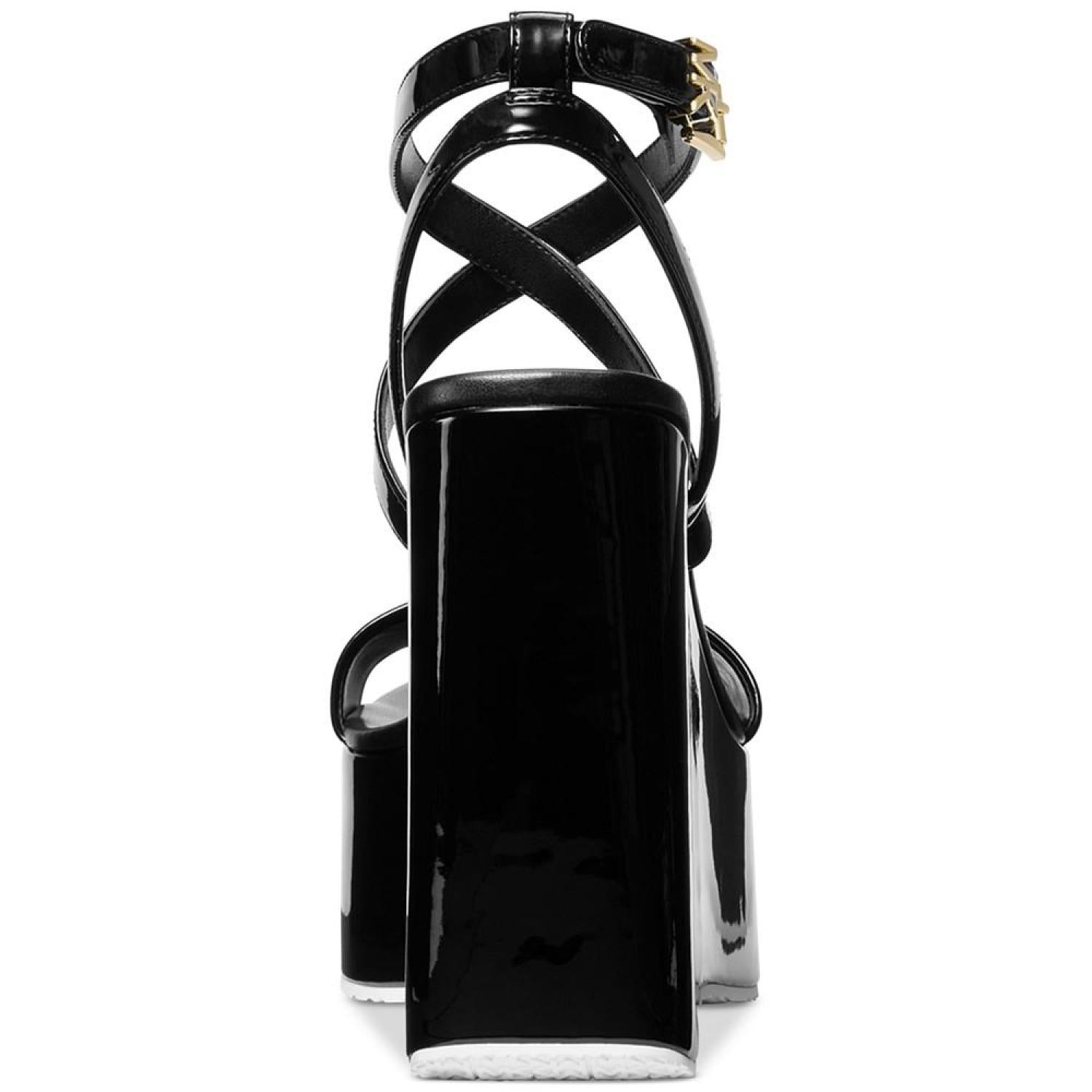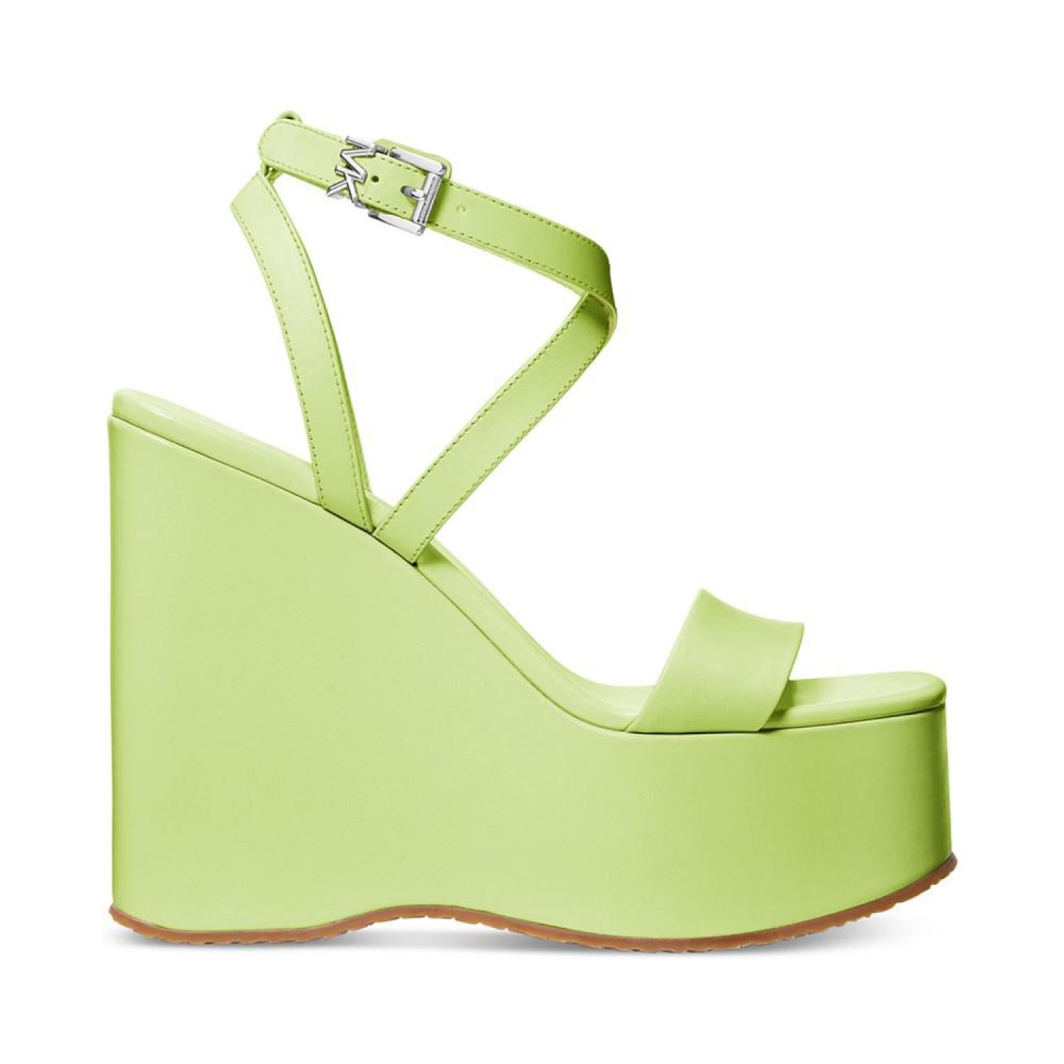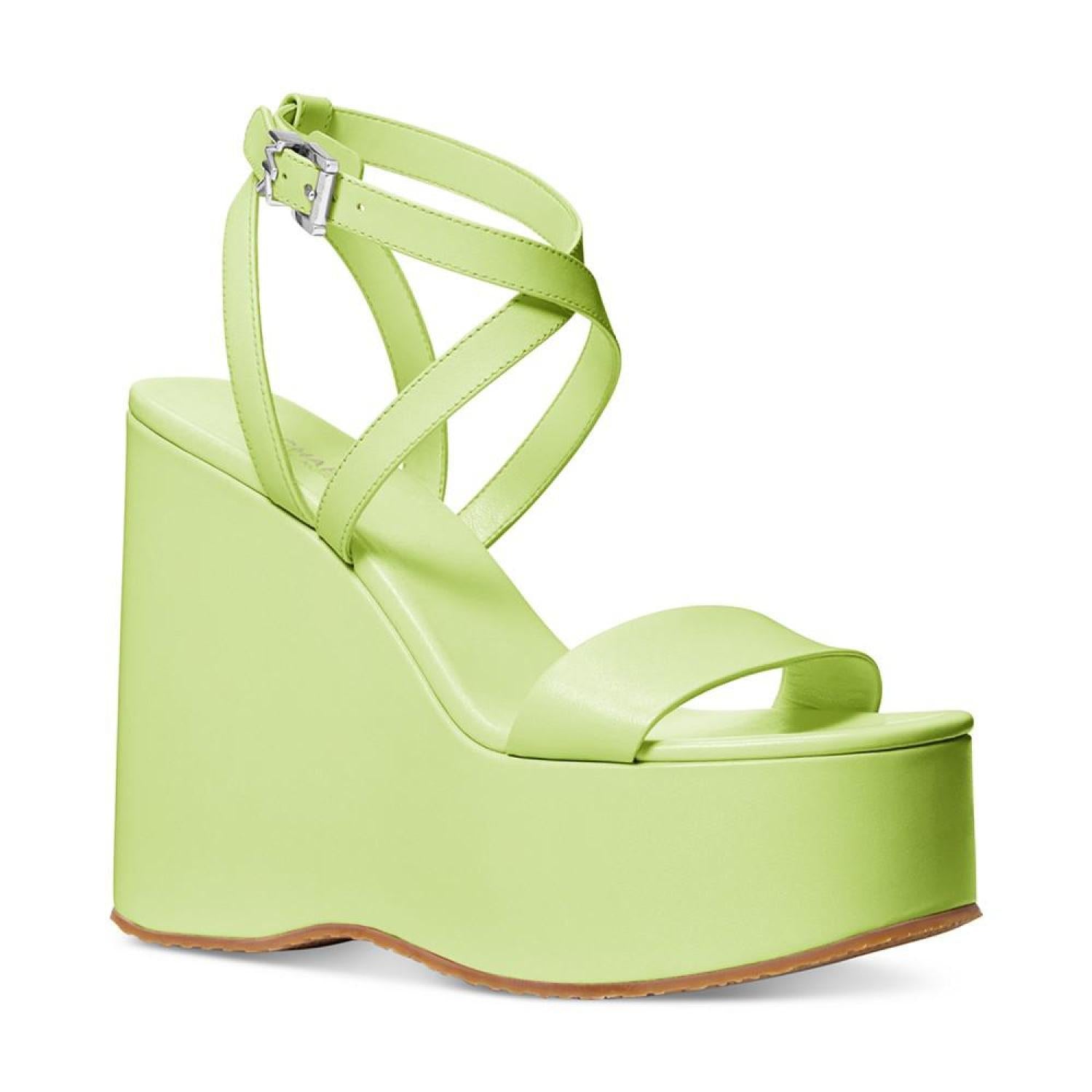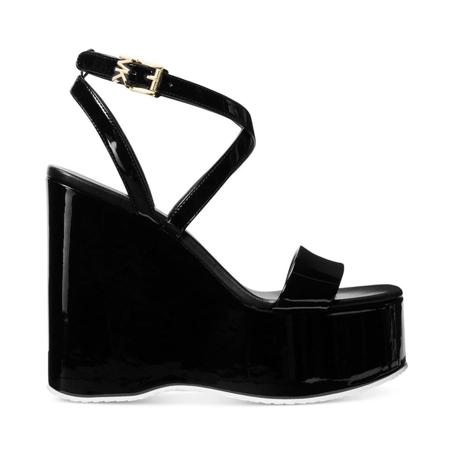 Crisscross ankle straps add elegant lines to bold wedges in the towering Paola sandals by MICHAEL Michael Kors. 5" wedge heel; 2" platform Round-toe crisscross ankle-strap platform wedge sandals with adjustable buckle closure Manmade or leather uppers; manmade lining; rubber sole Imported
