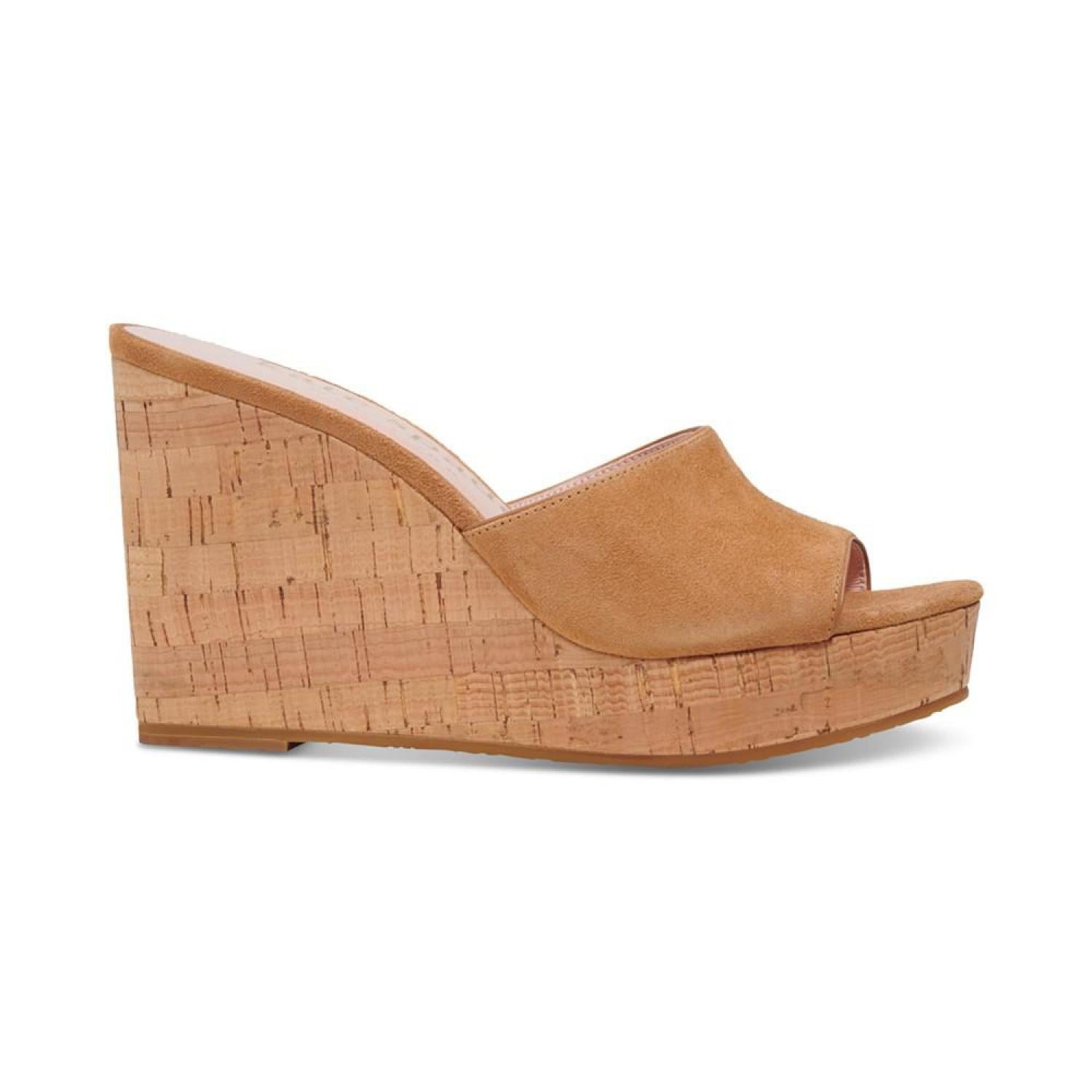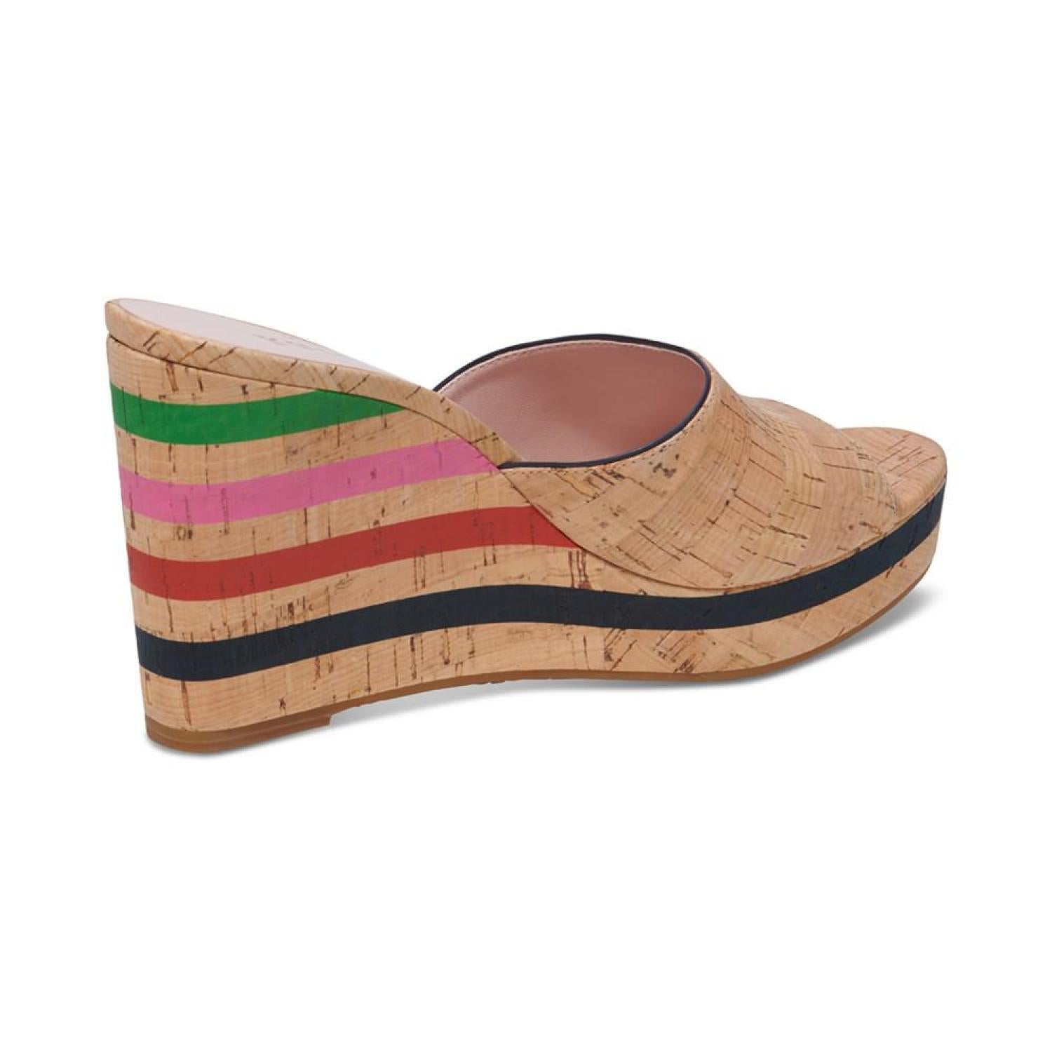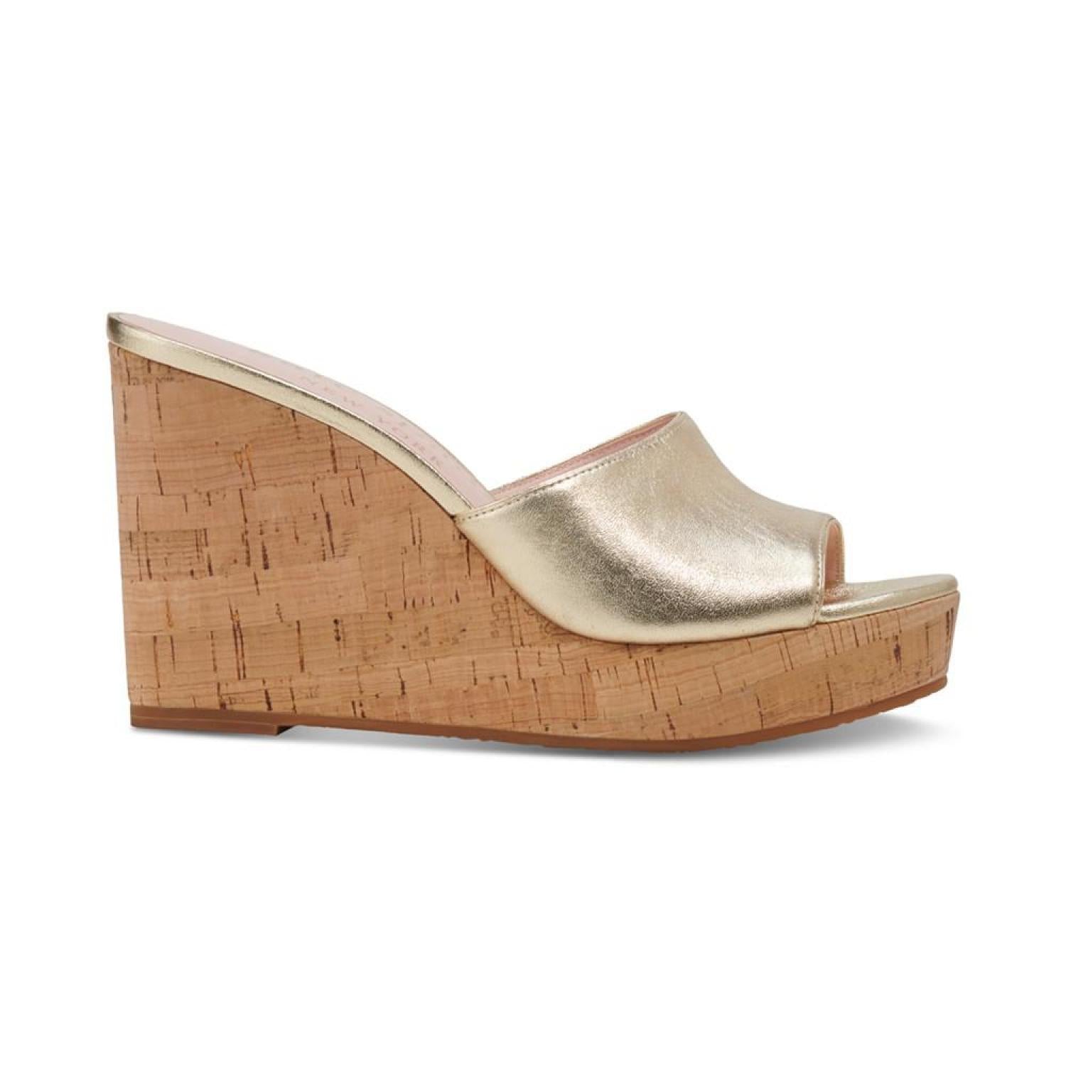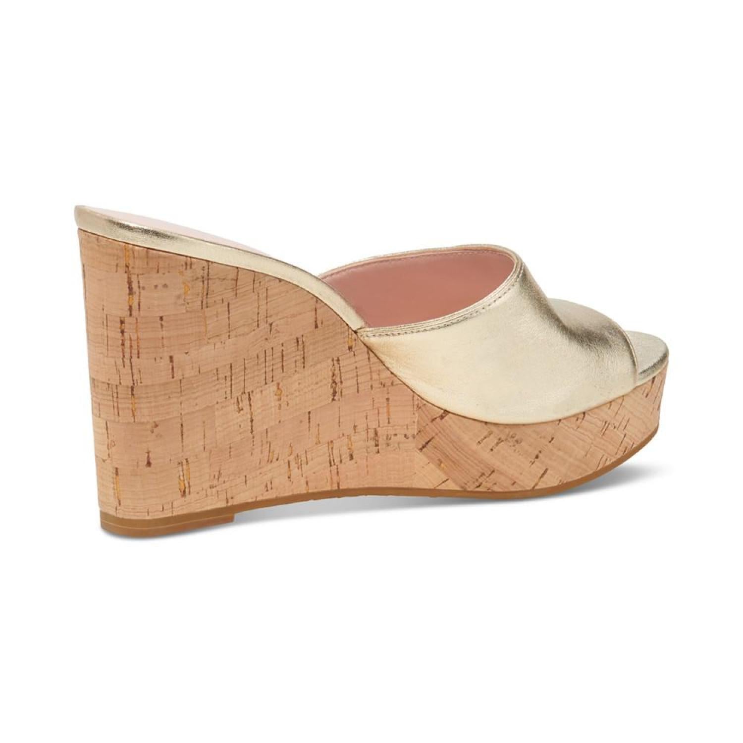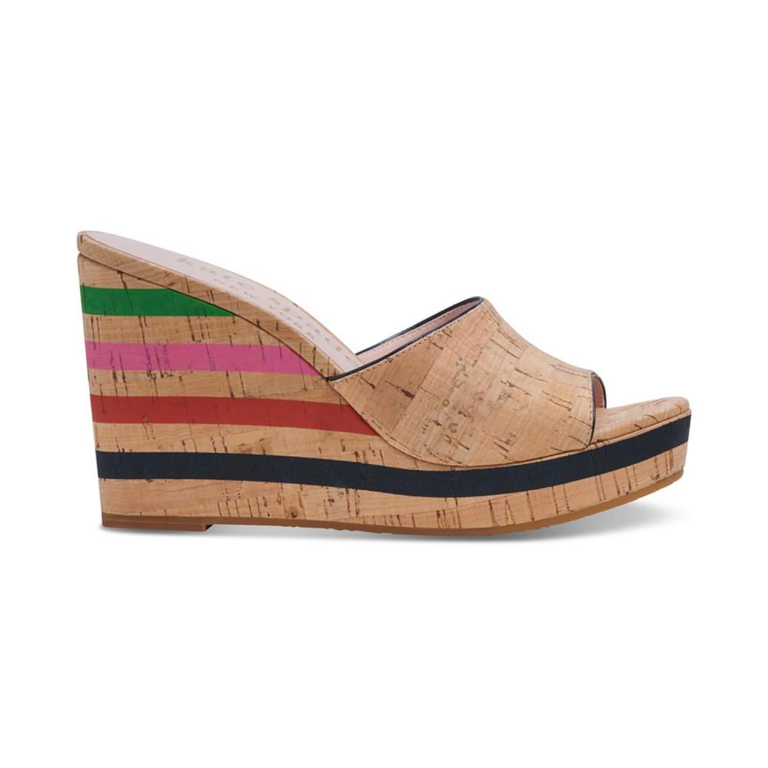 A single wide straps tops comfortable cork-like wedges in the stylish Penelope platform sandals from Kate Spade New York. 3-3/4" wedge heel; 1" platform Round-toe slip-on platform wedge sandals Leather or cork, leather uppers; leather lining; rubber sole Imported