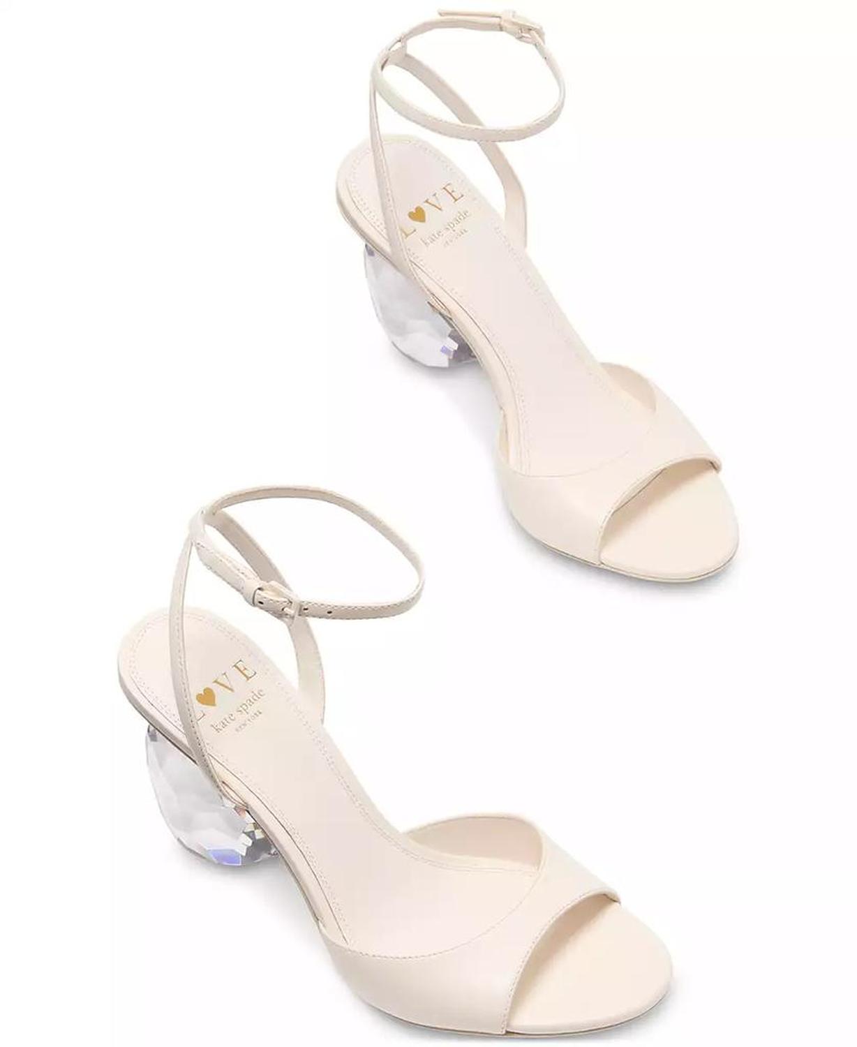 Kate Spade New York's Perfect Pair sandals take a dressy lift to the next level on multi-faceted gem-like heels elevating slender straps. Sculpted heel: 3-1/3" Round toe Buckled ankle strap Upper: leather; lining: leather; sole: leather Imported