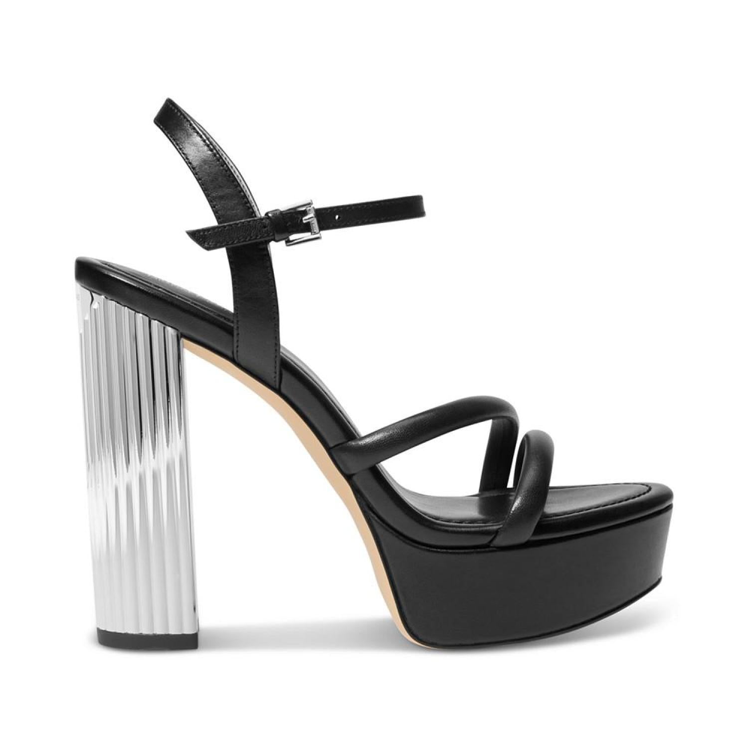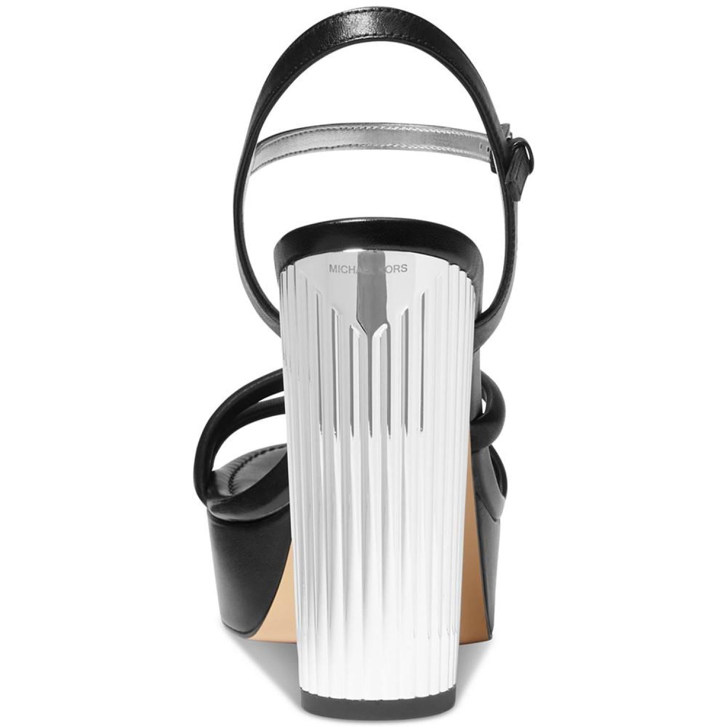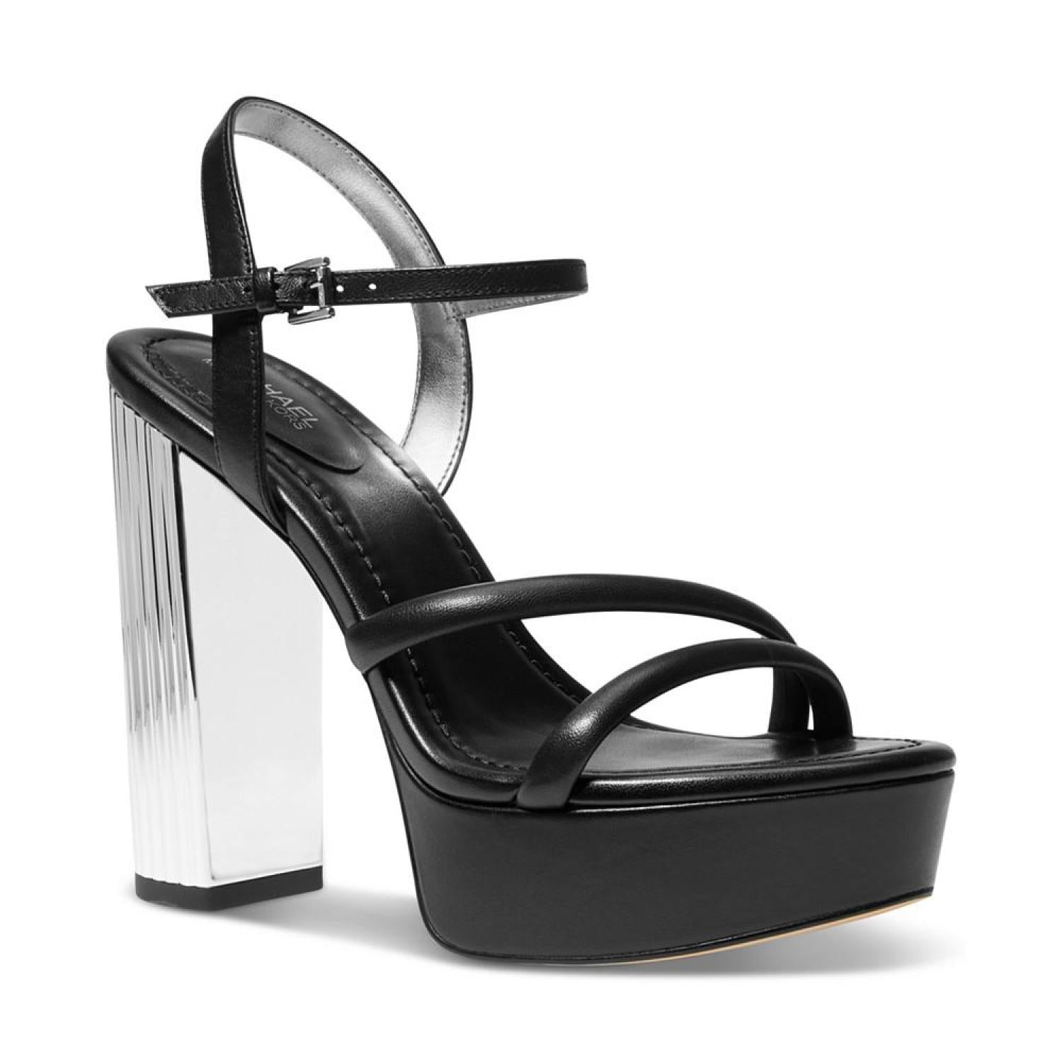 Strappy goes through the roof on retro-inspired platforms in the gorgeous Porter sandals from MICHAEL Michael Kors. 4-1/2" wrapped heel; 1-1/4" platform Round open toe Buckled ankle strap Leather upper; manmade lining; rubber sole Imported