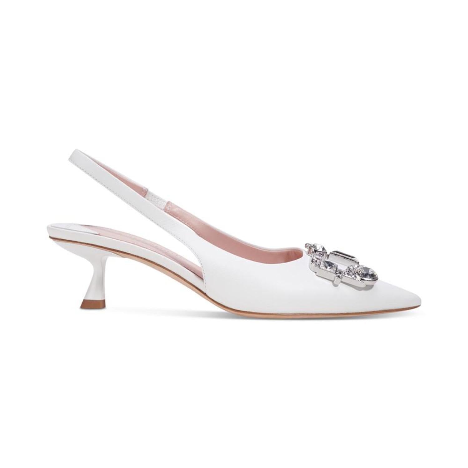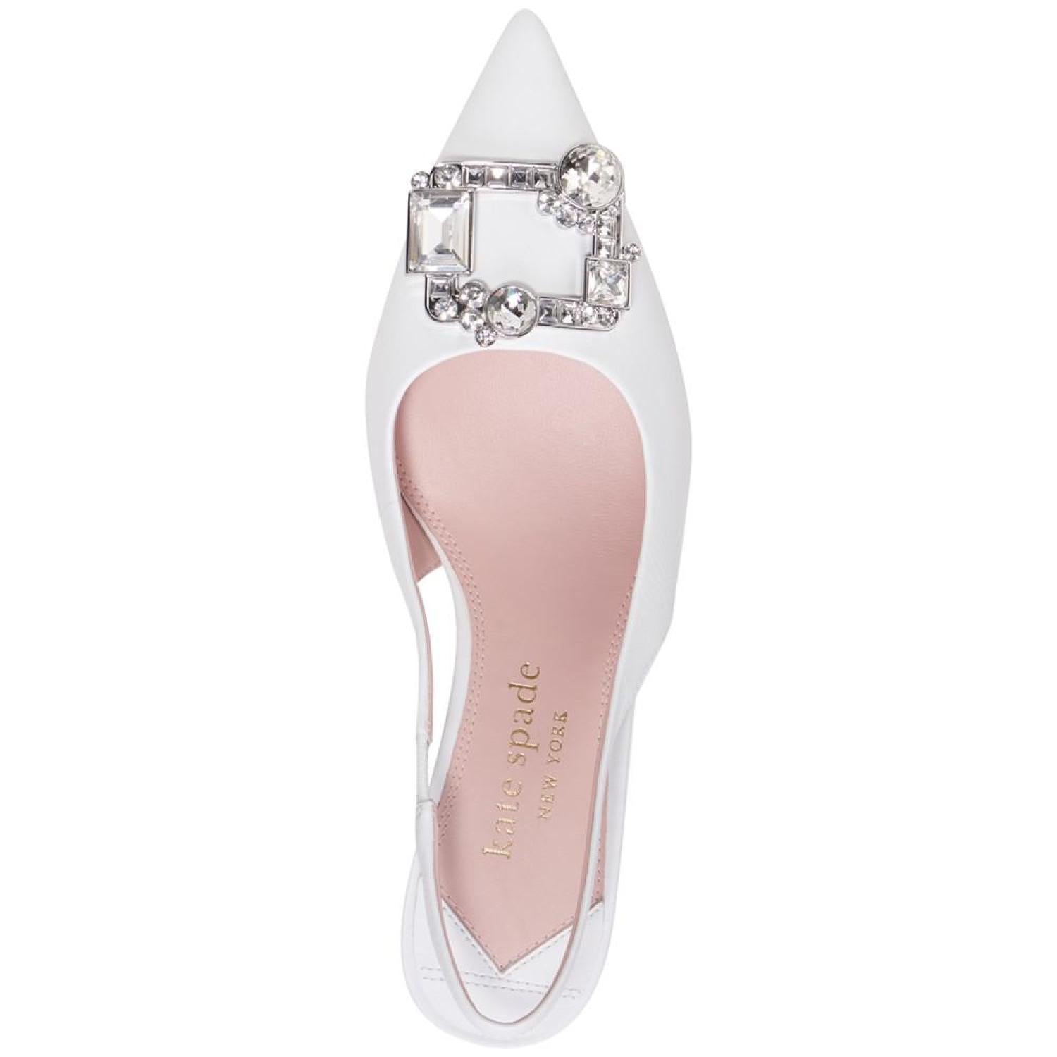 • Elegant sparkle completes oversized buckle accents on pointed toes in the pretty Renata pumps from Kate Spade New York.
