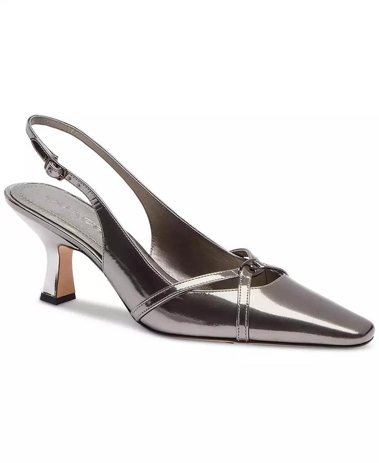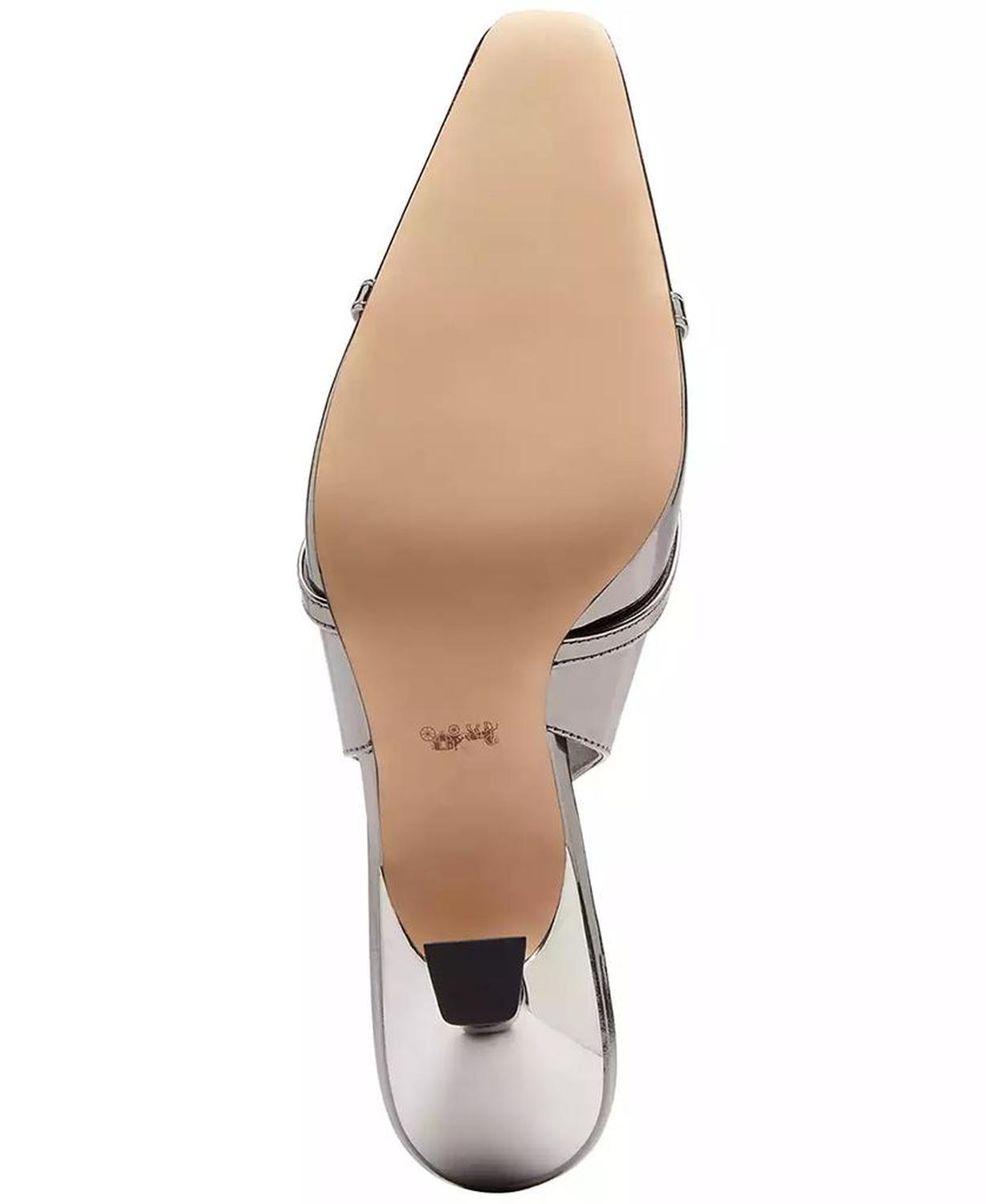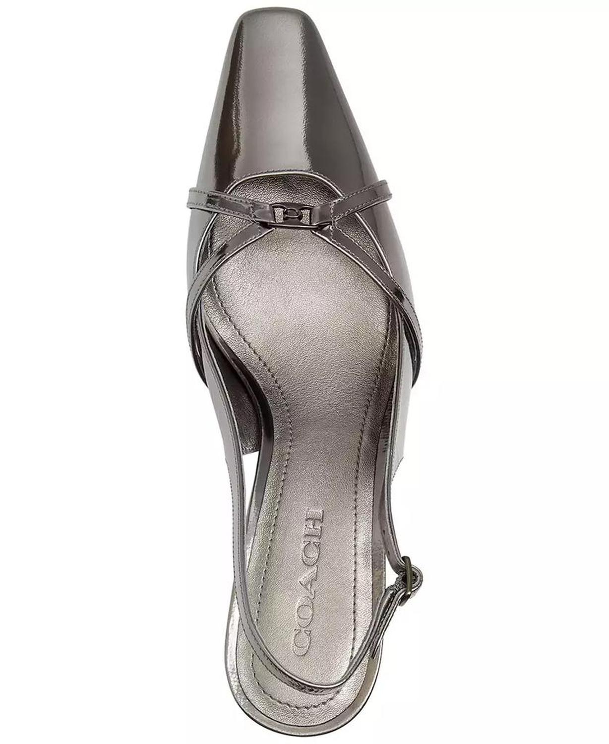 • Hardware secures sophisticated detailing in supple leather with pointed toes and elegant slingbacks completing kitten heels in the COACH Rowyn pumps.