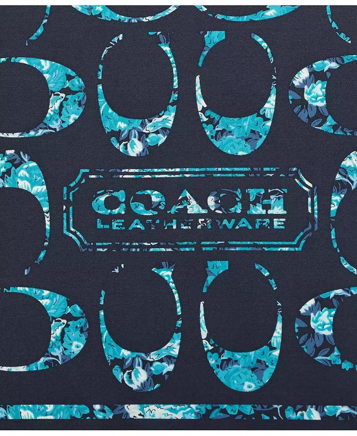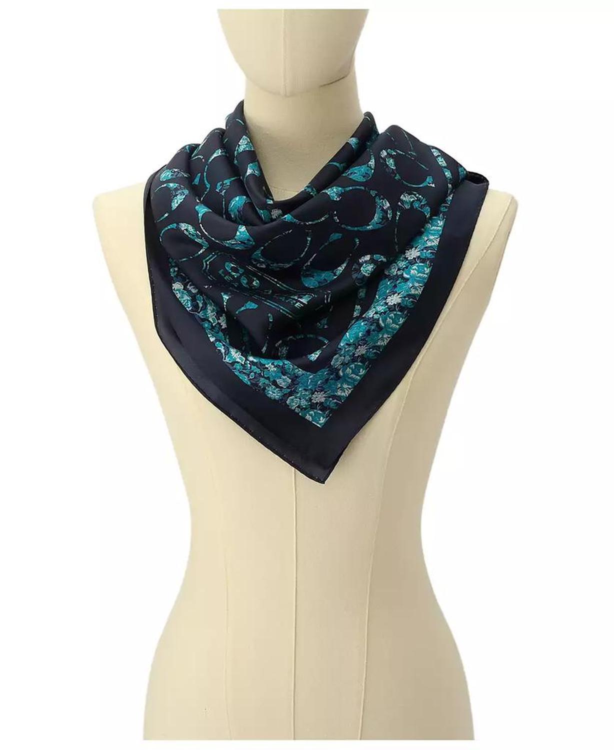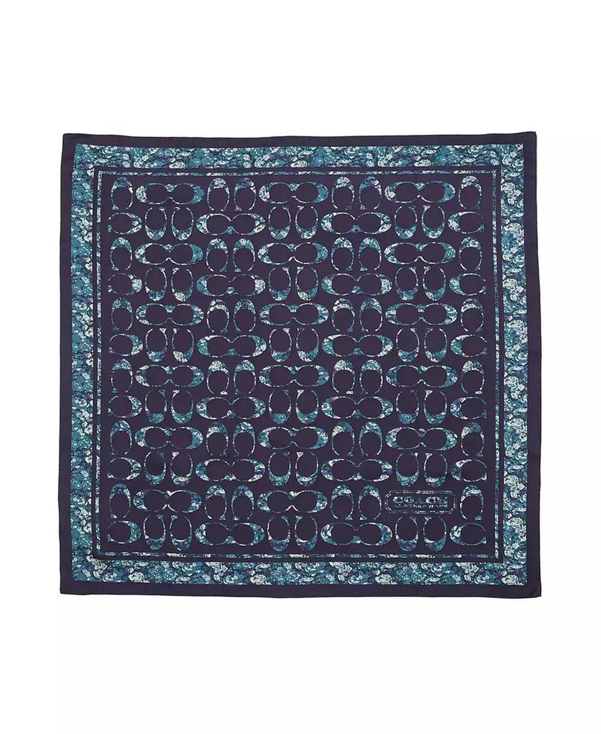 The Coach Signature mixes with a lush meadow floral print on this lightweight silk square scarf. Finished with a Coach Badge, wear it around your neck to add a colorful touch to any look. Approx. Dimensions: 35"W X 35"L Signature COACH logo Smooth silk Finished hem This item purchased online must be returned to the vendor by mail only. This item cannot be returned to Macy's stores. 100% Silk Hand wash Imported