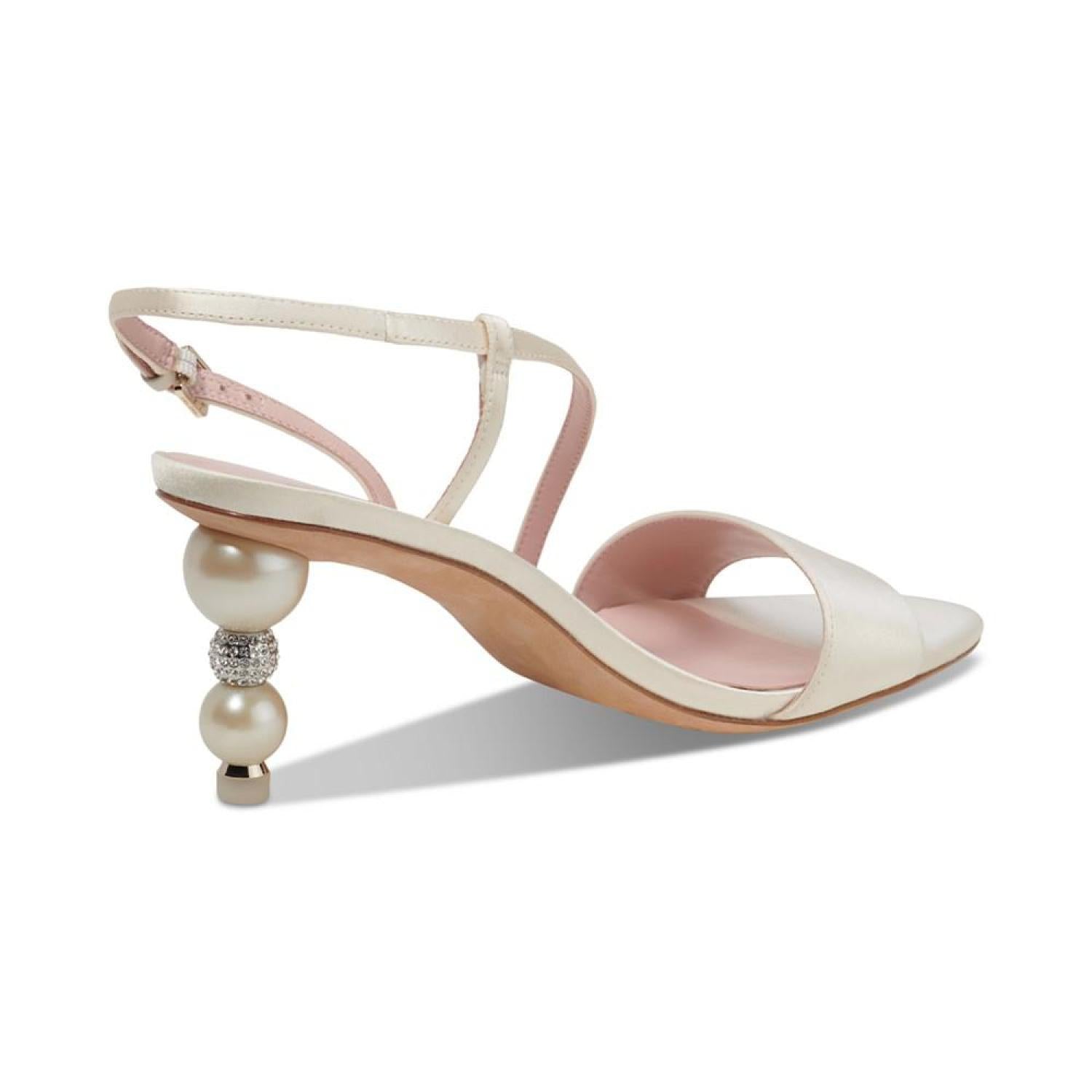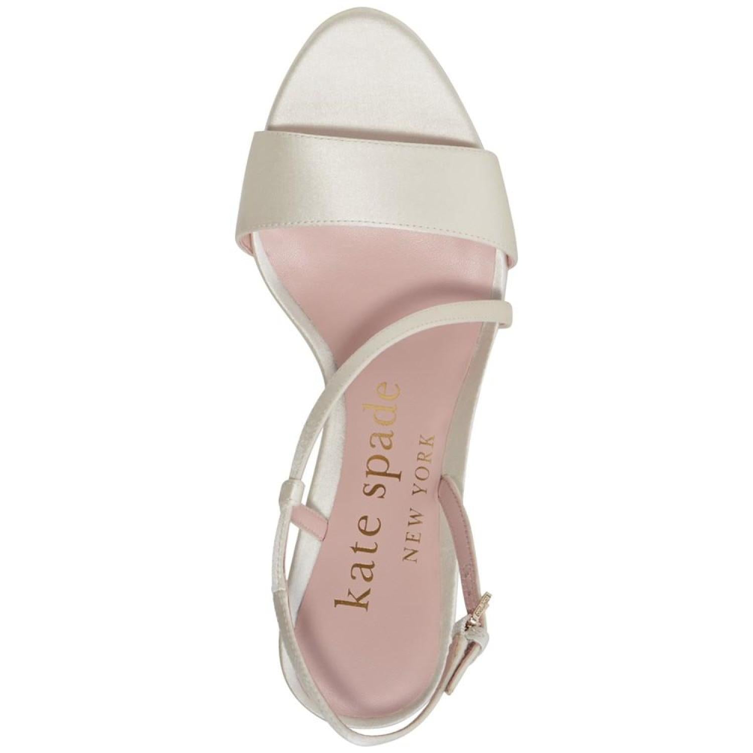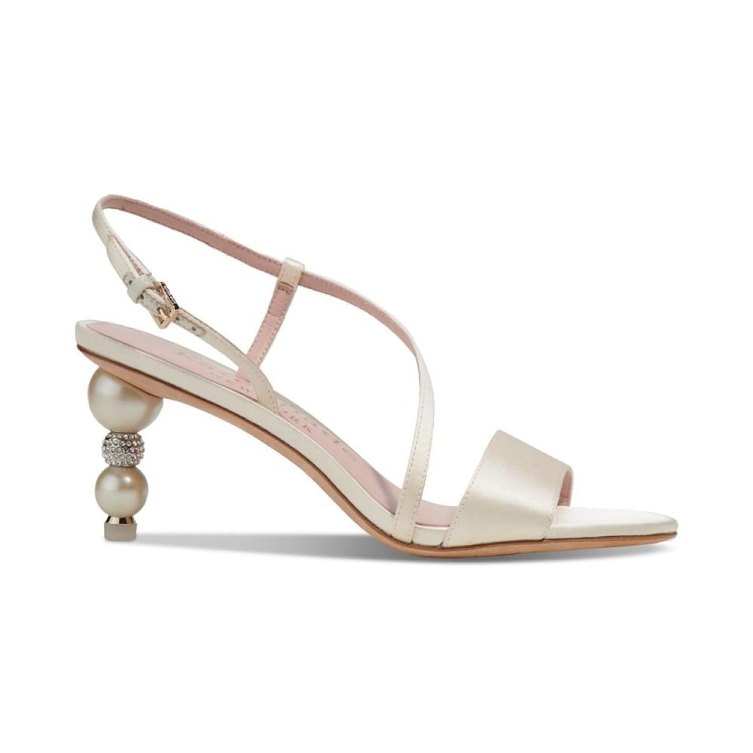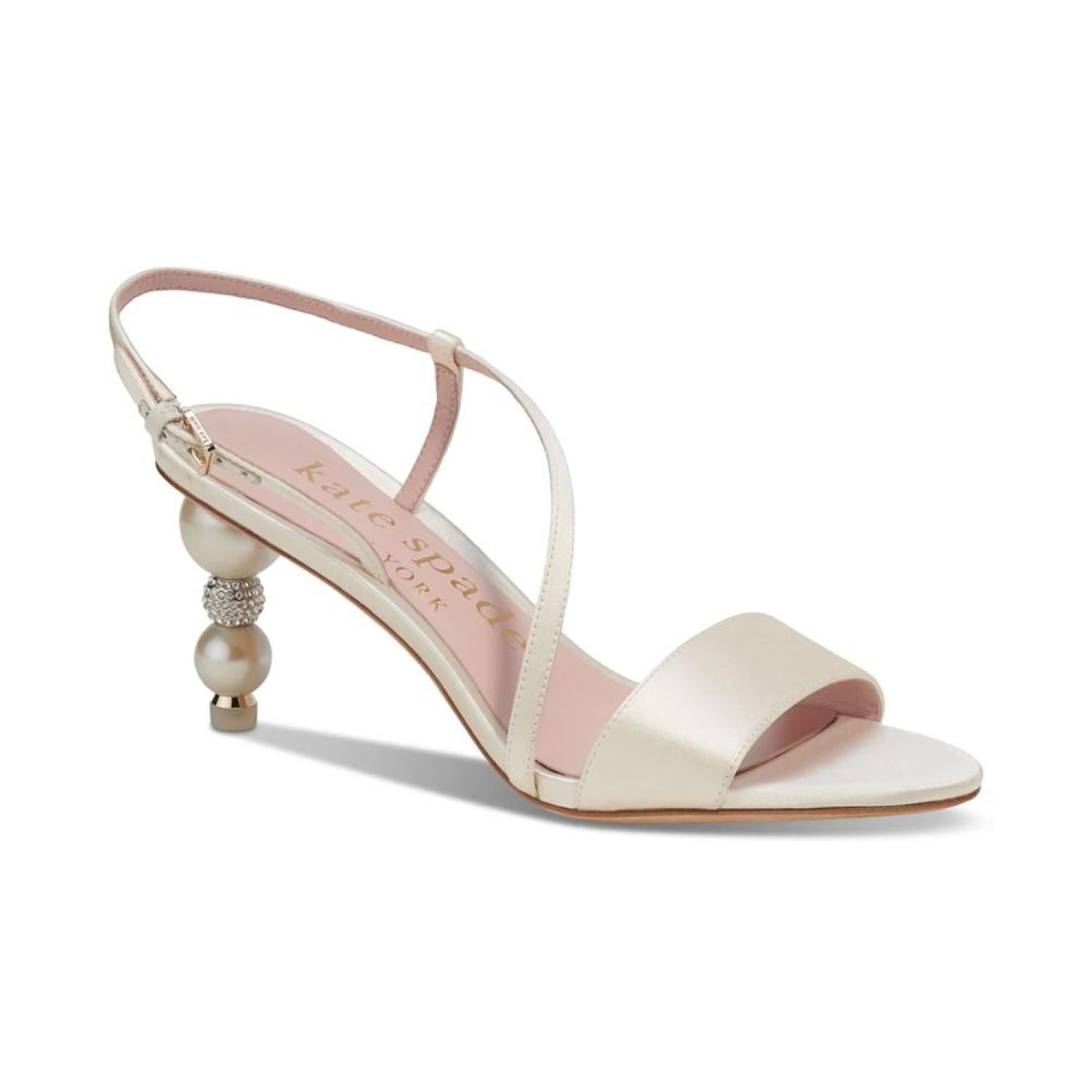 Perched on striking heels, the Sparkle and Shine dress sandals from Kate Spade New York pair asymmetrical lines and slender straps with sophisticated style. 2-3/4" sculpted heel Almond-toe slip-on slingback sandals Satin, leather upper; leather lining; leather sole Imported