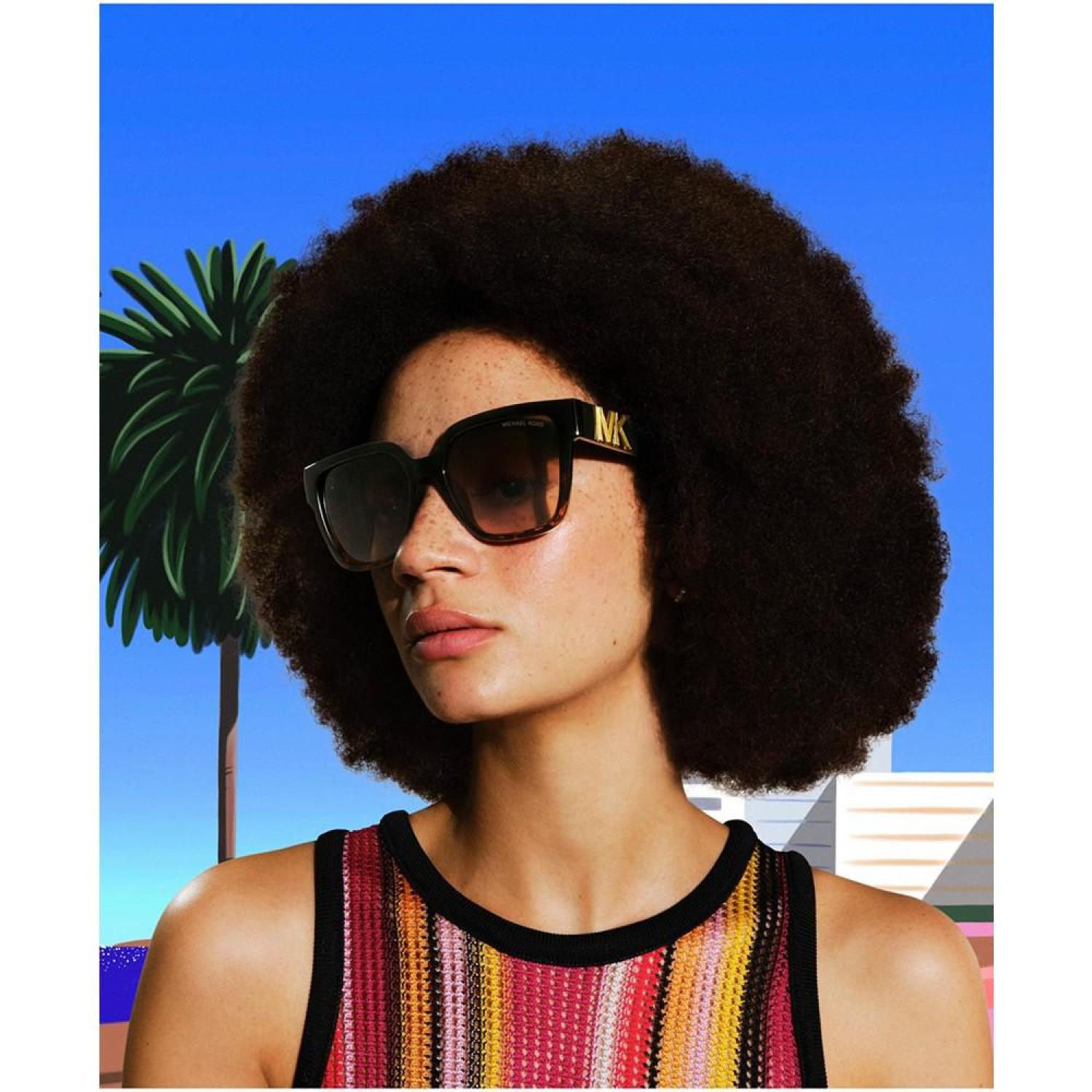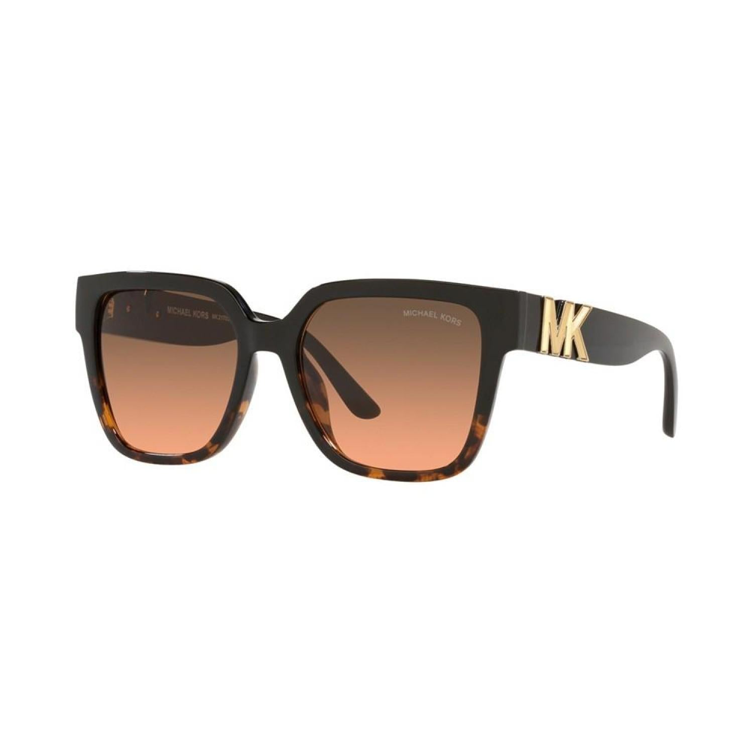 With an exclusive preview at Sunglass Hut, this universal fitting square shape in custom plastic materials ties back to MK color palette. Galvanic metal colors for the logo paired with gradient lenses. Plastic temple with bold metal MK hardware detail. Frame shape- Square Frame material- Injected Frame type- Full rim Gender- Female Eye/Bridge/Temple width- 54/17/140 Lens features- Gradient Best for face shape- Oval, round Low bridge fit- No Faceted dimensional MK with a smooth border Injected Wipe Clean Imported