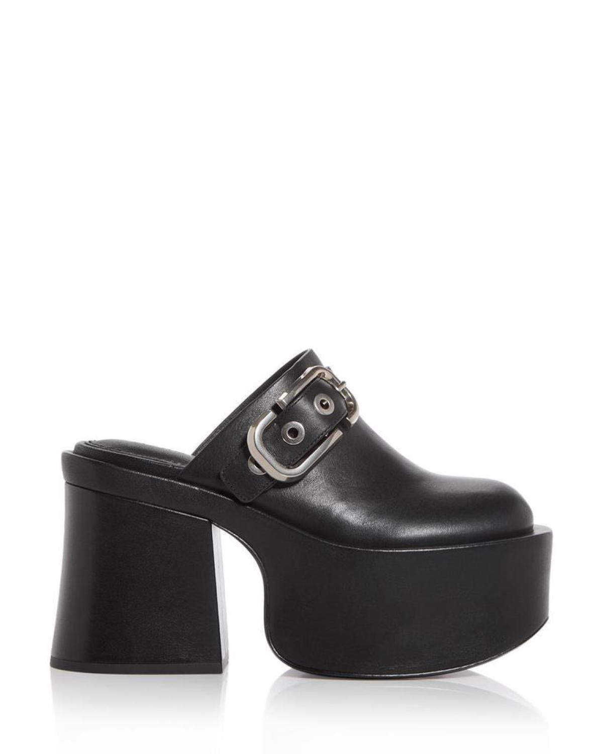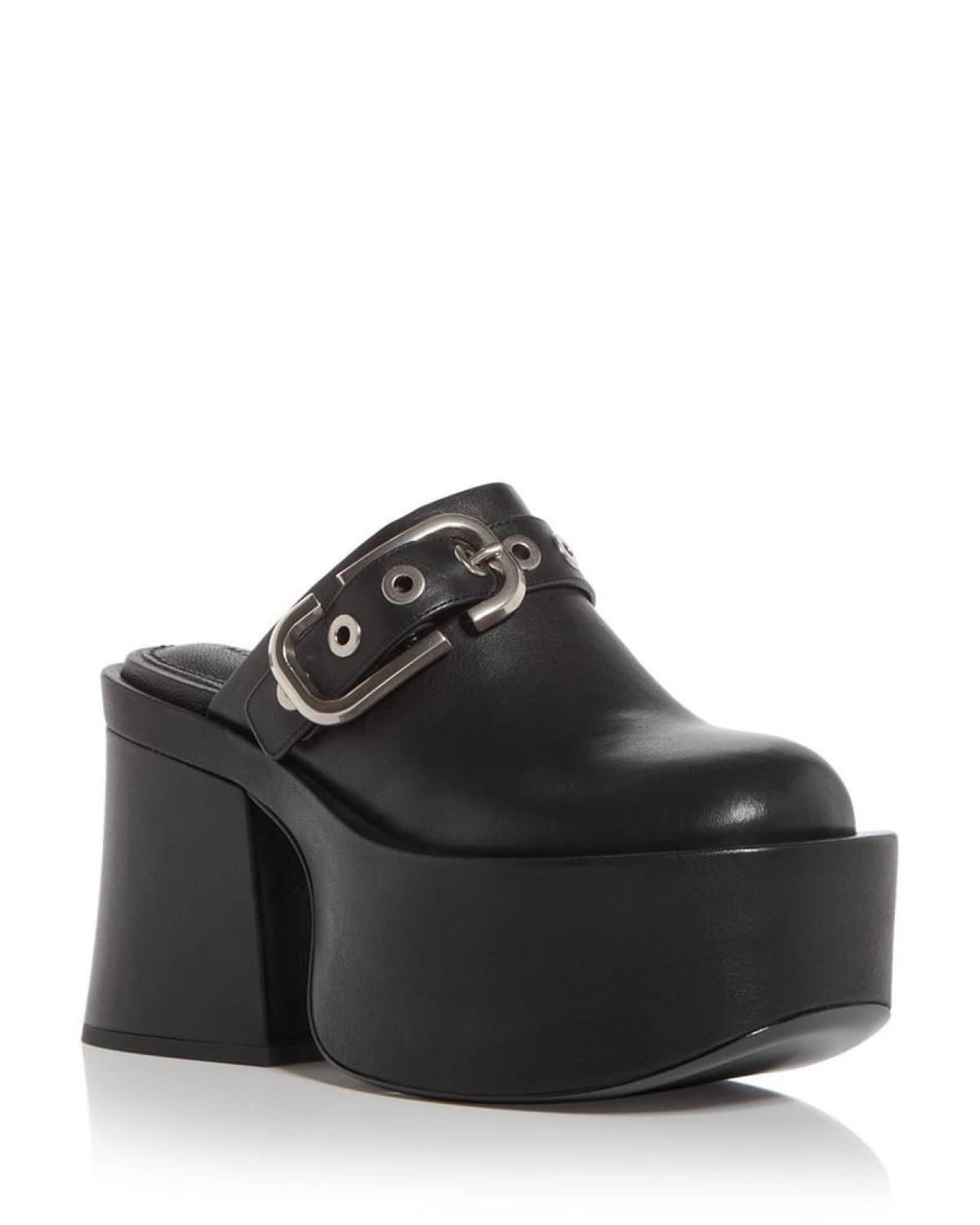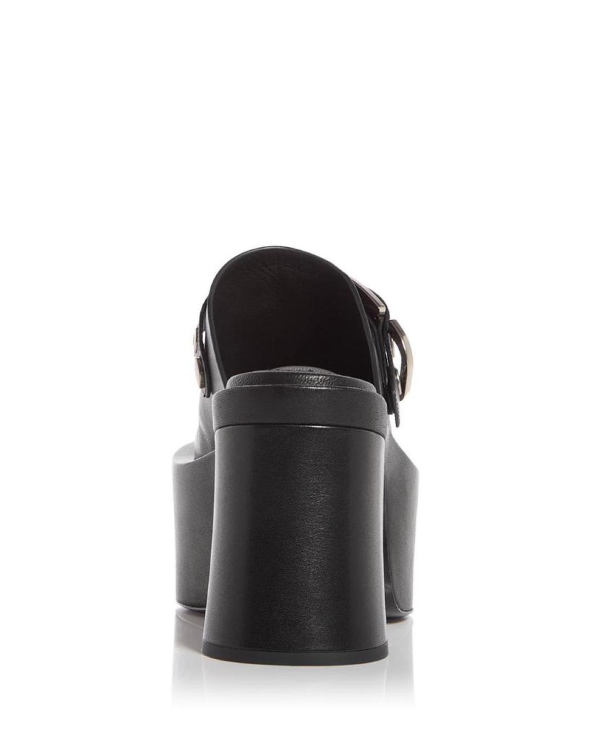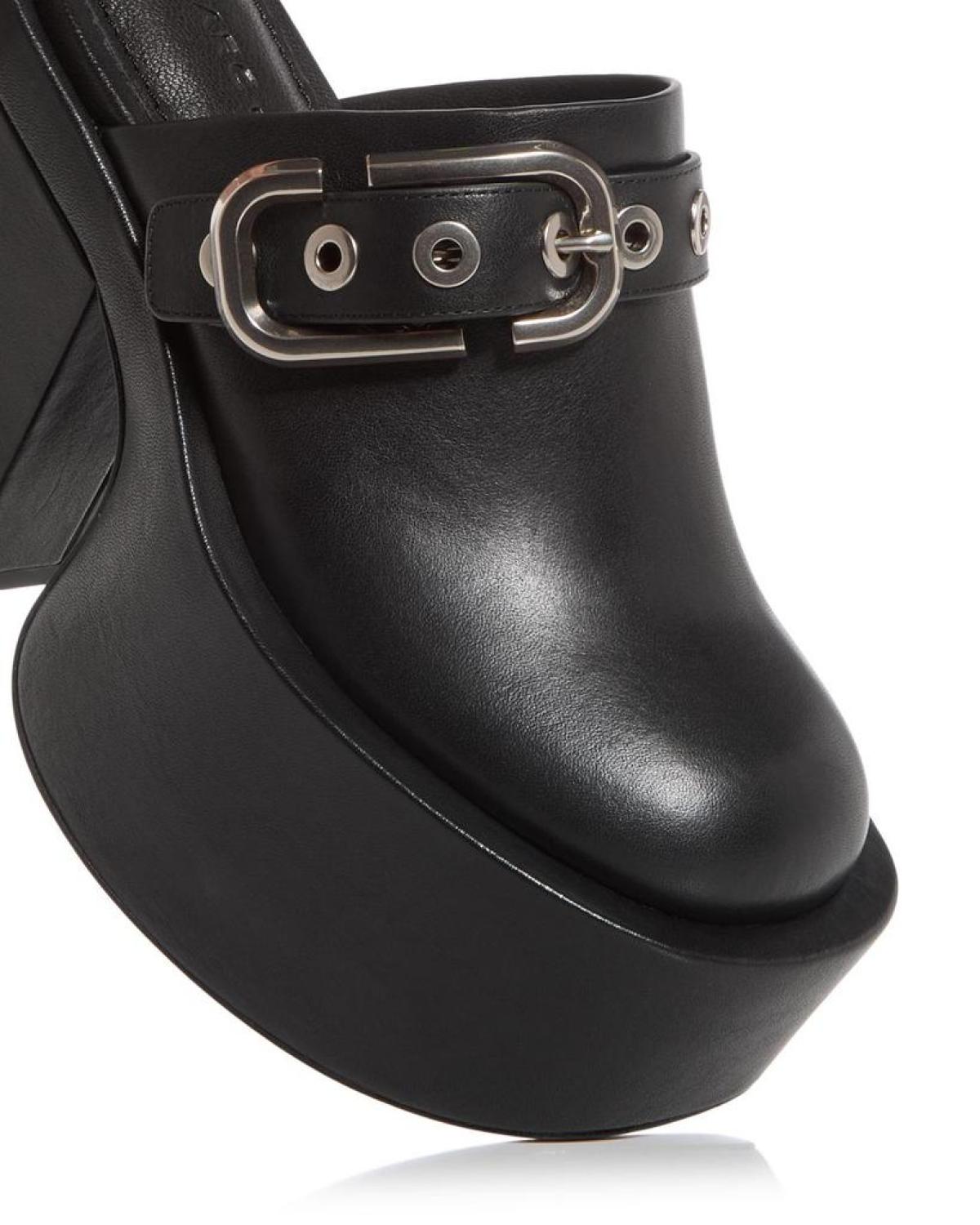 Fits true to size, order your normal size Round toe Slip on Logo buckle and strap detail at instep 4.5" wrapped block heel, 2.5" platform , feels like 2.25" heel Leather upper, lining and sole Imported Web ID: 4835592