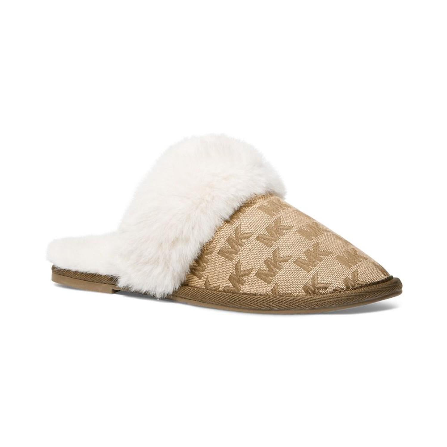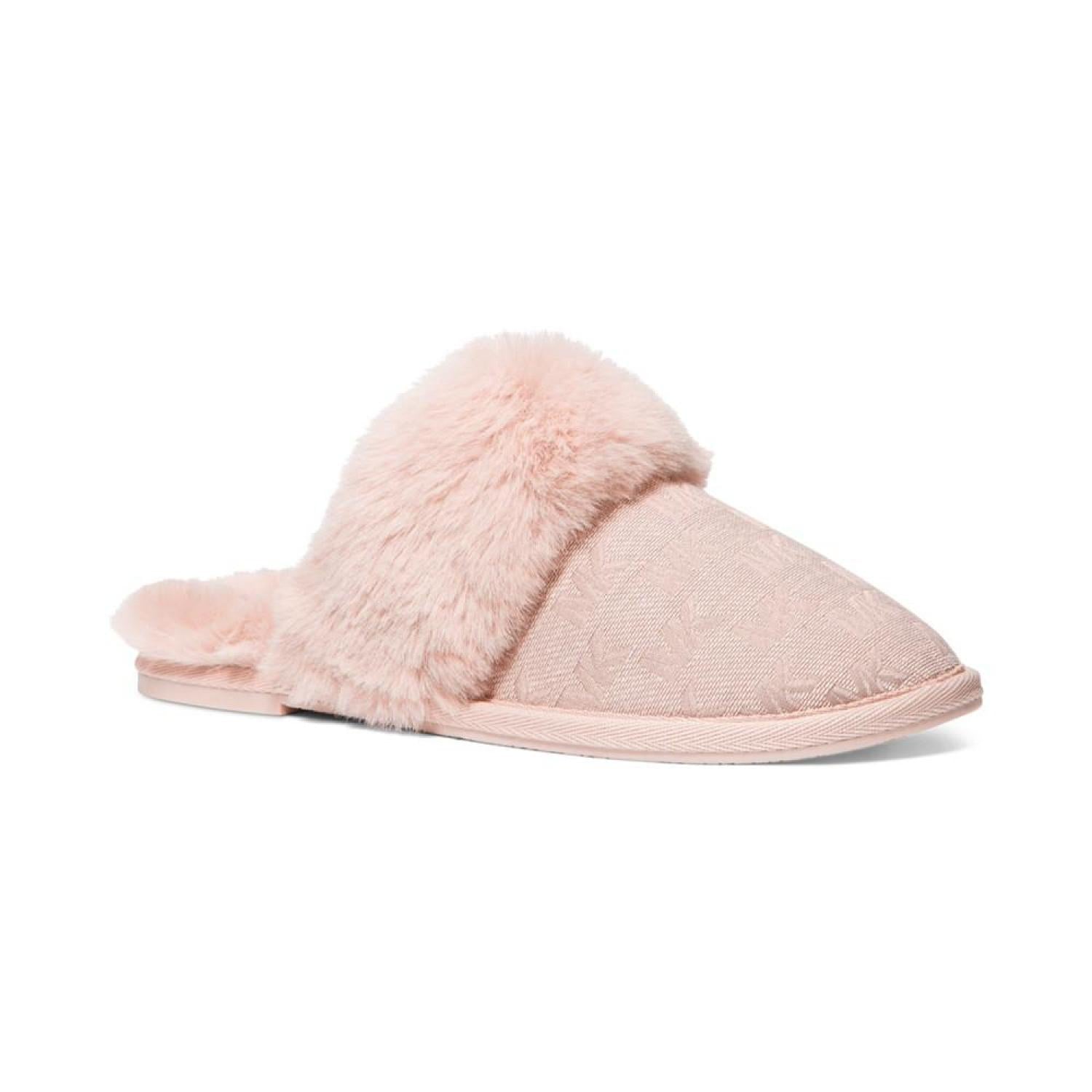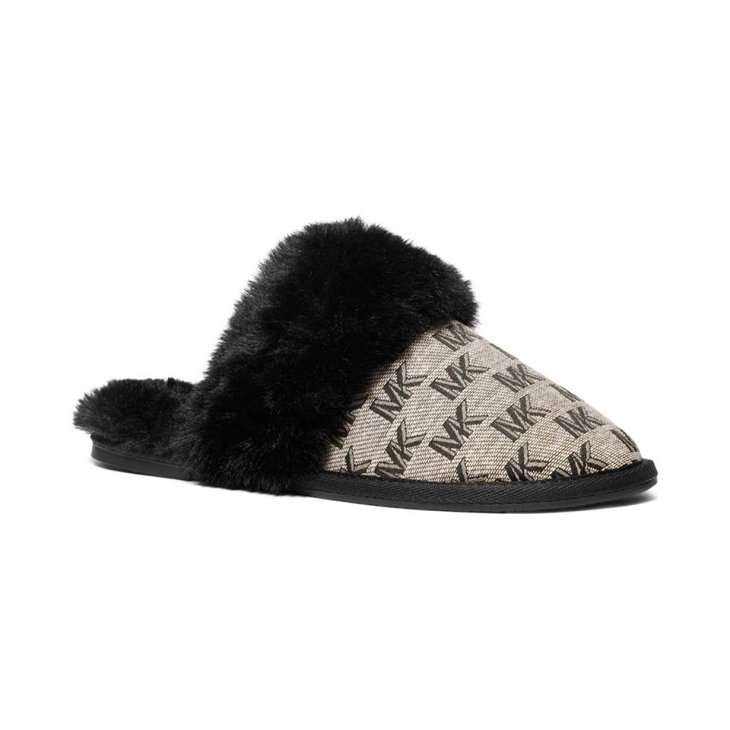 Plush faux-fur cuffs pair wiith signature style in the MICHAEL Michael Kors Tula scuff slippers for a look to love with cozy appeal.