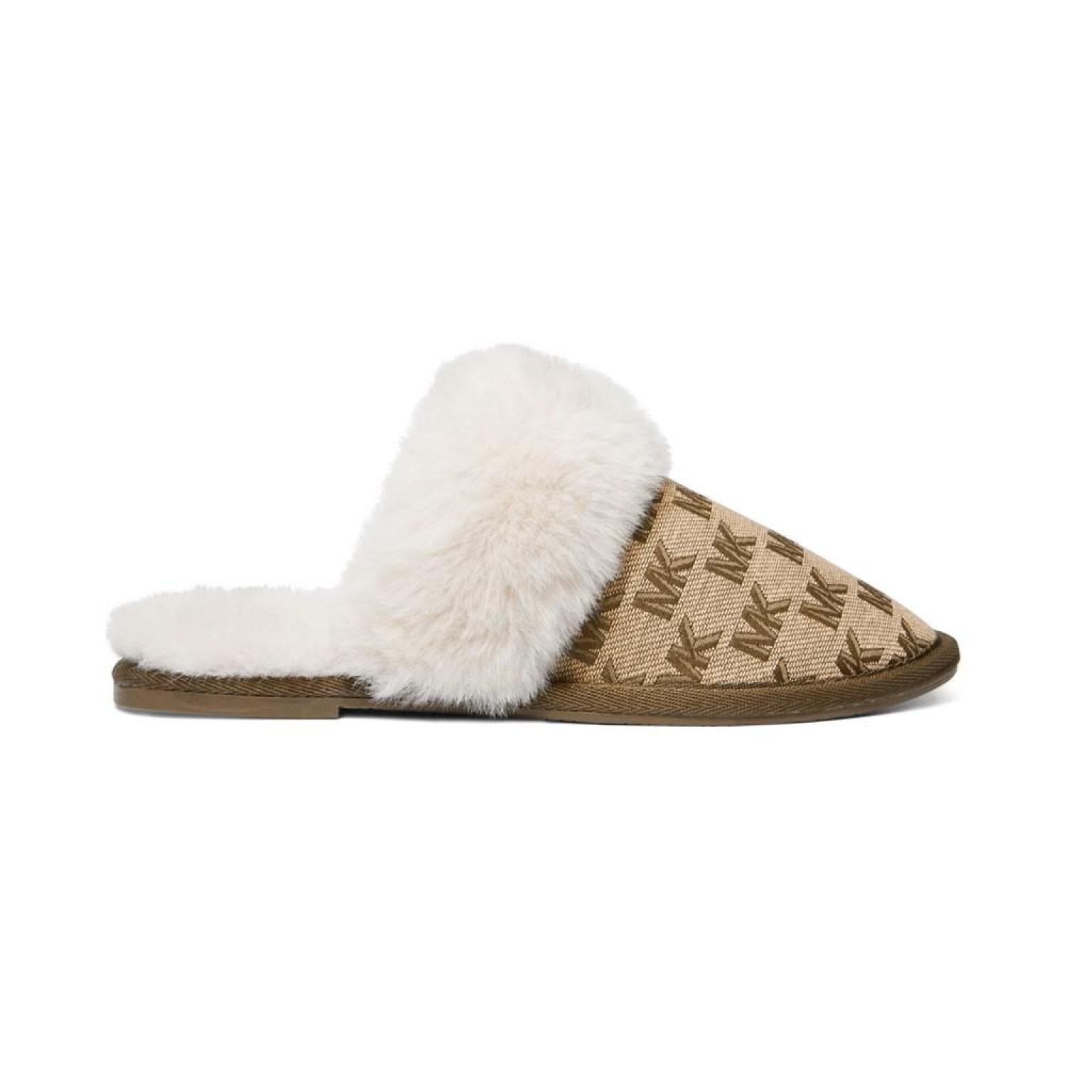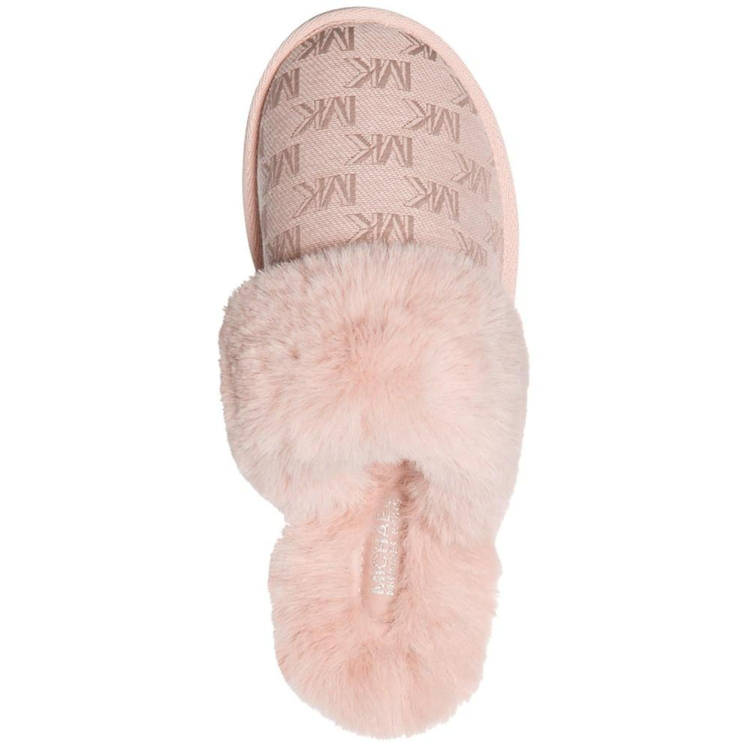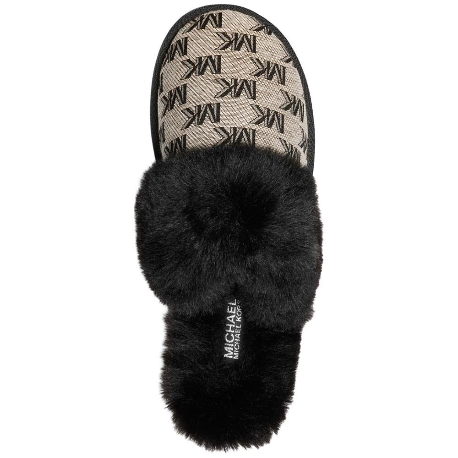 Plush faux-fur cuffs pair wiith signature style in the MICHAEL Michael Kors Tula scuff slippers for a look to love with cozy appeal.