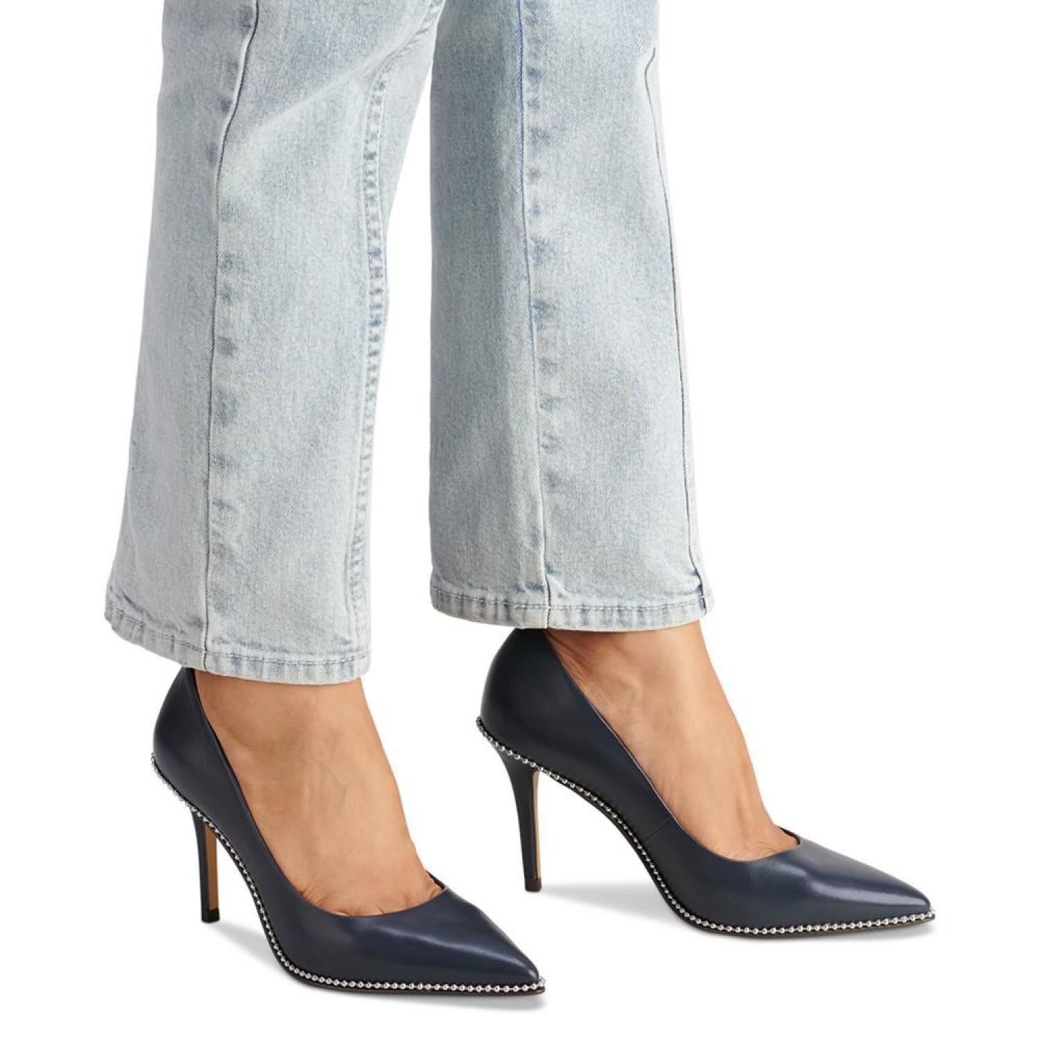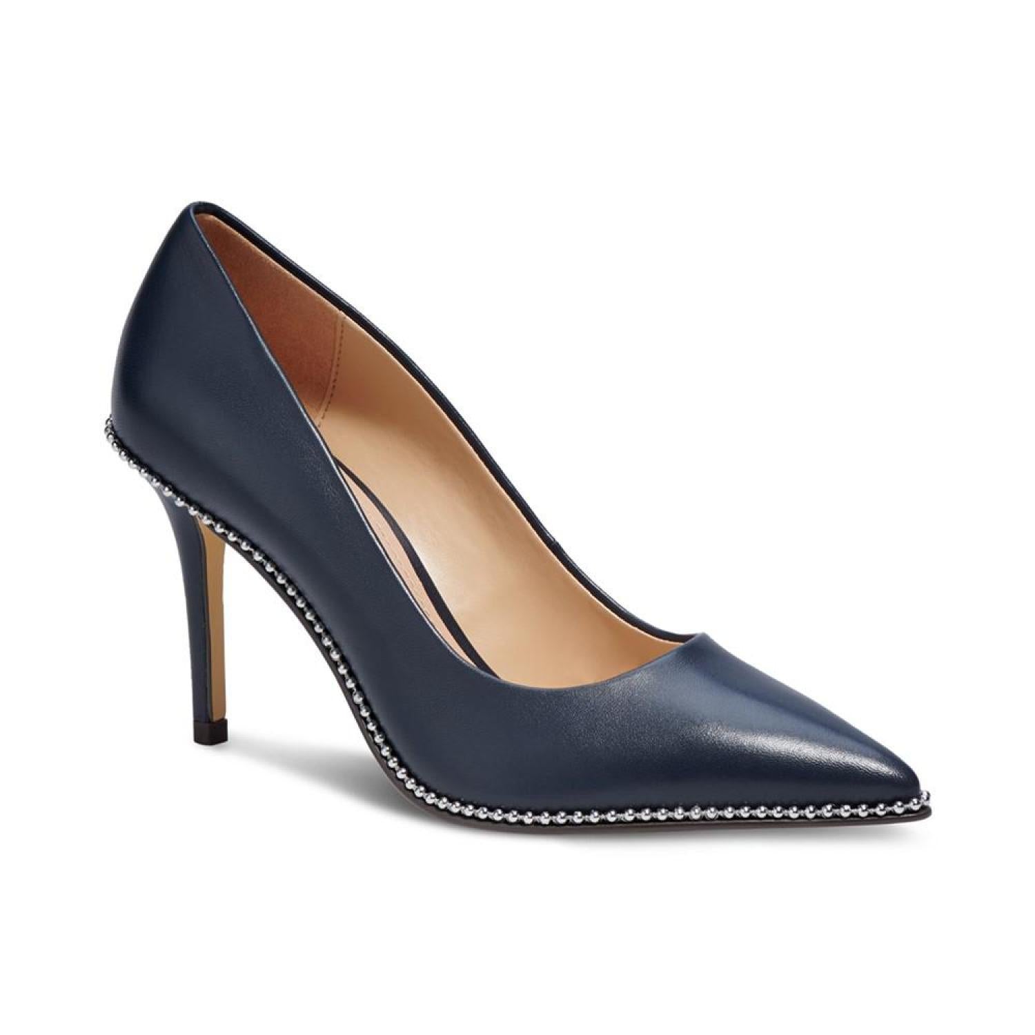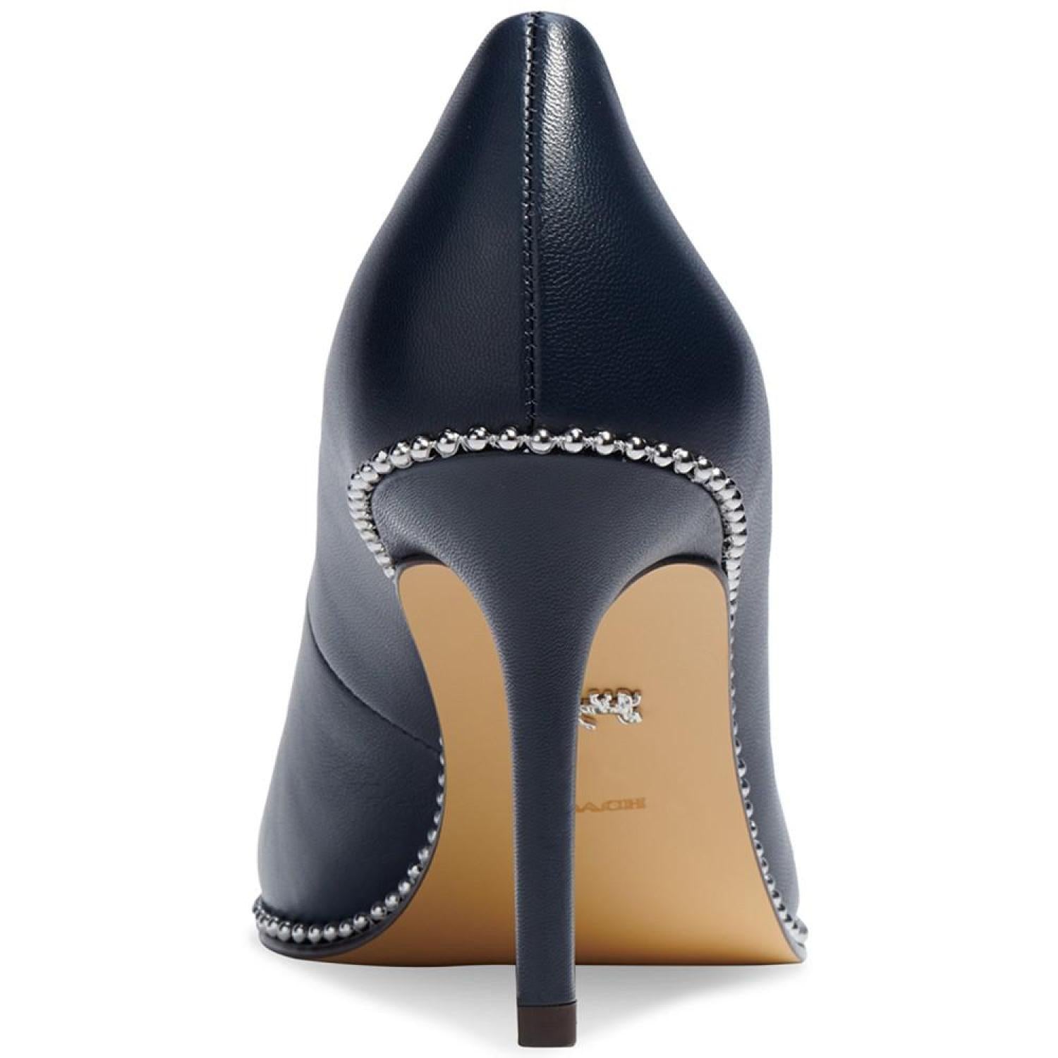 • COACH updates the classic pointed-toe profile of the Waverly pumps with a hint of metallic flash in beaded chain welt detailing.
