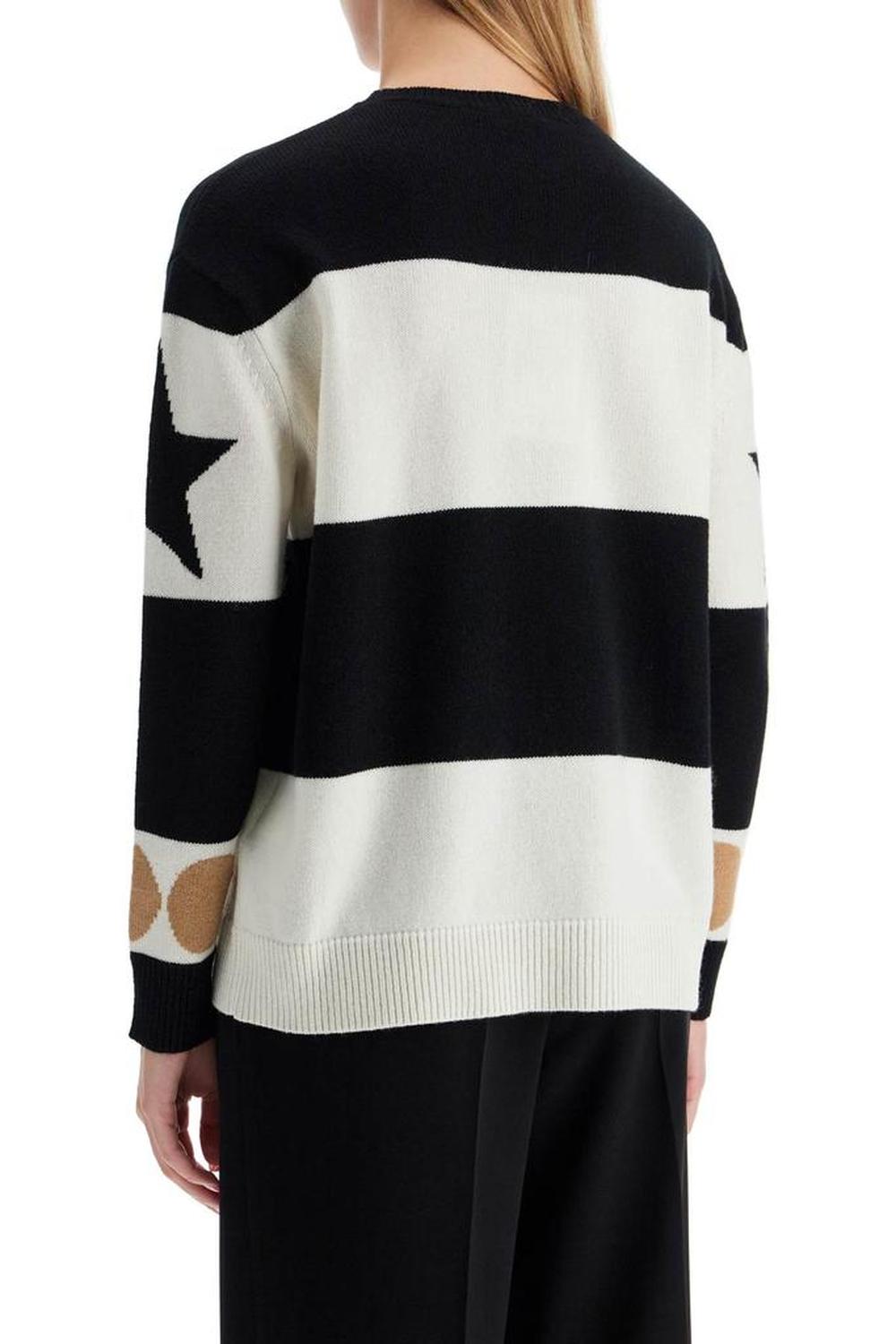 This Max Mara pullover is made of soft ribbed wool and cashmere, enriched with intarsia details and a flocked 1951 motif on the chest. It features a round neckline, ribbed cuffs and hem, and has a relaxed fit with dropped shoulders. The model is 177 cm tall and wears a size XS.