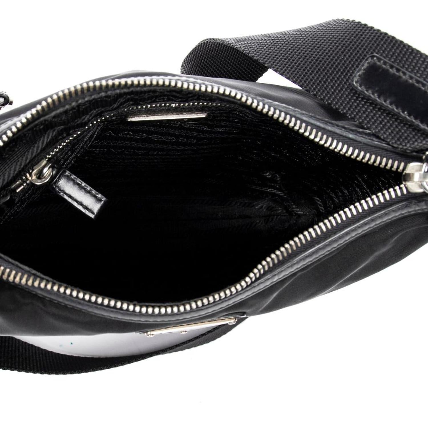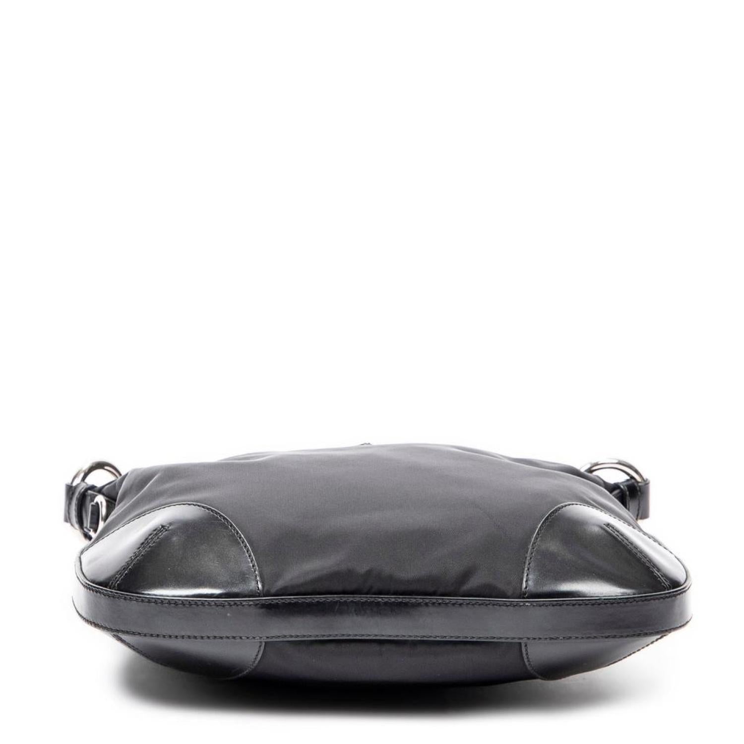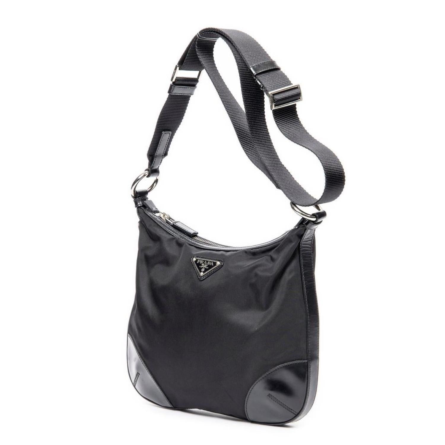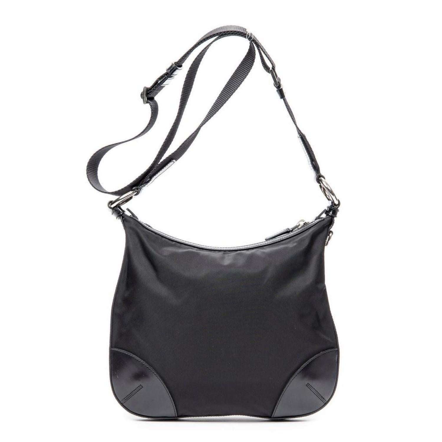 Prada Shoulder Bag in Black Nylon Canvas and Silver hardware. Dimensions - 28*23*2cm. Serial number - BT0541. Inclusions - card.