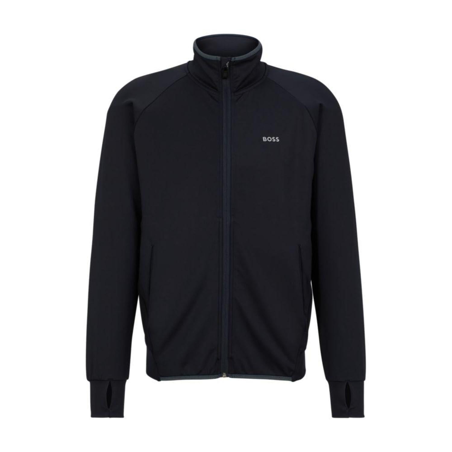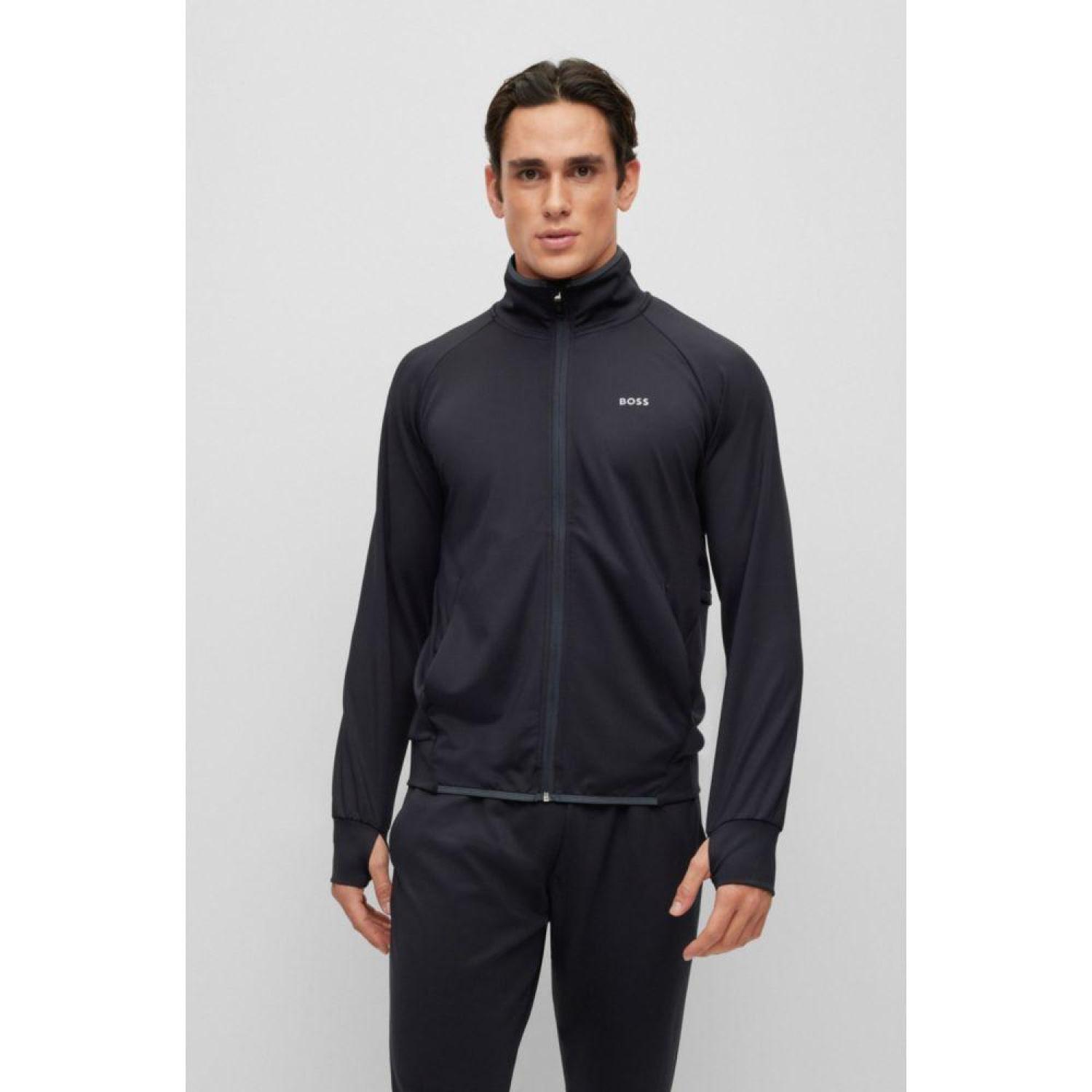 • A regular-fit zip-up sweatshirt by BOSS Menswear, designed in active-stretch fabric with decorative reflective elastic binding, a logo detail and sporty thumbholes.