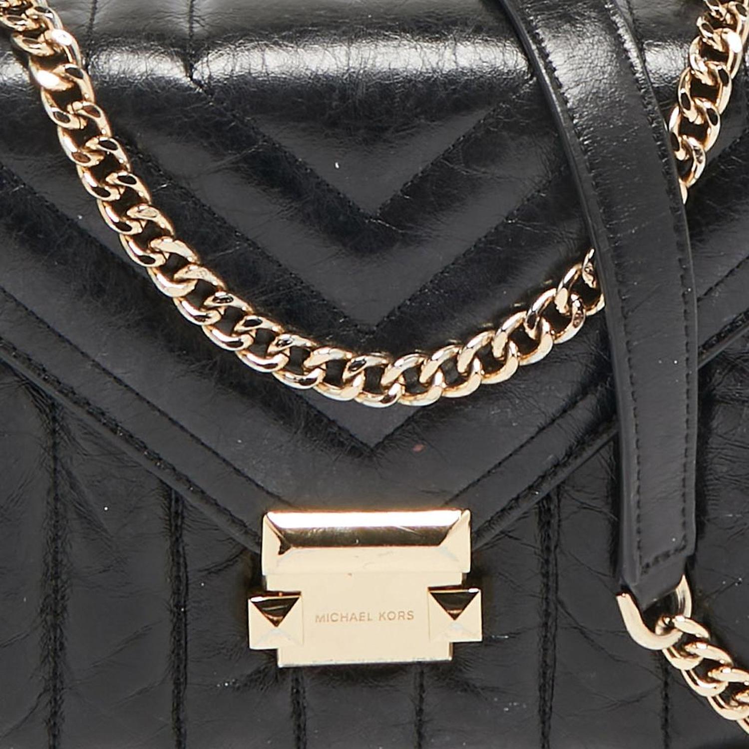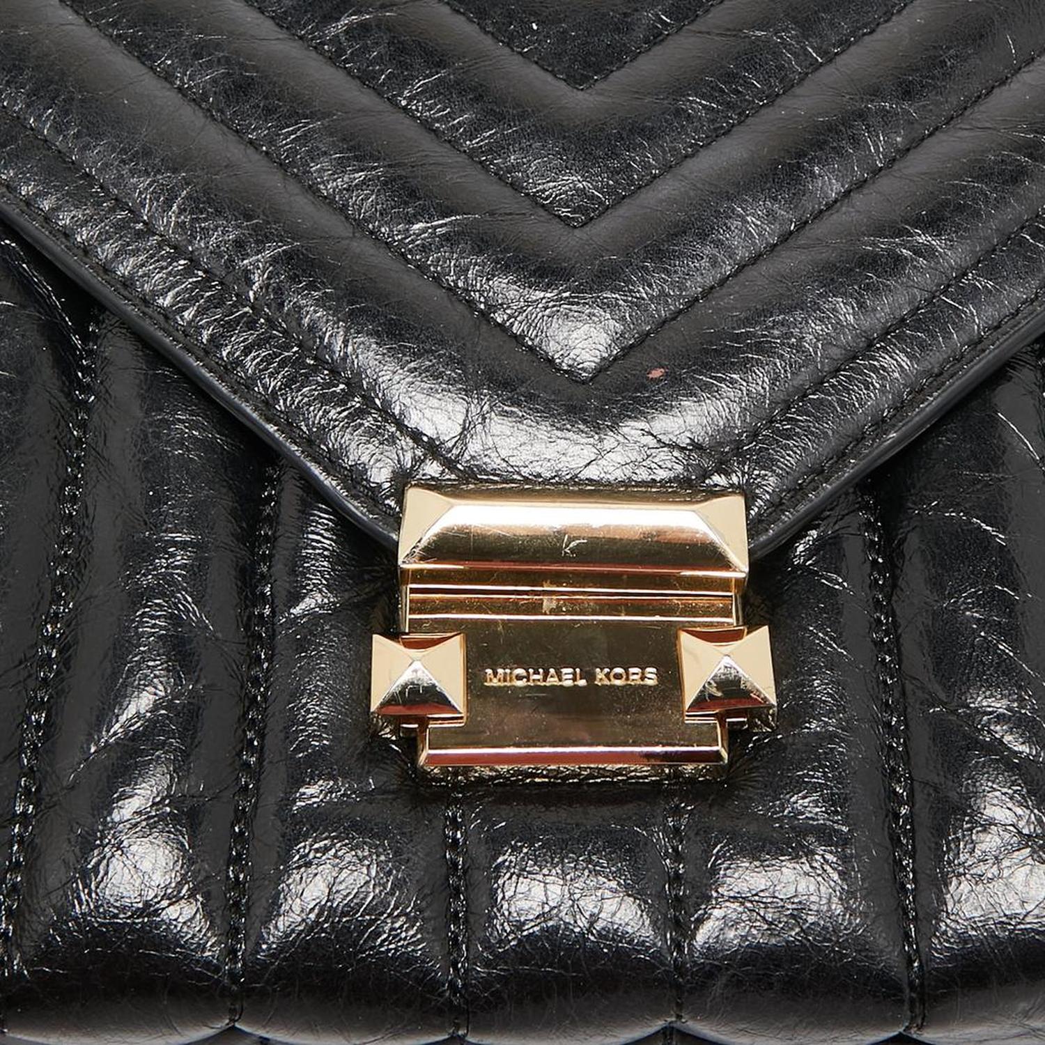 Black Quilted Glossy Leather Large Whitney Shoulder Bag