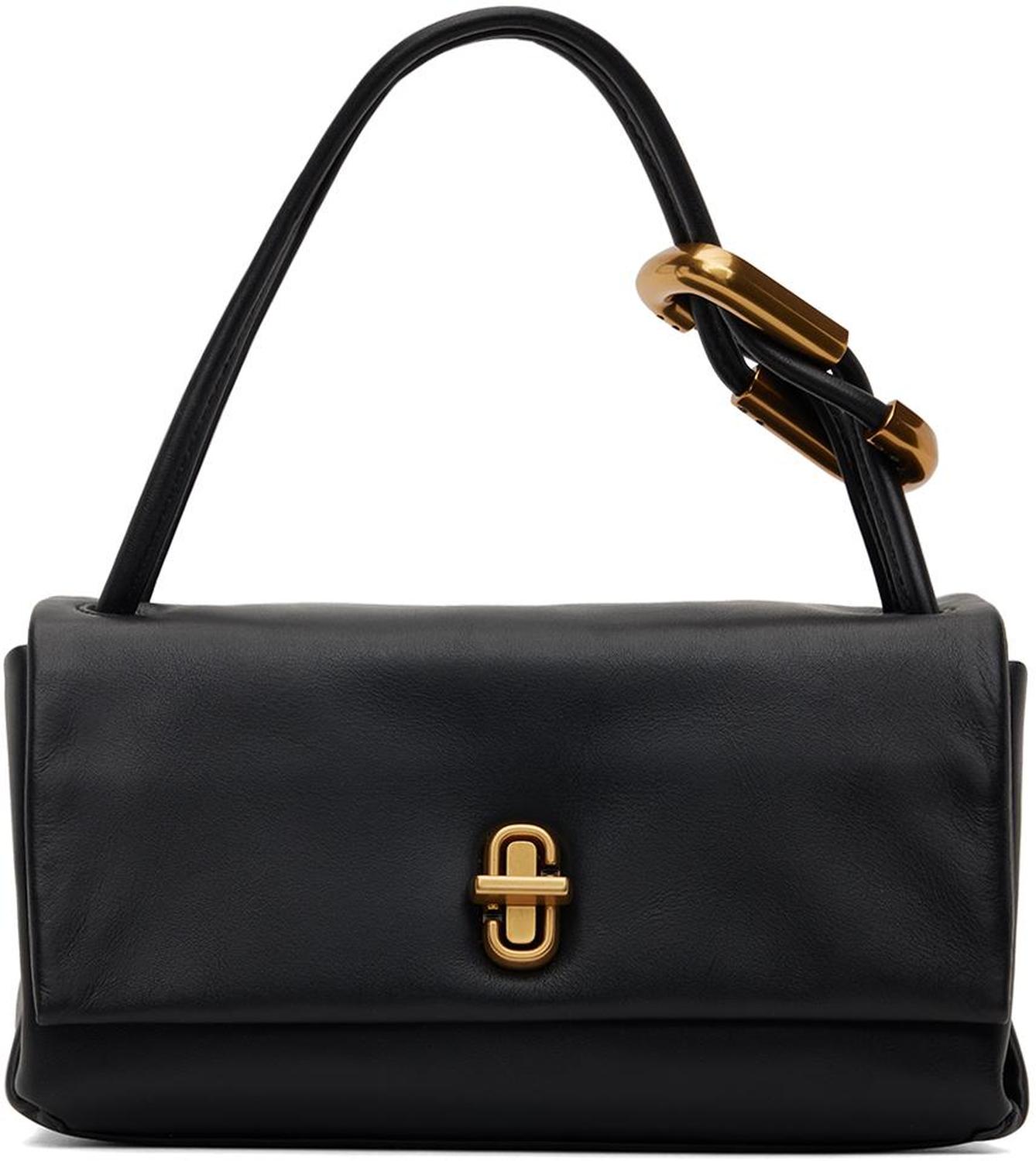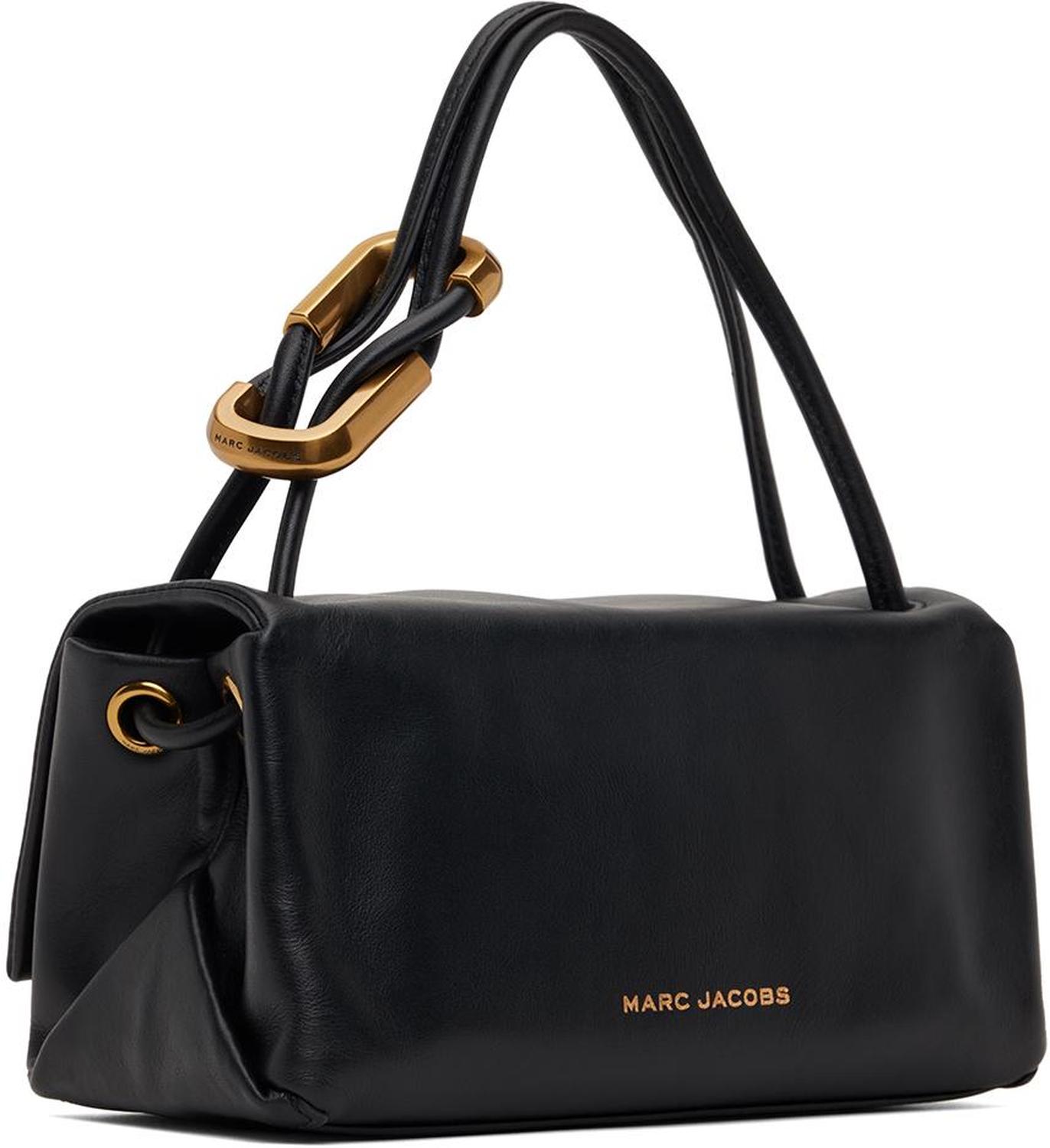 Marc Jacobs Black 'The Mini Dual' Bag Buffed leather shoulder bag in black. · Logo hardware and knotted detailing at carry handles · Logo embossed at back face · Turn-lock flap · Zip pocket at interior · Buffed nappa leather lining · Logo-engraved gold-tone hardware · H4.5 x W8" x D4.25" Supplier color: Black Leather. Made in Viet Nam. 242190F048068