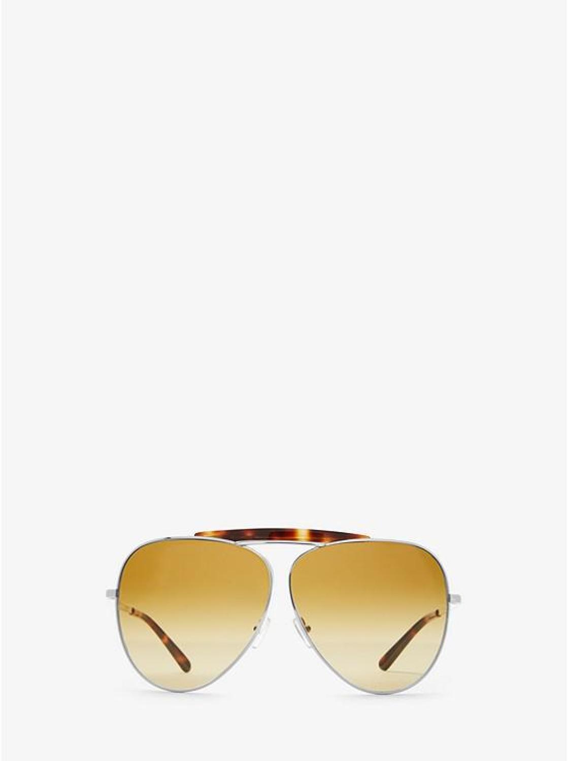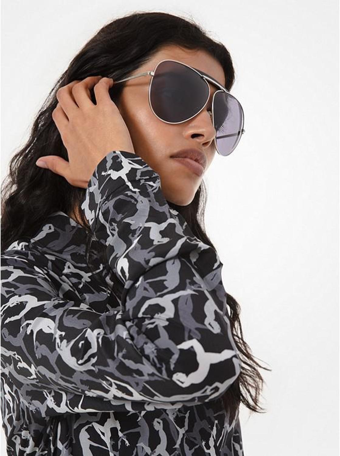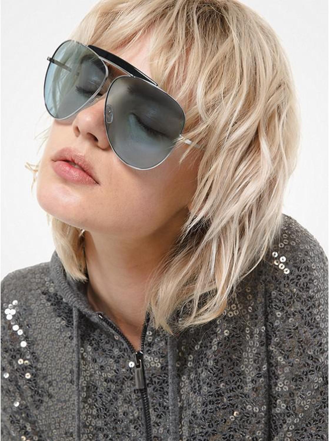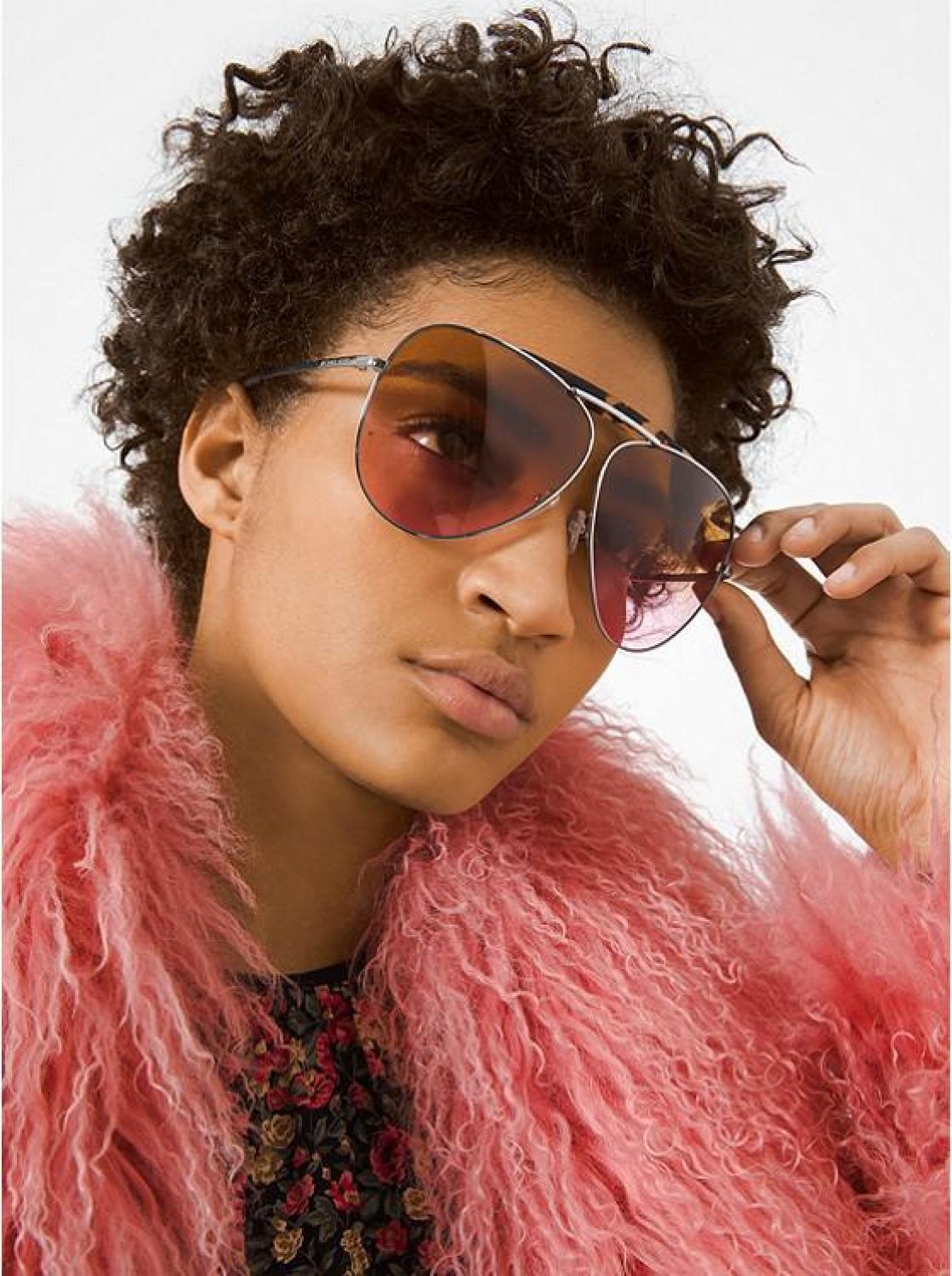 • Our Bleecker sunglasses will instill looks with a striking ’70s sensibility. Designed in Michael’s signature aviator silhouette, these oversized frames feature a sleek acetate brow bar that will complement myriad face shapes.