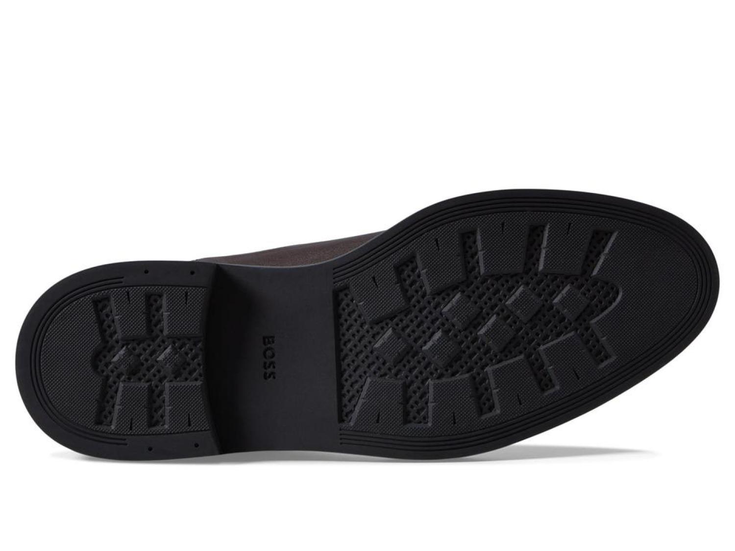 • Aesthetic in appeal and sturdy in quality, the BOSS® Calev Chelsea Boot is designed for a long-lasting performance. These feature an almond toe shape, slight block heel, and elastic gore panels on the sides for easy on/off. The boots come skillfully crafted with a cow skin upper, cow skin lining, and a polyester footbed for improved comfort.