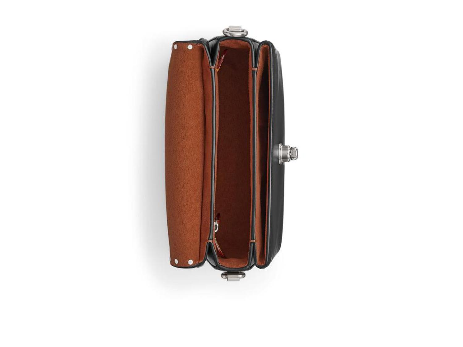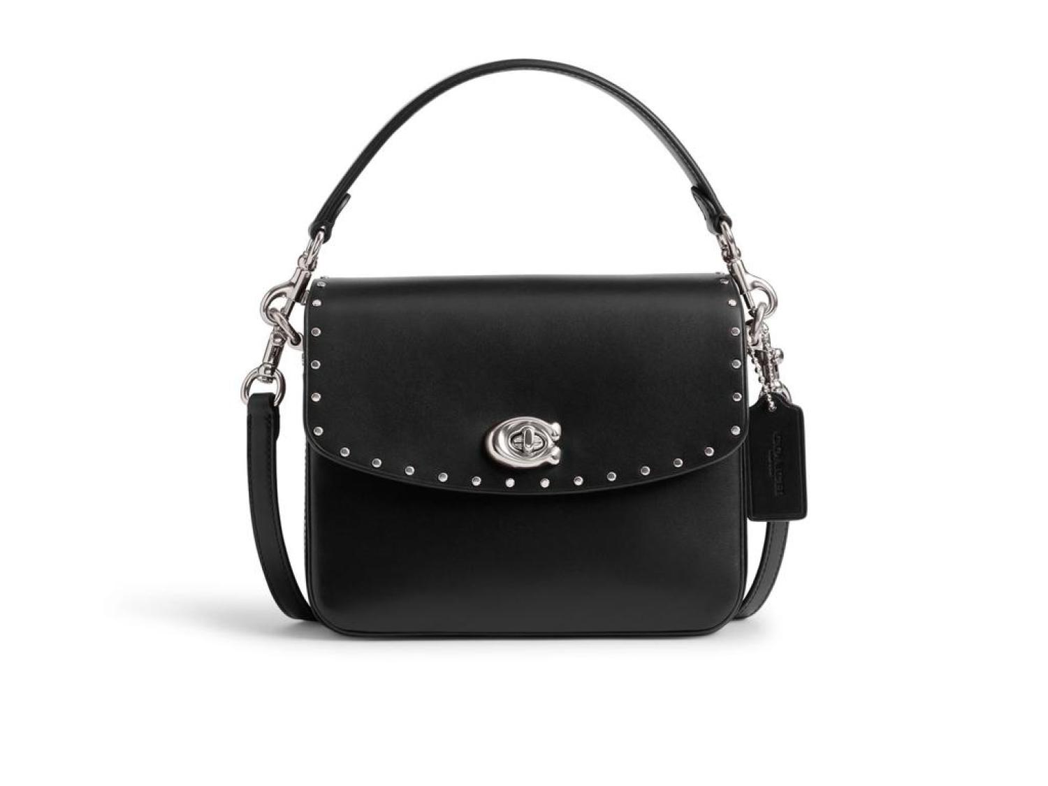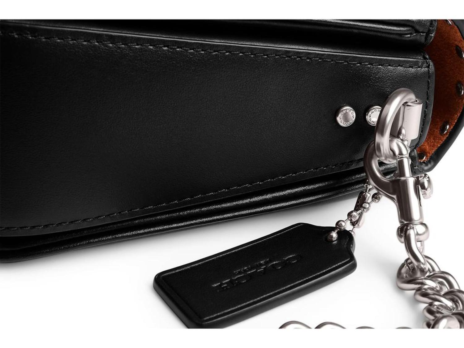 The COACH™ Cassie Crossbody Bag 19 with Rivets is a stylish and versatile accessory crafted from refined calf leather. This chic bag features a flap with a turn-lock closure, making it both secure and fashionable. The bag also comes with a detachable short strap and a detachable chain strap, allowing you to wear it in multiple ways. Perfect for everyday use or a night out on the town.