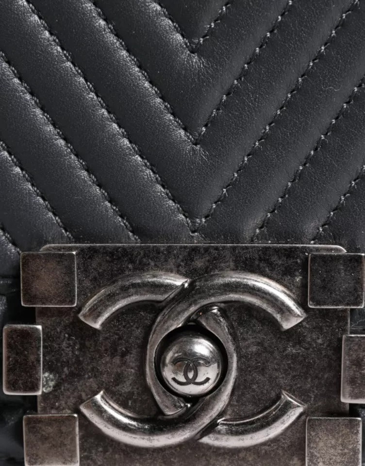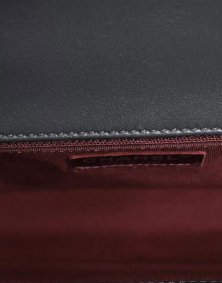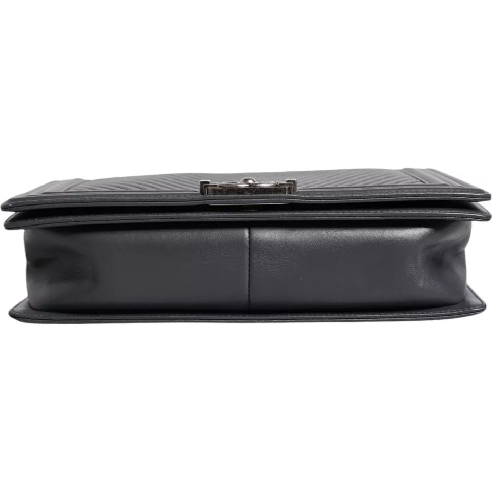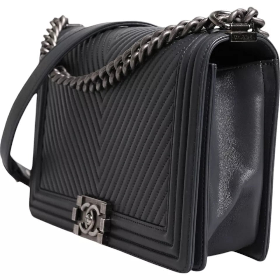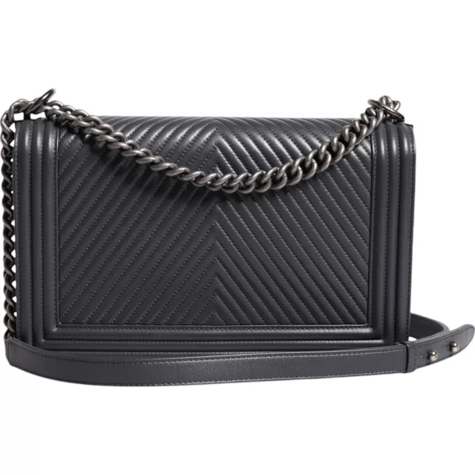 This Chanel Boy Bag in size large is crafted from luxurious gray lambskin leather with stunning silver hardware. Lightly preowned, the bag shows light signs of wear, but remains in excellent condition. The Boy Bag’s bold, modern design, with its signature quilted pattern and sleek chain strap, makes it a standout piece for any collection. Spacious yet stylish, it’s perfect for both day and night looks. This timeless Chanel classic is a must-have for any fashion enthusiast looking to elevate their wardrobe.