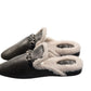 Christian Louboutin Woolito swing flats feature tapered lines, embellished chain detailing and a beautiful combination of soft nappa leather and shearling. To complete this style are the forever iconic red soles.