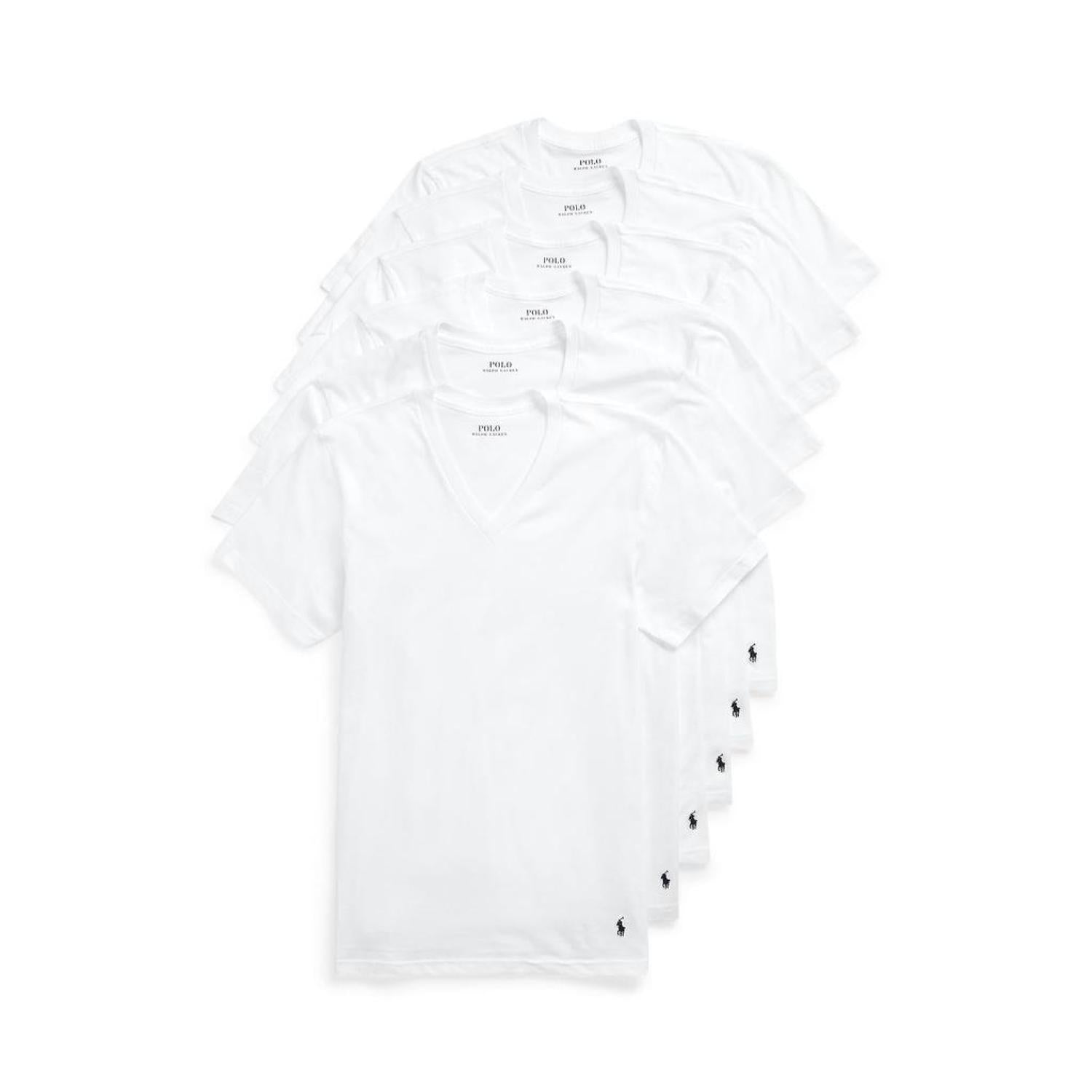 • The Polo Ralph Lauren® Classic Fit V-Necks are your go-to casual wardrobe staple for a reason. Made from an incredibly soft cotton jersey, this stylish undershirt not only feels great against your skin but also wicks away sweat to keep you dry and comfortable all day long. It features a classic V-neckline, short sleeves, and a straight hemline.