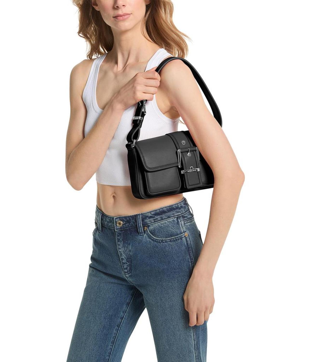 • Look effortlessly stylish, wherever you go carrying the MICHAEL Michael Kors® Colby Medium Shoulder. Crafted from leather, this bag features flap closure with adjustable buckle detailing, adjustable shoulder strap, one interior zippered closure, and one interior slip pocket.