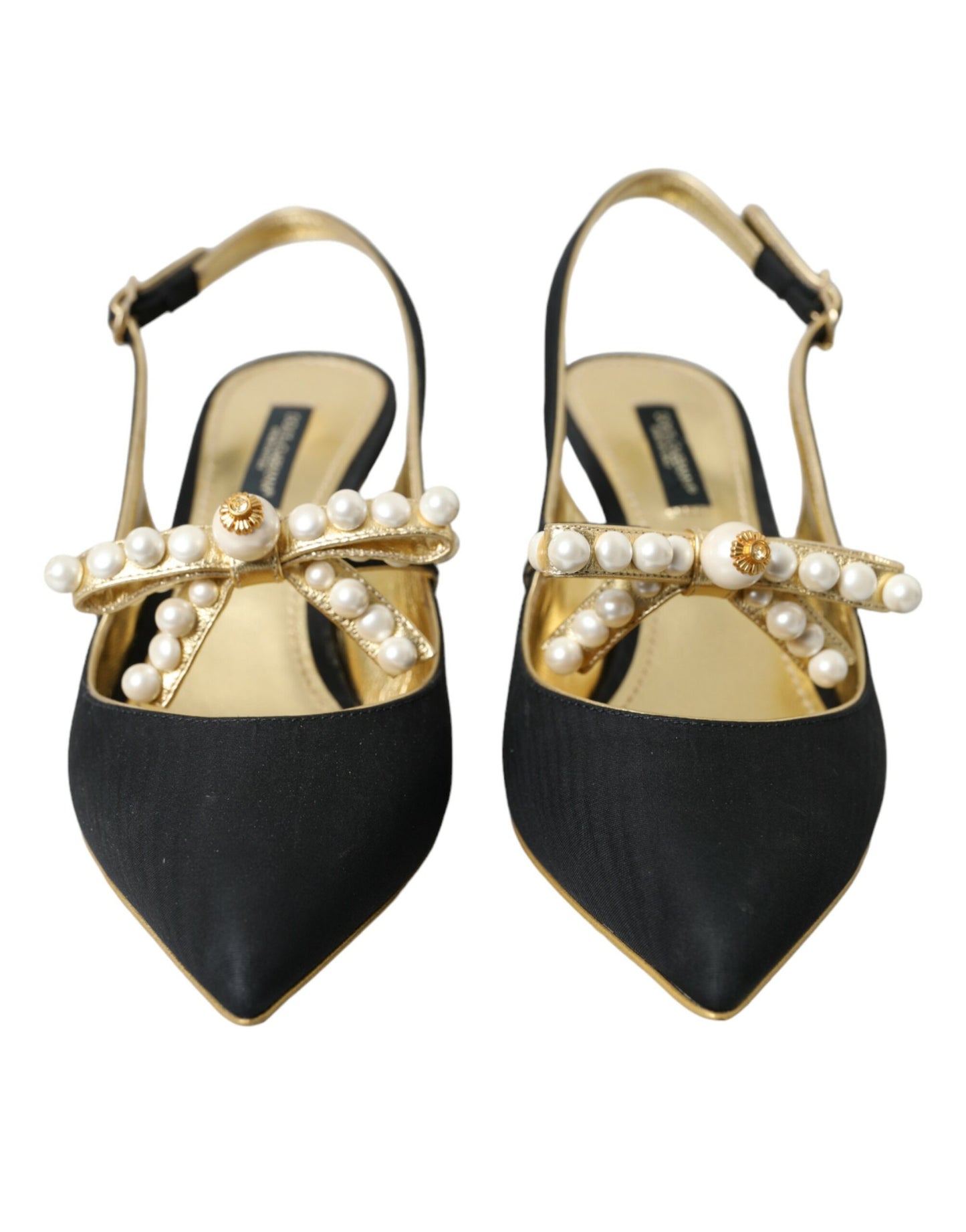 Dolce & Gabbana Black Leather Faux Pearls Slingbacks Shoes