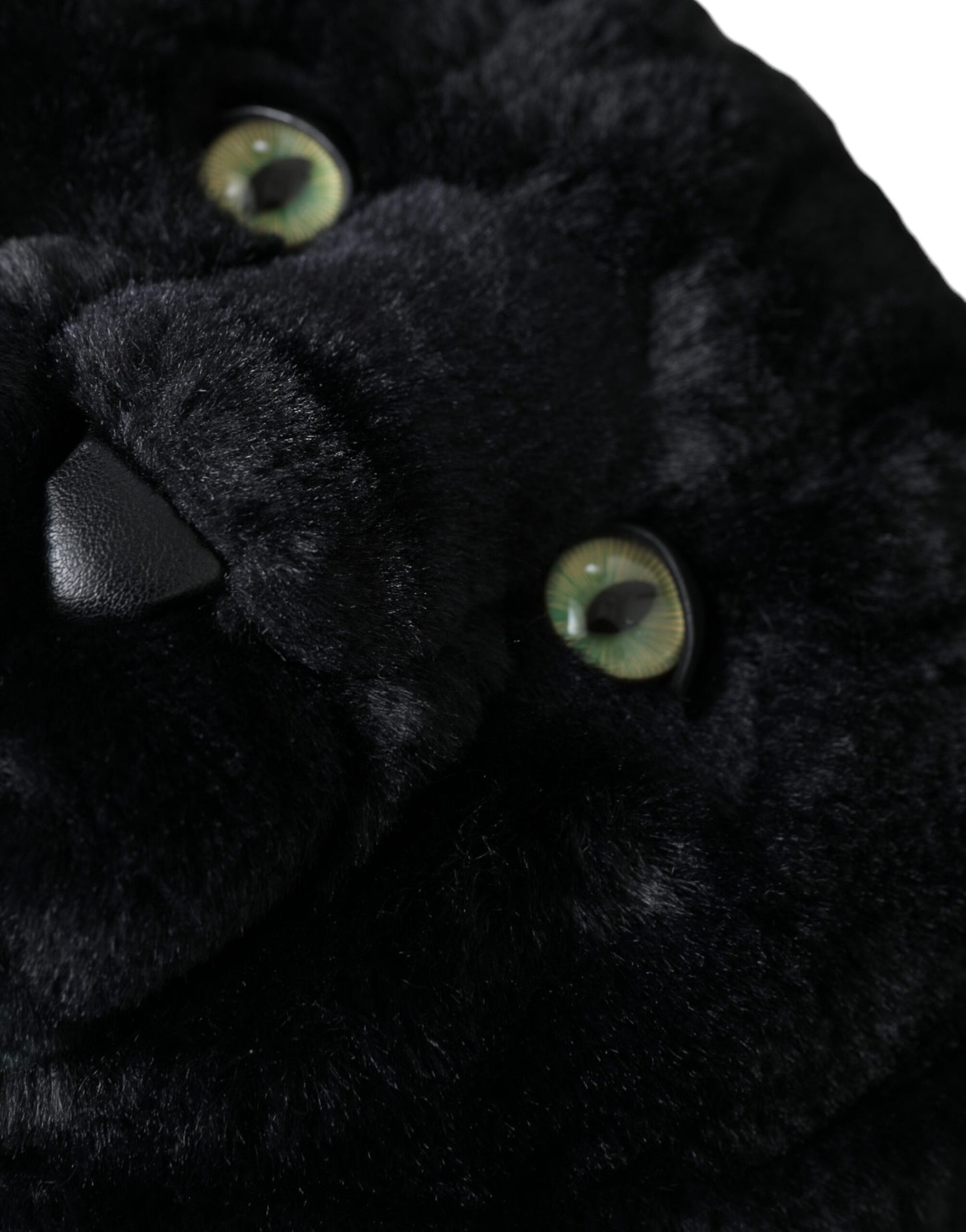 Indulge in the epitome of luxury with this captivating shoulder bag by Dolce & Gabbana. Exquisitely crafted with croc-embossed leather, this bag boasts a unique panther design, brought to life with black faux fur and piercing green eyes on the flap. A lavish gold-tone chain strap complements the bag, while an additional back pocket adds practicality to its stunning form. With its Italian origins, this bag represents the zenith of high-end craftsmanship.