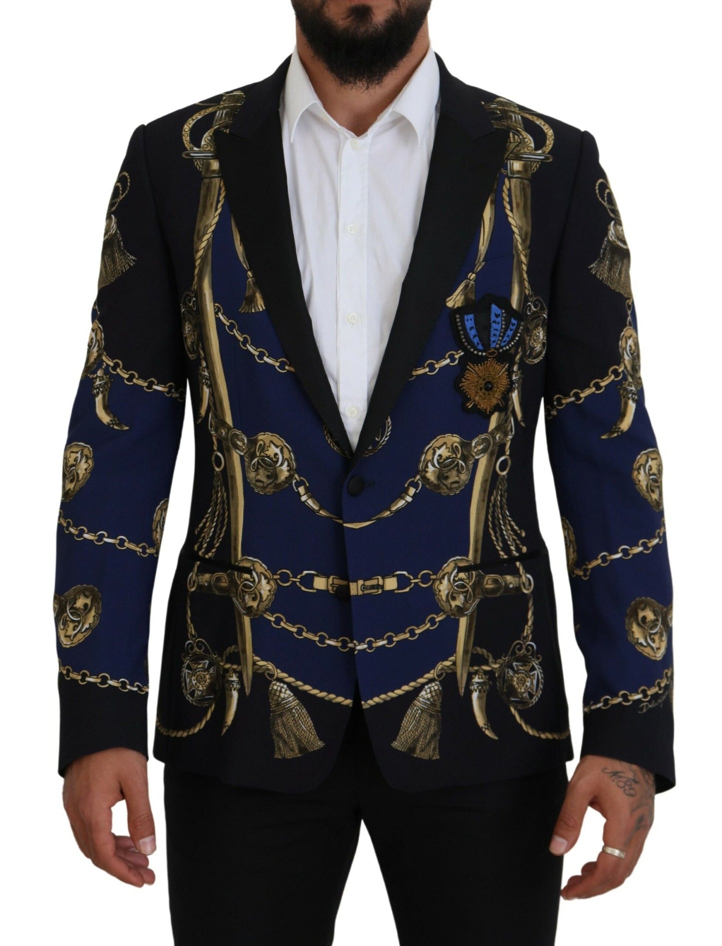 Step out in impeccable style with this exquisite multicolor Martini blazer from the esteemed Dolce & Gabbana collection. Perfectly crafted to add a luxurious touch to your formal attire, this blazer features two front buttons for stylish closure and two refined front pockets, while the 100% silk inner lining promises unparalleled comfort. Crafted in Italy, the blend of materials ensures a sophisticated silhouette with just the right amount of sheen, making you the epitome of elegance at any event.