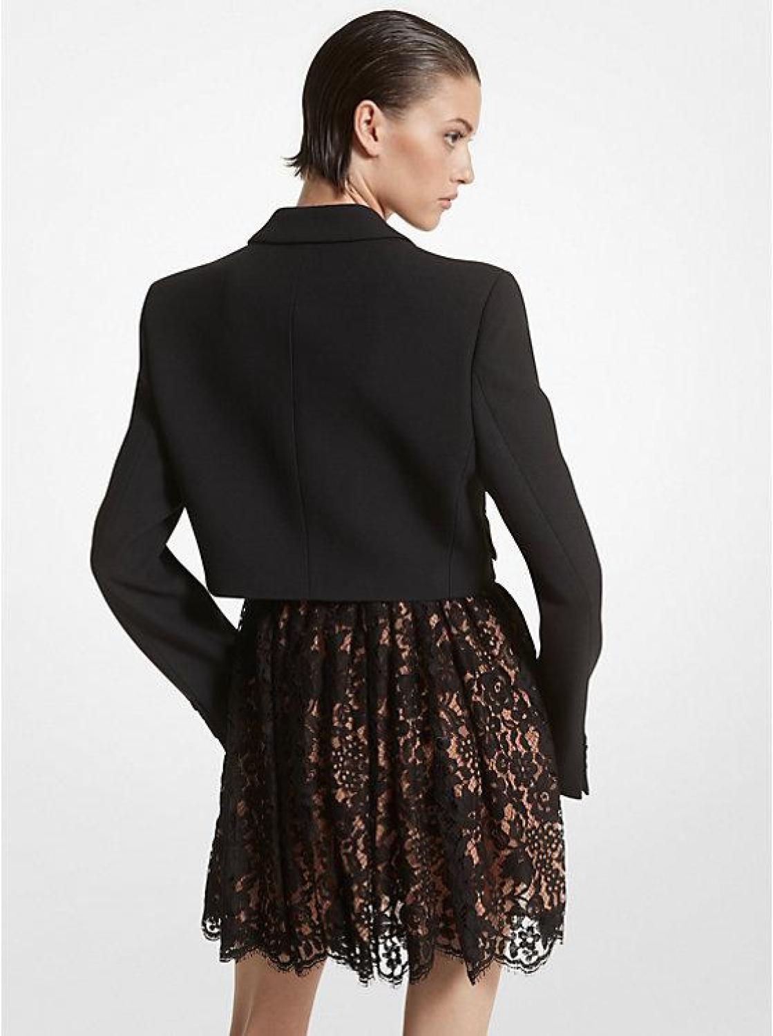 • Drawing inspiration from vintage styles, this sharp jacket offers an unexpected finishing touch to any ensemble. Crafted from a sumptuous double crepe sablé, it’s designed with notched lapels, slightly padded shoulders and an ultra-cropped hem. Style it with matching trousers, or layer it over a strapless maxi dress as Michael did on the Spring/Summer 2024 runway. Made in Italy.