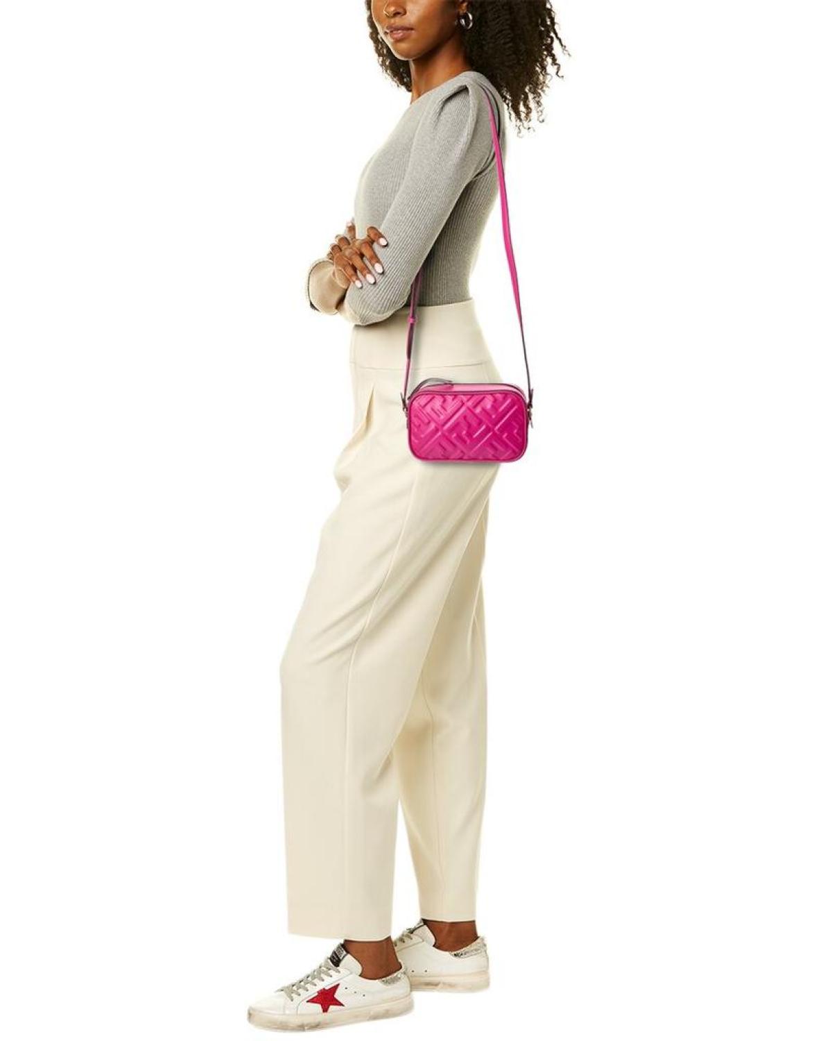 Introducing the FENDI FF Mini Leather Camera Bag, a stylish and sophisticated accessory that embodies innovative and elegant Italian luxury. Crafted in Italy, this crossbody bag showcases the iconic Fendi FF logo in pink leather with beautiful gold-tone hardware. The interior of the bag features a convenient pocket, offering ample space to keep your essentials organized. Measuring 7.5 inches wide, 4.5 inches high, and 2.5 inches deep, this bag is compact yet spacious enough to carry your daily essentials.The adjustable and removable shoulder strap allows for versatile wear, and it drops at a comfortable 23 inches. The zipper closure ensures the safety of your belongings while adding a touch of security and sleekness to the overall design.Please note that all measurements provided were taken by hand and are approximate; slight variations may occur. However, rest assured that all our products are 100% genuine. In some cases, we source merchandise from trusted independent suppliers rather than directly from the brand owner, but we always stand by the authenticity of every product sold on our site.Upgrade your accessory game with the FENDI FF Mini Leather Camera Bag – a perfect blend of style, function, and luxury craftsmanship.