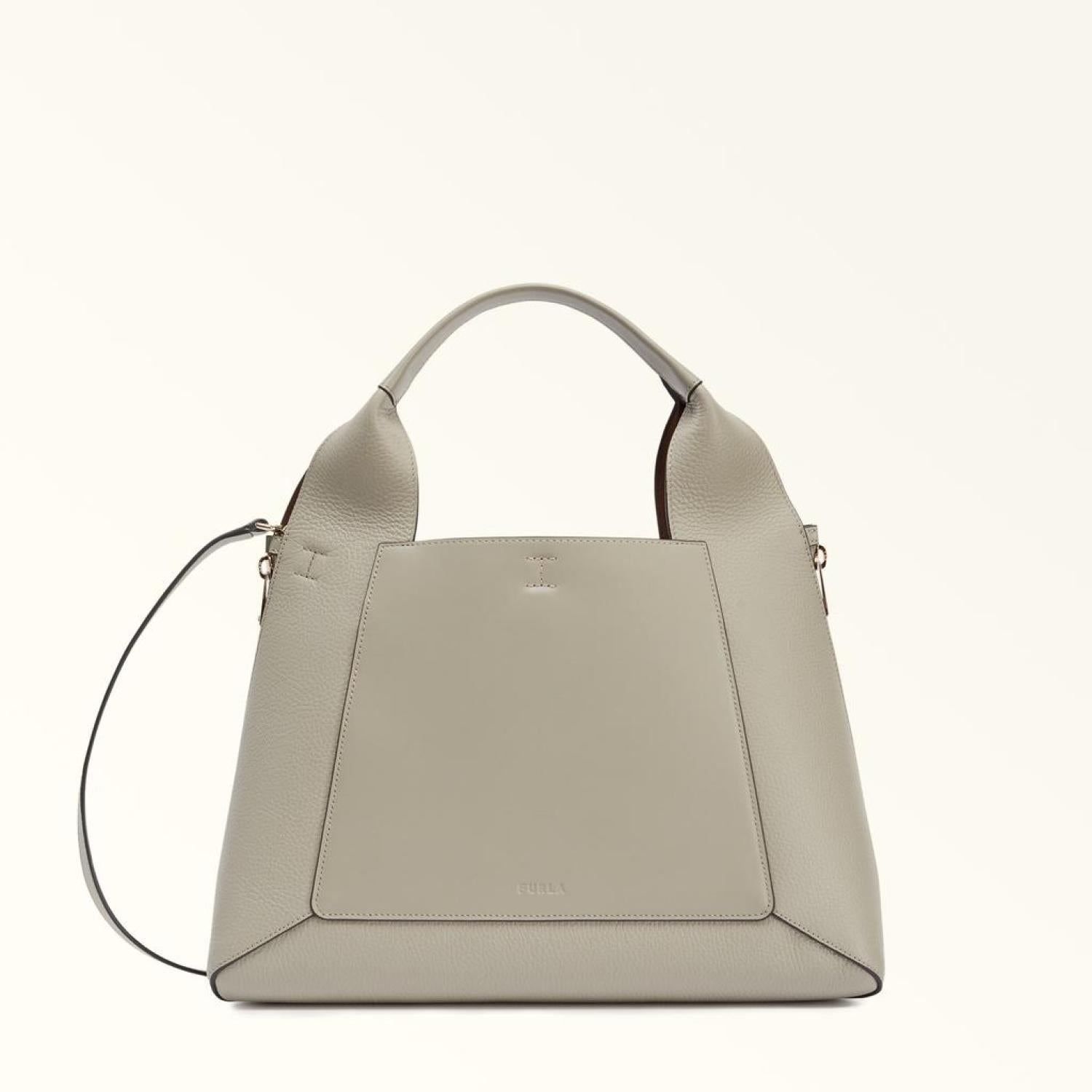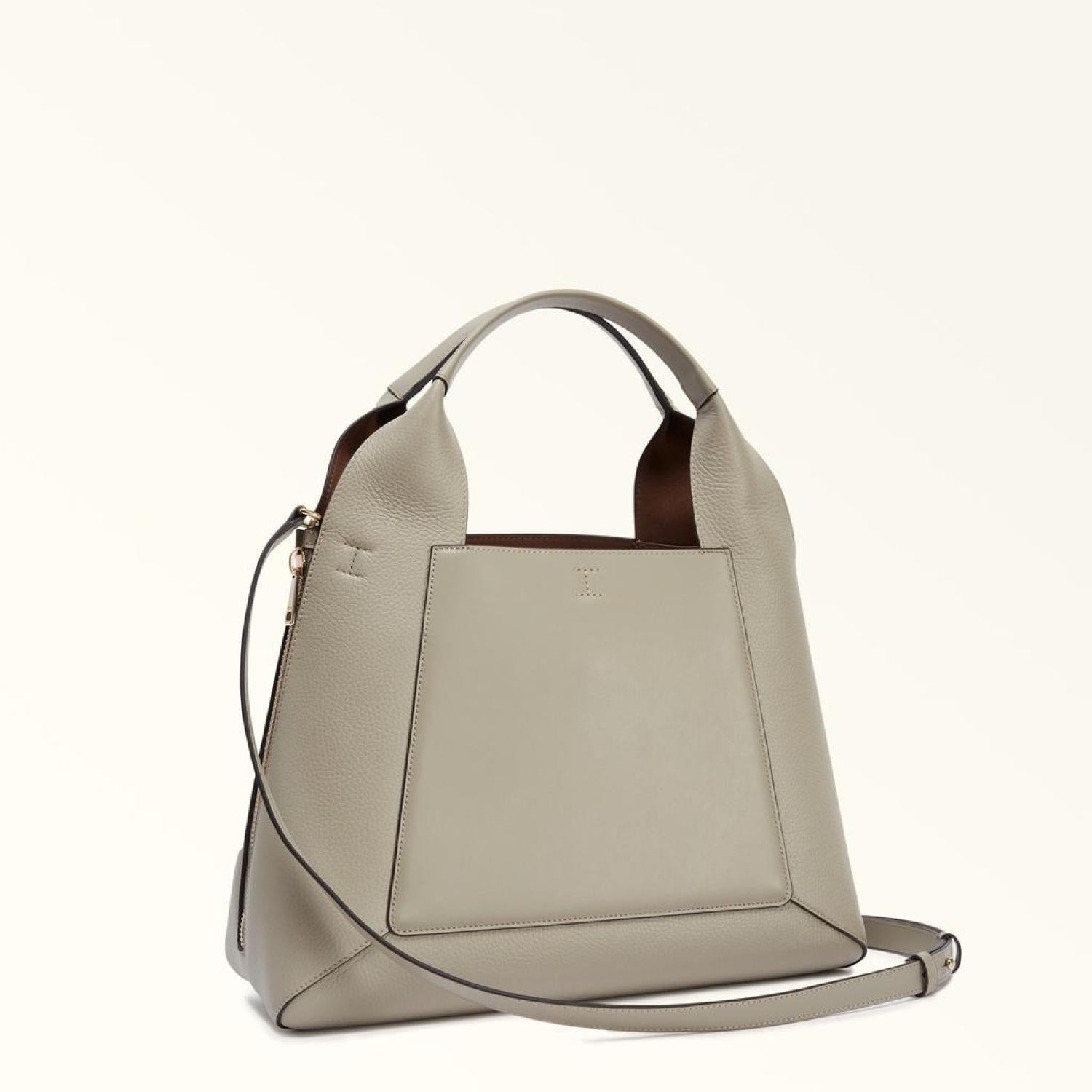 • Furla Gilda is a large shopping bag made in a combination of colour-block grained Eracle leather and grained Roma leather. The sophisticated and elegant accessory features wrapped handles and an adjustable and removable strap so it can be worn as either a handbag or as a crossbody bag. The Furla logo punched on the front completes the bag with a unique touch.