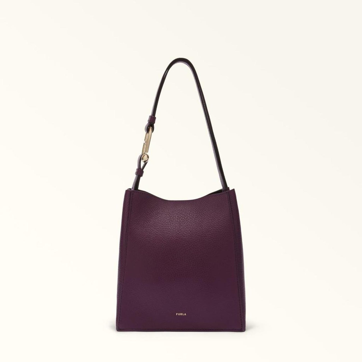 • Simple and elegant lines for this new Furla Nuvola bucket bag. Soft and lightweight, it is styled in fine grained leather with a rich and luxurious feel. The small size is comfortable to carry whether in the hand or on the shoulder thanks to the adjustable buttoned handle, made distinctive by the Arcosfera hardware that brings the iconic Furla Arch logo together with the original round element of the brand.
