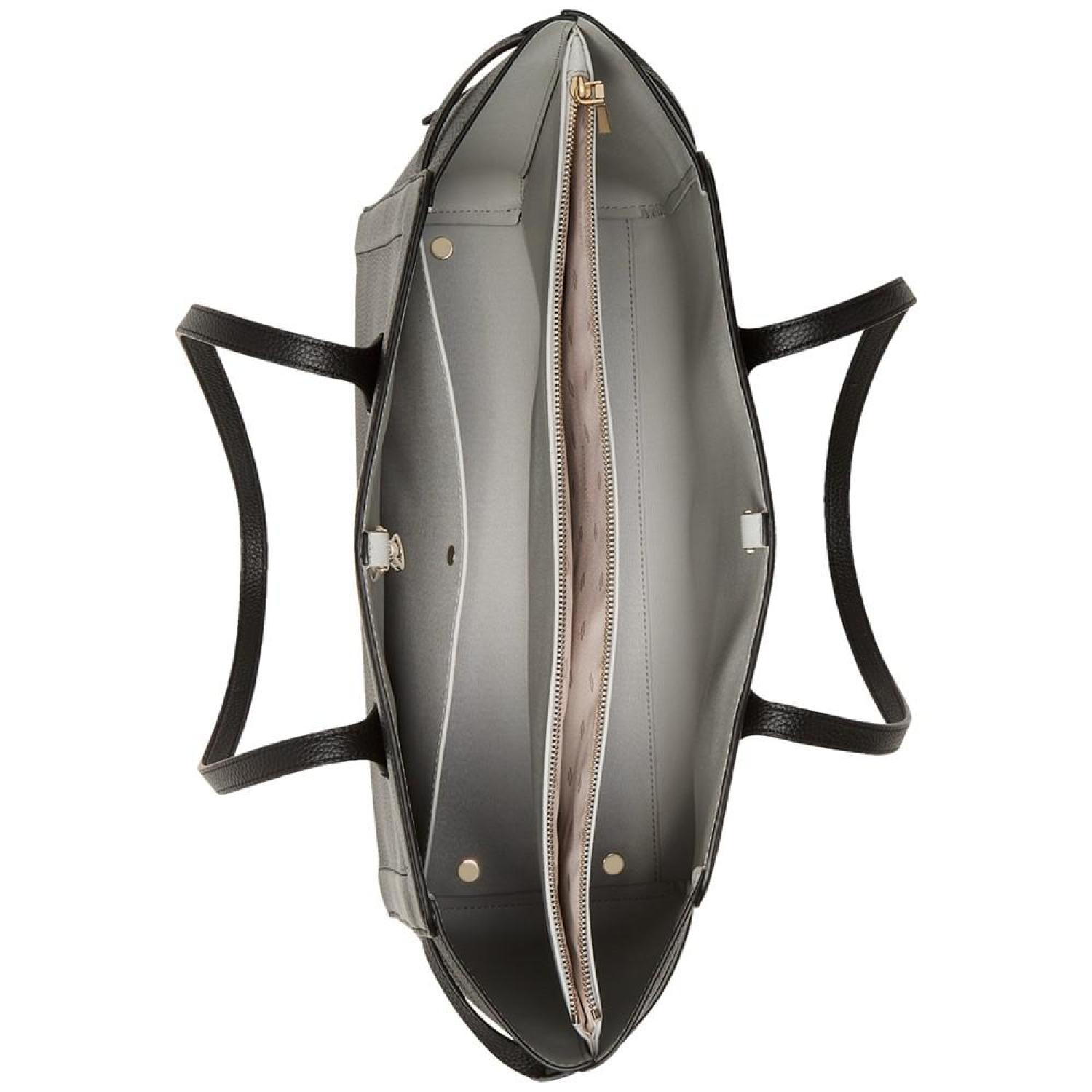• Pebbled leather turns up the style on this large Kate Spade New York tote, while knot details add extra style to the sides.