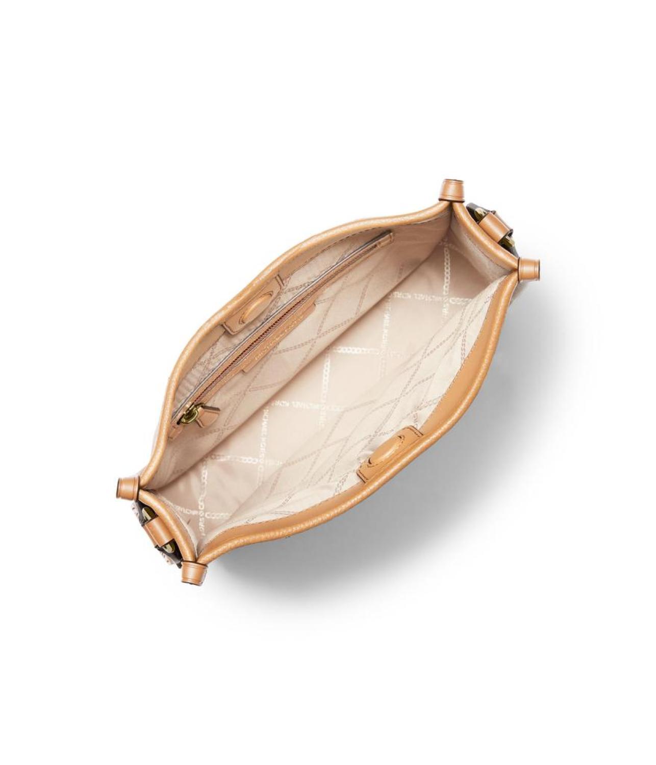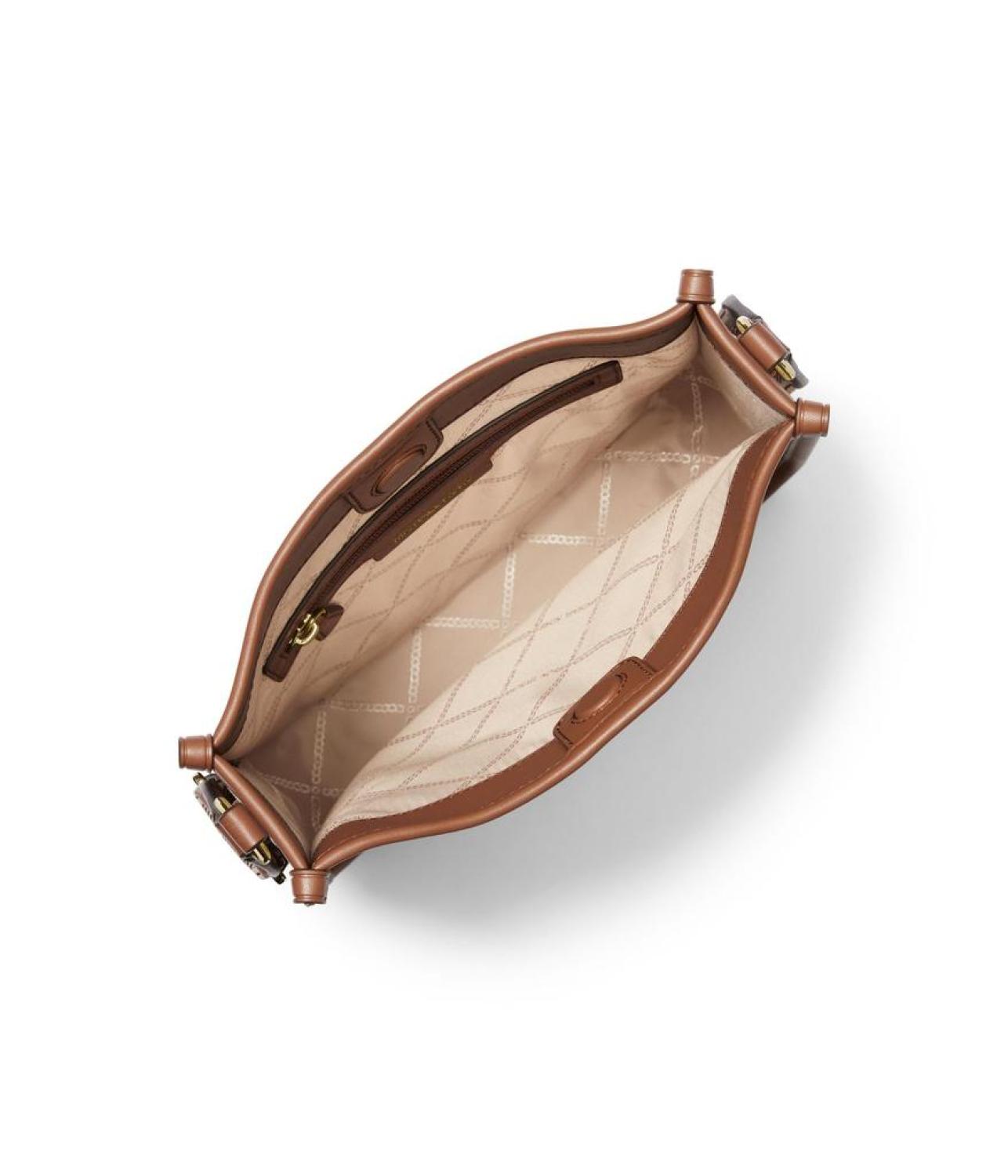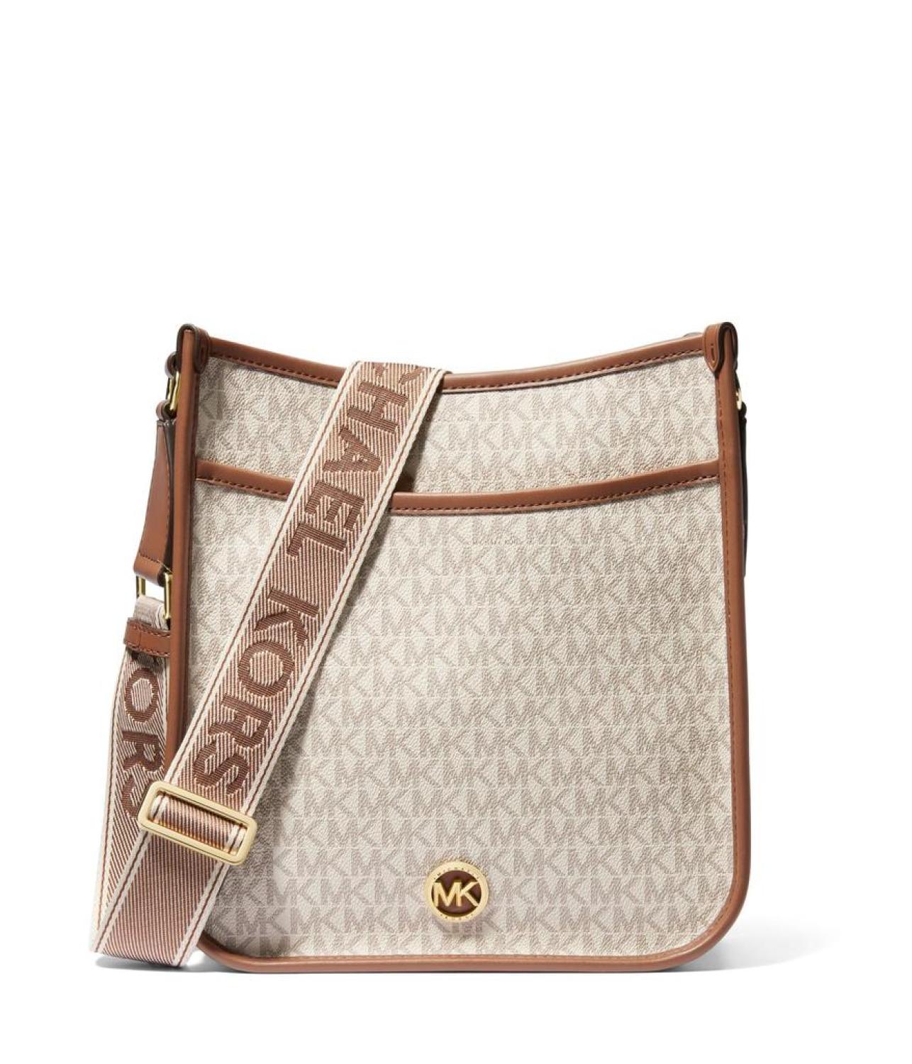 • Discover the epitome of fashion and function by donning the MICHAEL Michael Kors® Luisa Large North South Messenger. Crafted with unmatched precision, this handbag boasts iconic MK branding, a top zip closure for security, and elegant gold hardware. Its front/rear sections and internal compartments keep you organized, while the adjustable leather shoulder strap offers comfort and sophistication.