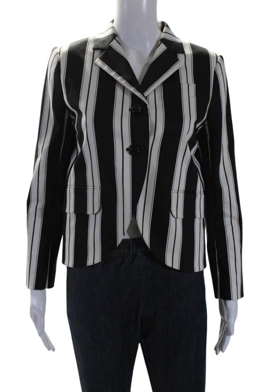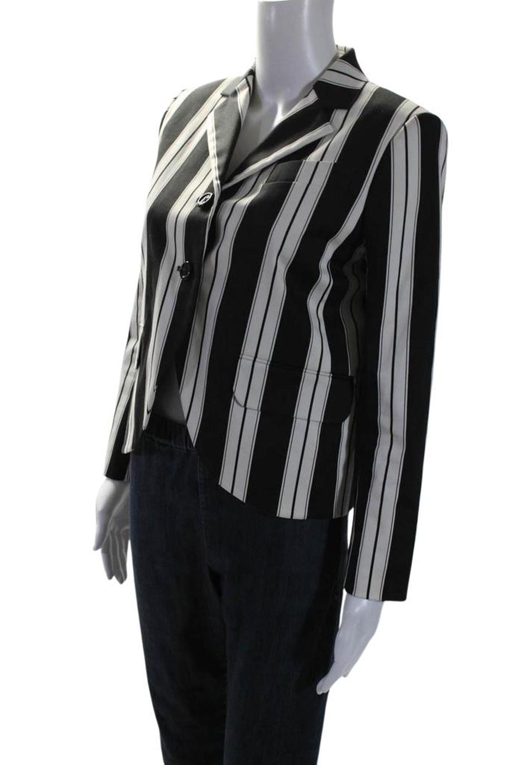 Marc Jacobs Womens Cotton Striped Single Breasted Jacket Black White
