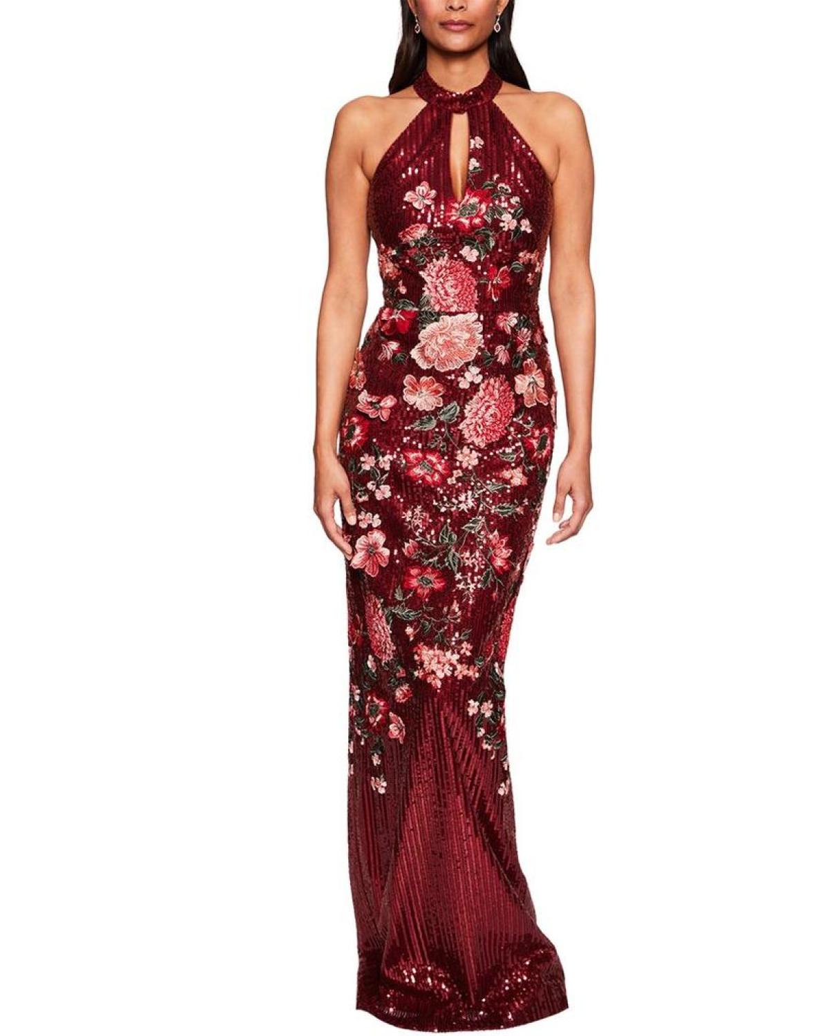• Elevate your wardrobe with the Marchesa Notte Halter Neck Printed Dress. This stunning dress features a burgundy multicolor print that is bound to turn heads at your next event. The halter neck design adds a touch of elegance, while the center back zipper allows for easy dressing. Made from 100% polyester, this dress is both comfortable and luxurious. Pair it with your favorite heels and statement jewelry for a show-stopping look. Dry clean only. Imported. About the Brand - Marchesa Notte offers a collection of gowns and cocktail dresses perfect for that special night out.