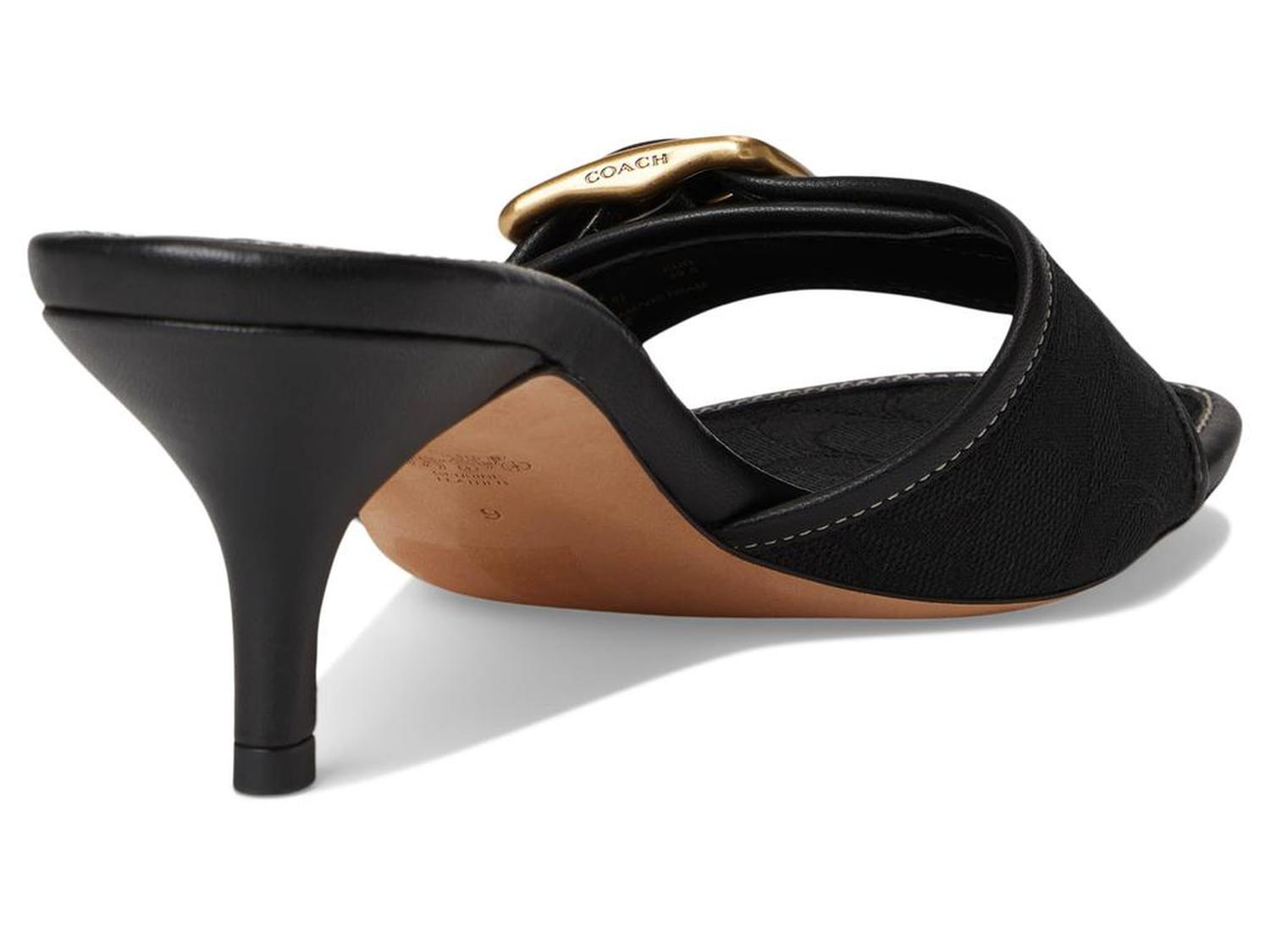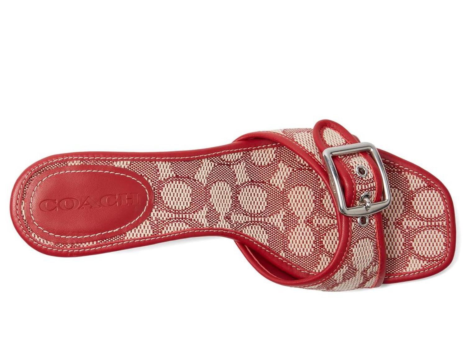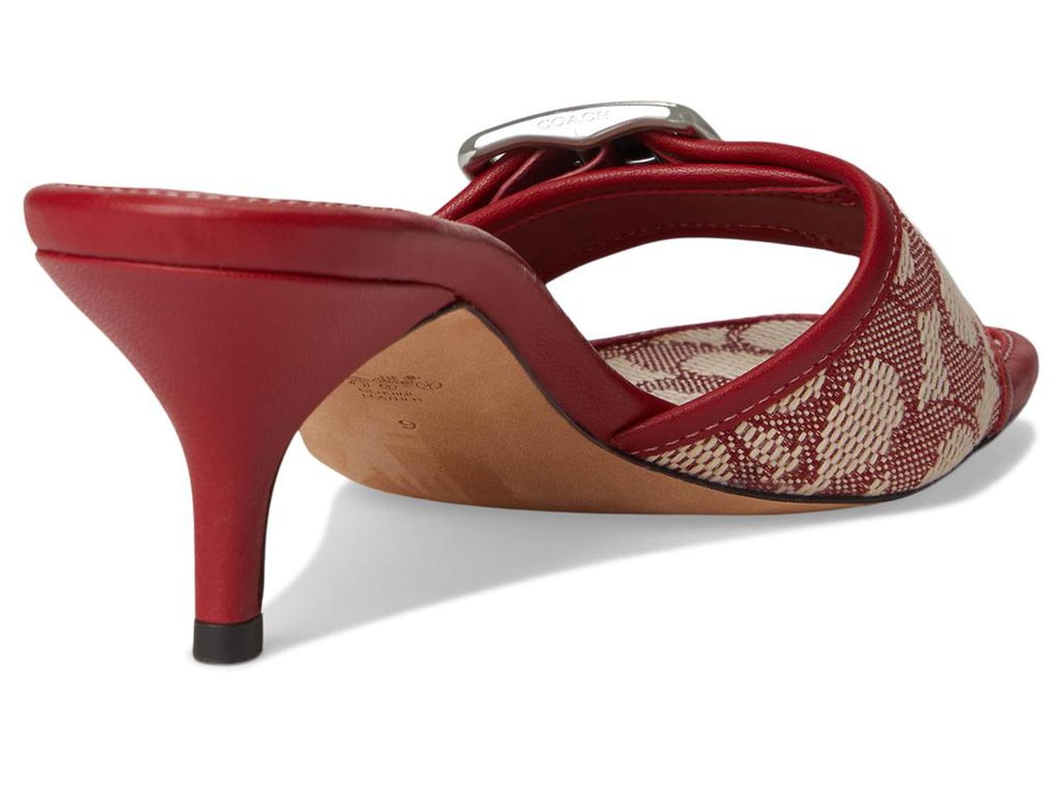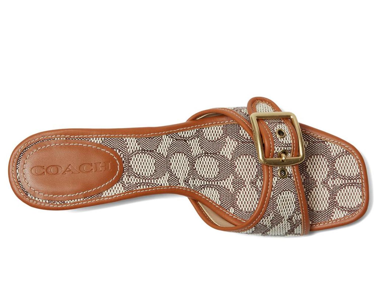 Please Note: COACH™ items cannot be shipped to military addresses (APO or FPO) and addresses in Hawaii, the Virgin Islands, Guam or any other locations outside of the continental US. COACH® Margot Sandals: Confidence in every stride. Embrace sophistication with a signature twist. Crafted from signature textile jacquard and leather, these sandals blend luxury and comfort effortlessly. The jacquard footbed cradles your feet, while the man-made leather lining and outsole ensure durability and style. Designed with a chic kitten heel and slip-on convenience, the Margot Sandals are perfect for elevating casual ensembles or complementing evening wear. Imported. Product measurements were taken using size 9, width M. Please note that measurements may vary by size. Measurements: Heel Height: 2 1/4 in Weight: 7 oz-