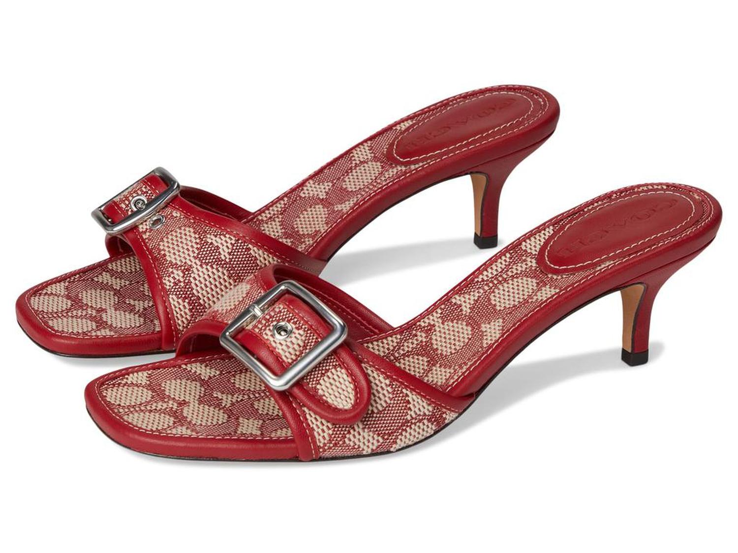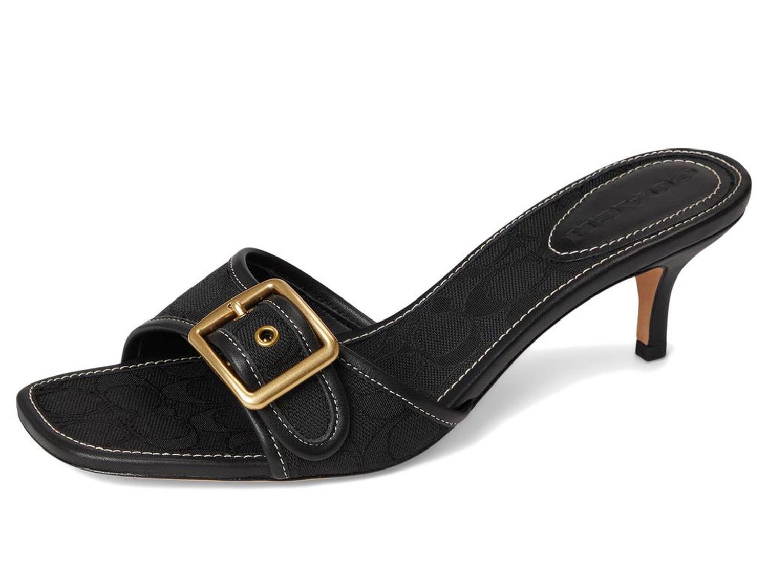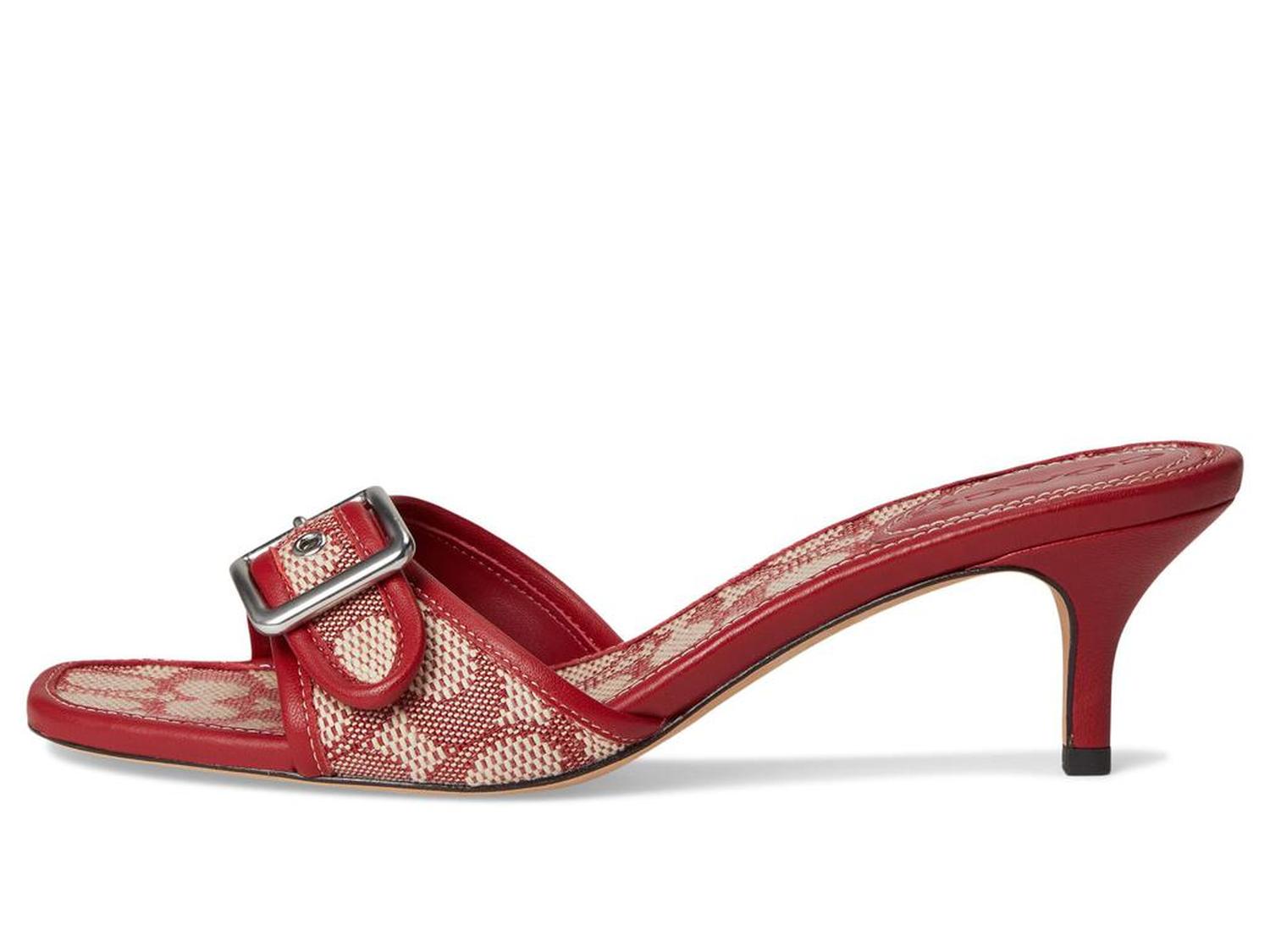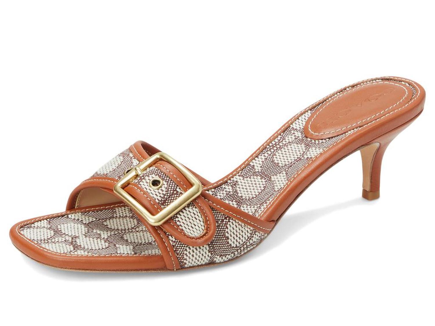 Please Note: COACH™ items cannot be shipped to military addresses (APO or FPO) and addresses in Hawaii, the Virgin Islands, Guam or any other locations outside of the continental US. COACH® Margot Sandals: Confidence in every stride. Embrace sophistication with a signature twist. Crafted from signature textile jacquard and leather, these sandals blend luxury and comfort effortlessly. The jacquard footbed cradles your feet, while the man-made leather lining and outsole ensure durability and style. Designed with a chic kitten heel and slip-on convenience, the Margot Sandals are perfect for elevating casual ensembles or complementing evening wear. Imported. Product measurements were taken using size 9, width M. Please note that measurements may vary by size. Measurements: Heel Height: 2 1/4 in Weight: 7 oz-