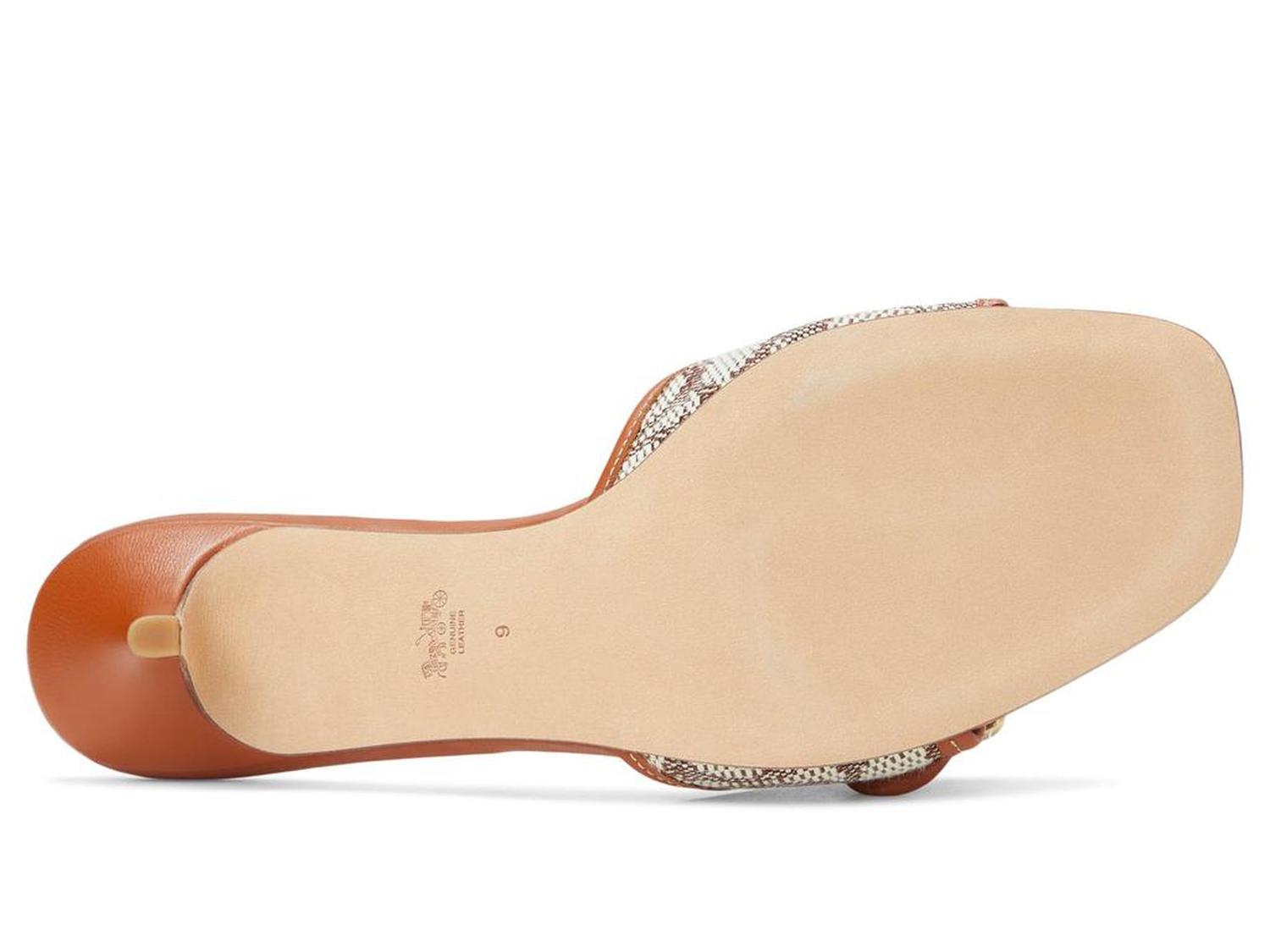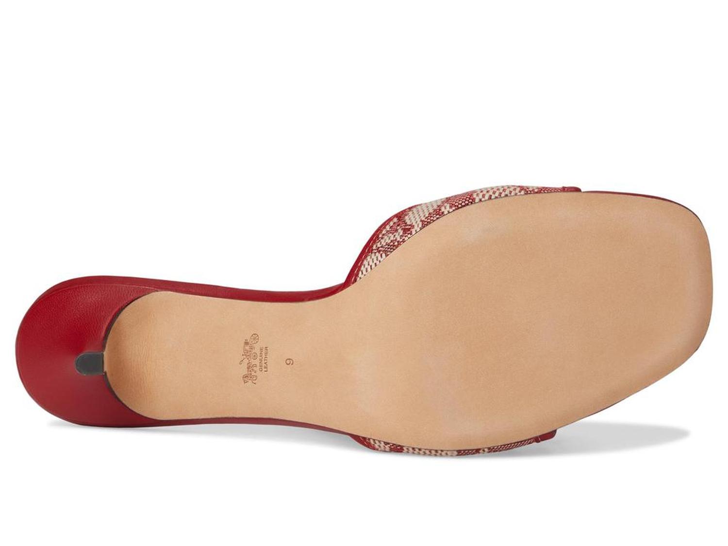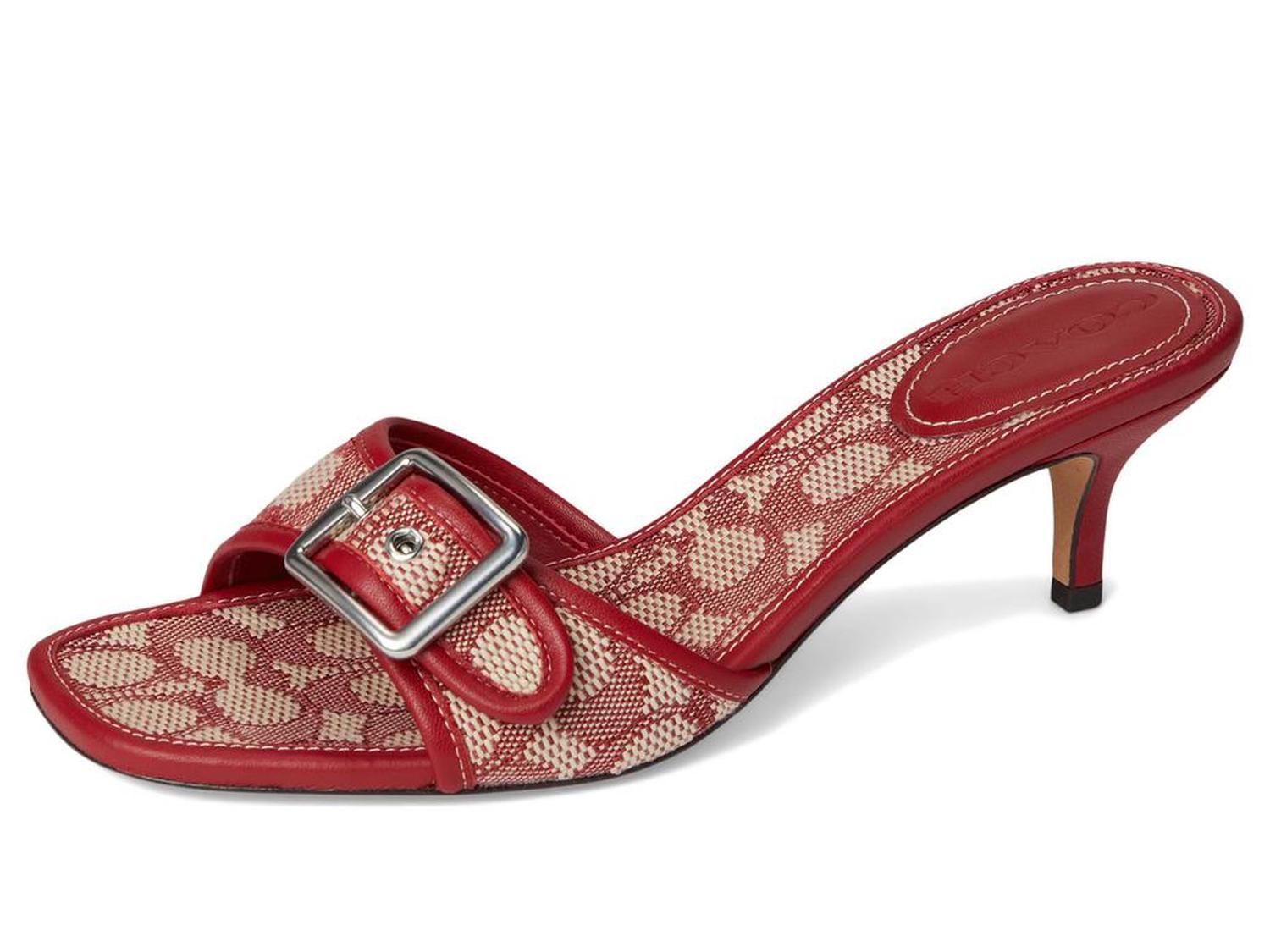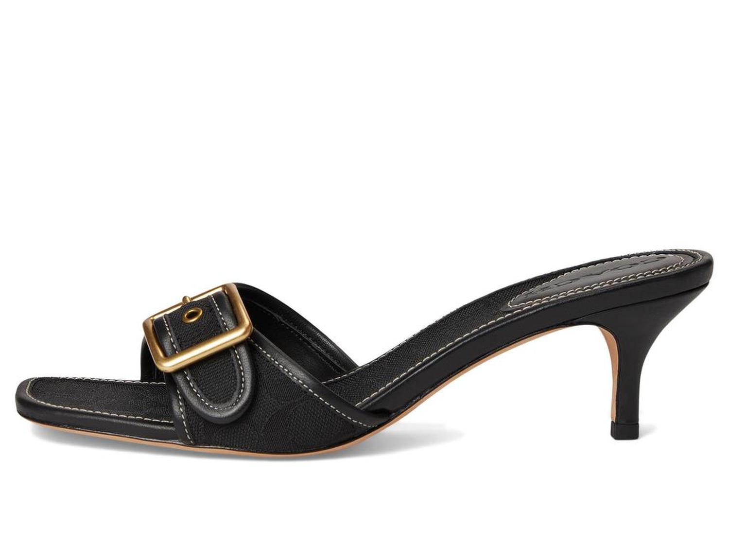 Please Note: COACH™ items cannot be shipped to military addresses (APO or FPO) and addresses in Hawaii, the Virgin Islands, Guam or any other locations outside of the continental US. COACH® Margot Sandals: Confidence in every stride. Embrace sophistication with a signature twist. Crafted from signature textile jacquard and leather, these sandals blend luxury and comfort effortlessly. The jacquard footbed cradles your feet, while the man-made leather lining and outsole ensure durability and style. Designed with a chic kitten heel and slip-on convenience, the Margot Sandals are perfect for elevating casual ensembles or complementing evening wear. Imported. Product measurements were taken using size 9, width M. Please note that measurements may vary by size. Measurements: Heel Height: 2 1/4 in Weight: 7 oz-