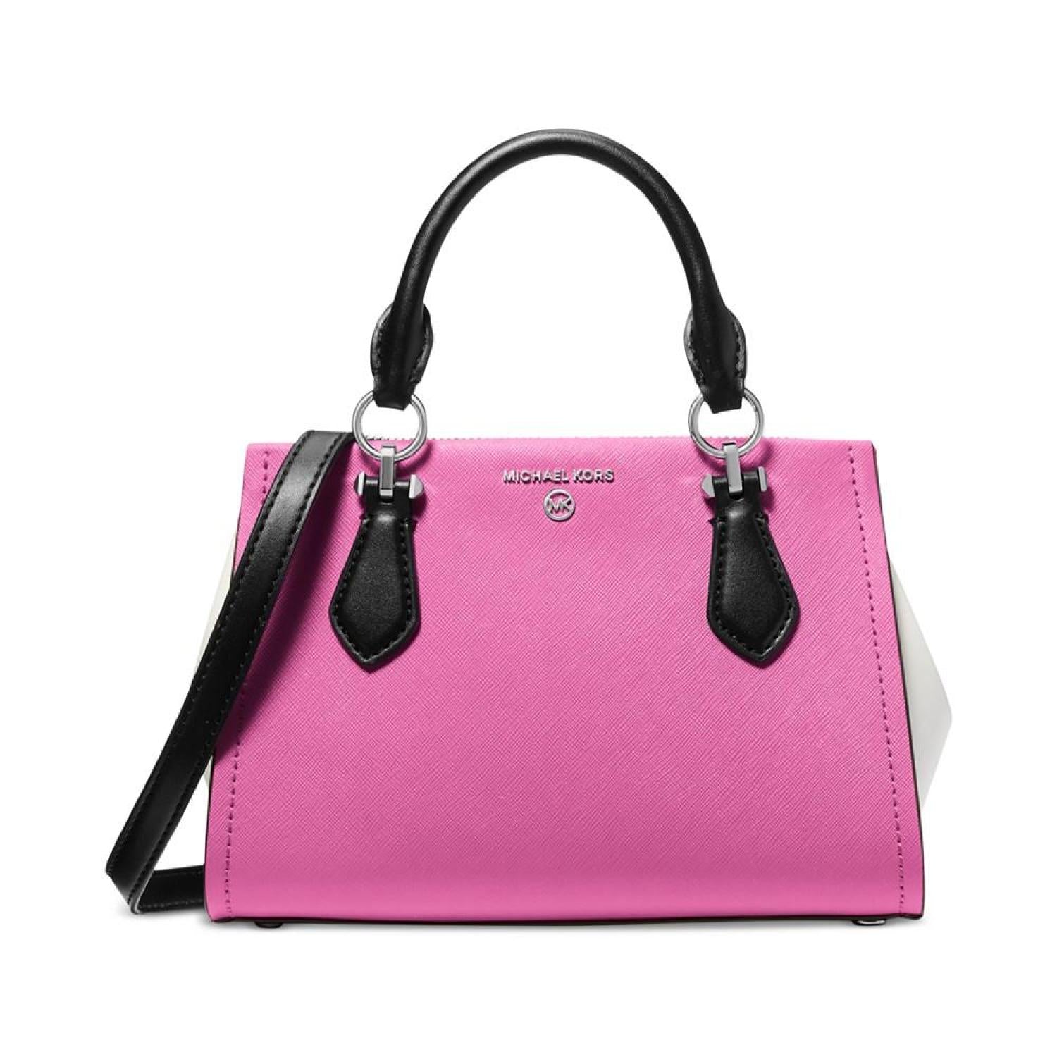 • Crafted in color blocked leather showcasing juicy pink, this crossbody by MICHAEL Michael Kors is the perfect accessory to add a splash of color to your look.