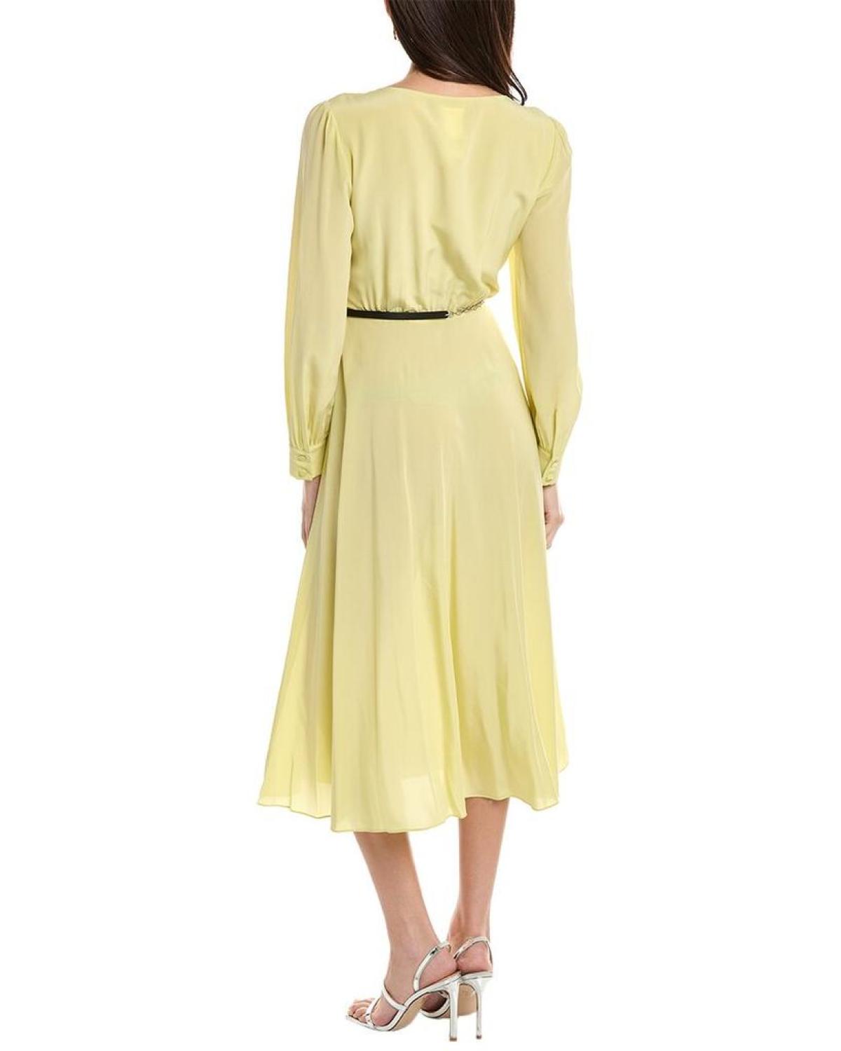 • Elevate your wardrobe with the Max Mara Studio Dionea Silk Midi Dress. This stunning piece features a pleated surplice bodice, button cuffs, and a belted waist for a flattering silhouette. The draped ruffle trim at the front adds a touch of sophistication, while the vibrant green color makes a statement. Crafted from 100% silk with a 100% polyester lining, this dress is luxurious and comfortable. Whether you're attending a special event or simply want to elevate your everyday look, this dress is a must-have. Dry clean only. Imported. Model is 5'9 and is wearing a size 4. Measurements may vary slightly by size. Add this gorgeous dress to your collection today!