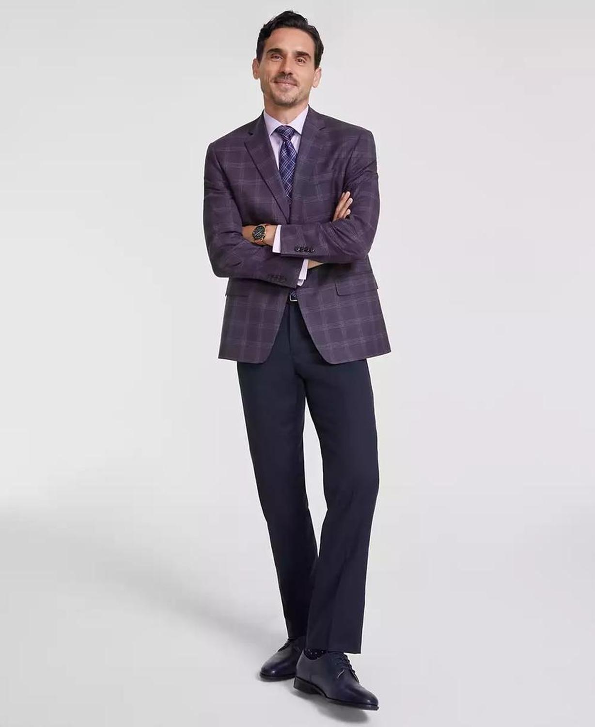 Men's Classic-Fit Burgundy Plaid Sport Coat