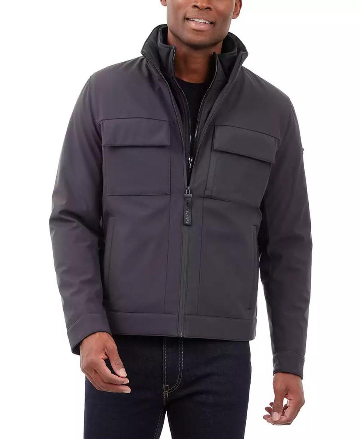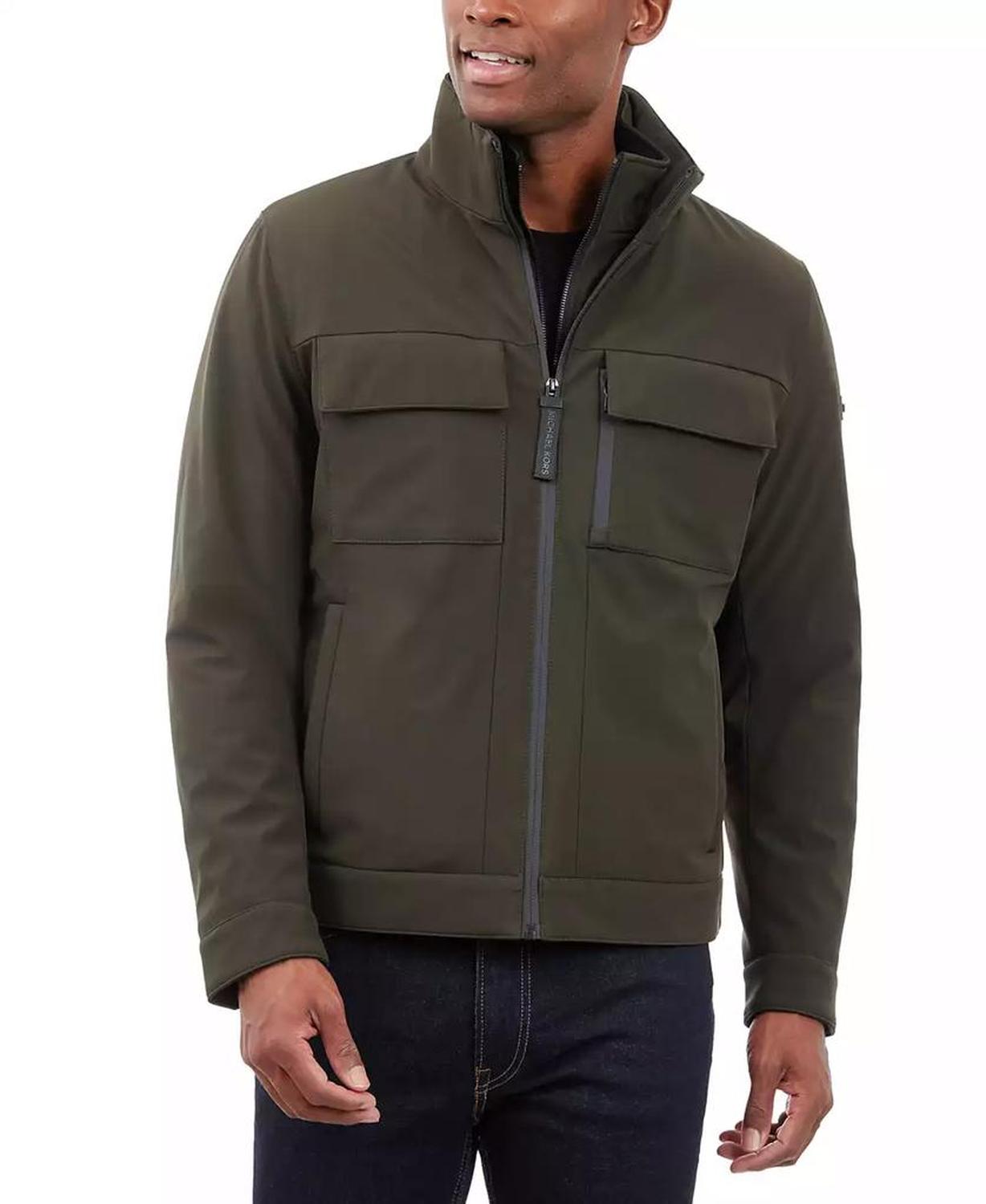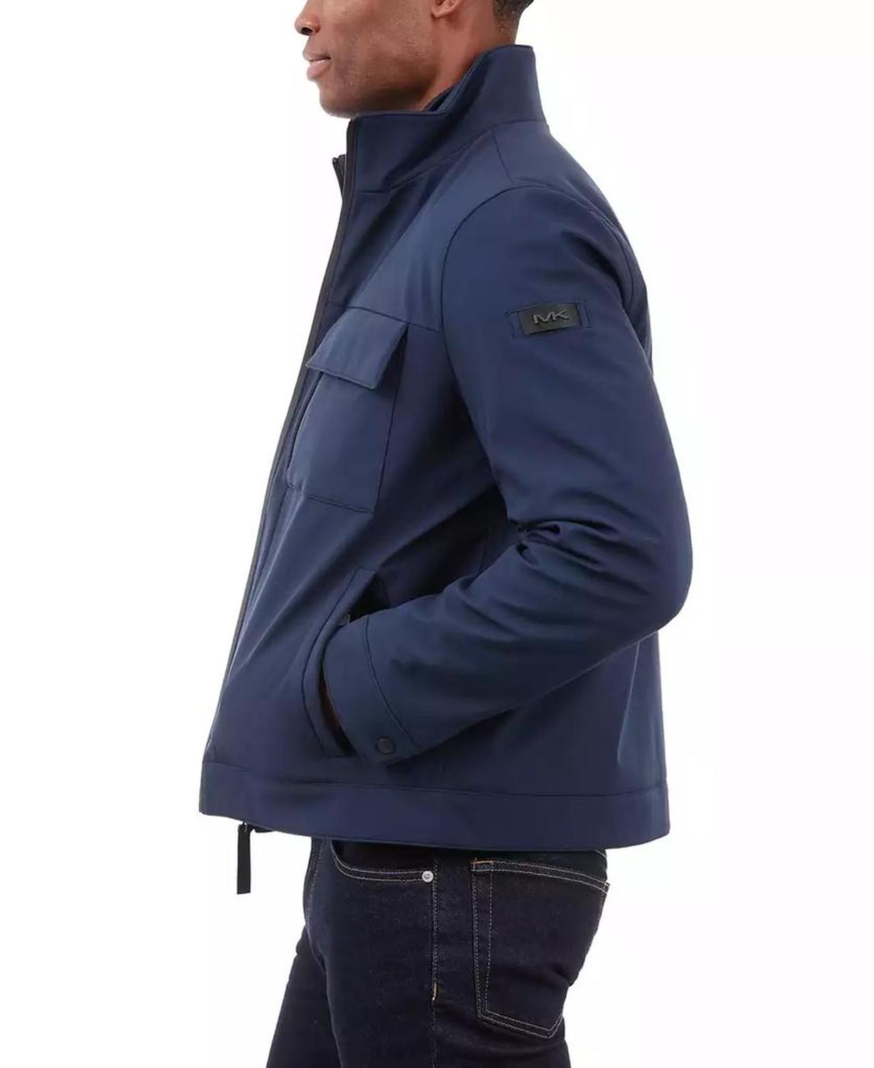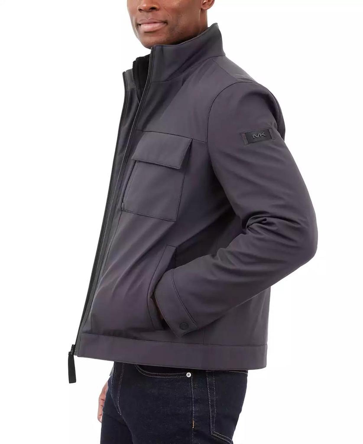 • This signature Michael Kors soft-shell jacket is perfect for date nights and chilly nights alike. When the temperatures start to dip, rejoice in the fleece-lined interior and toasty stand collar.
