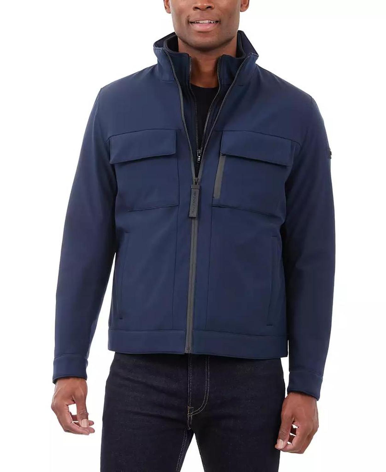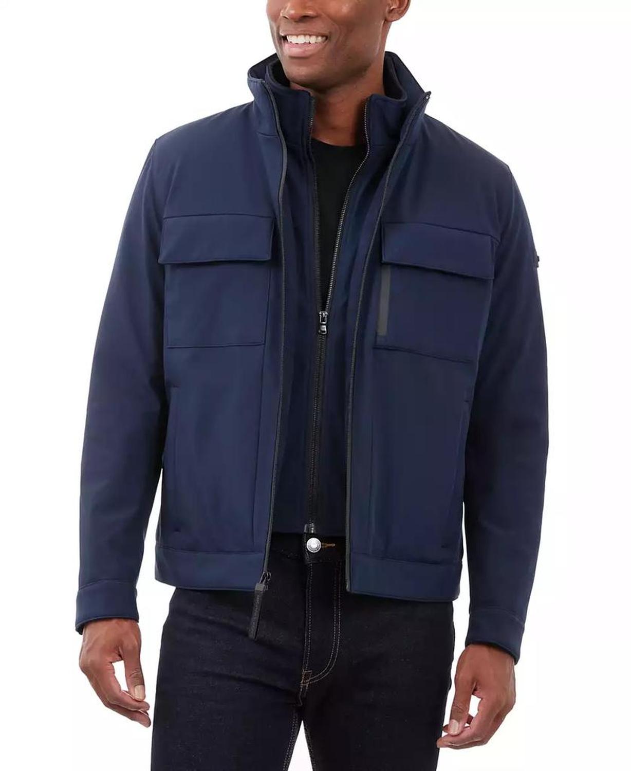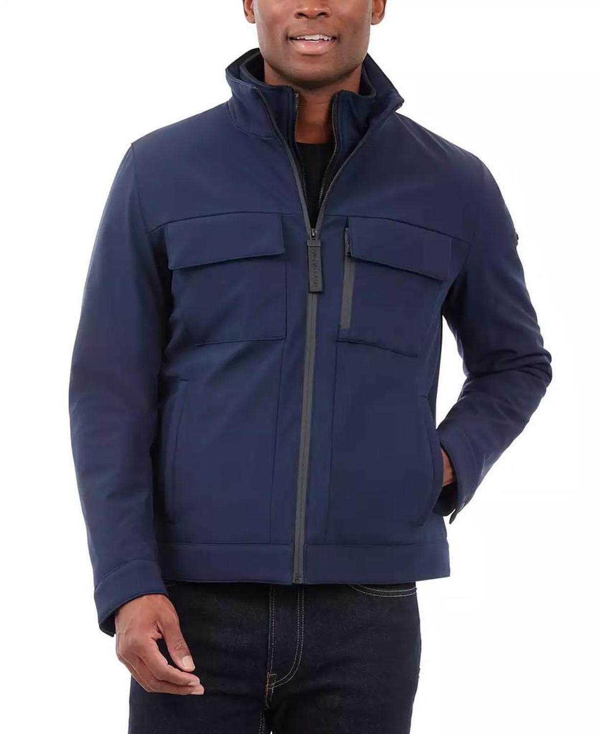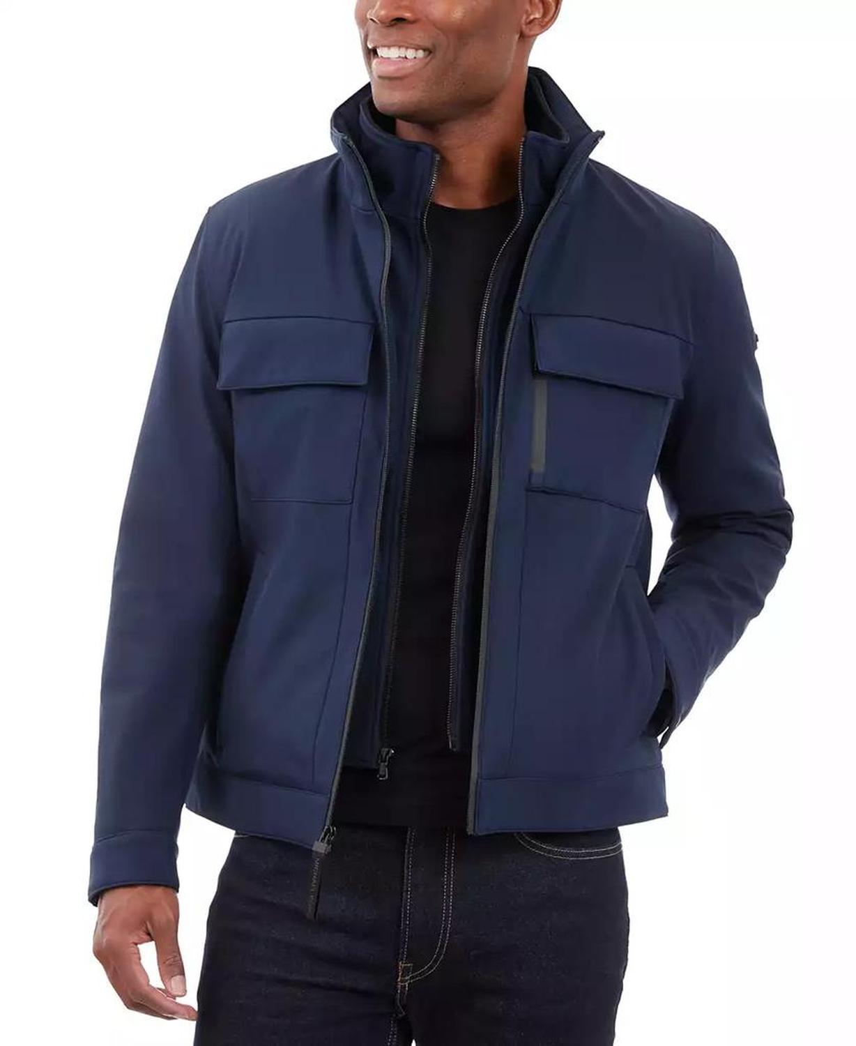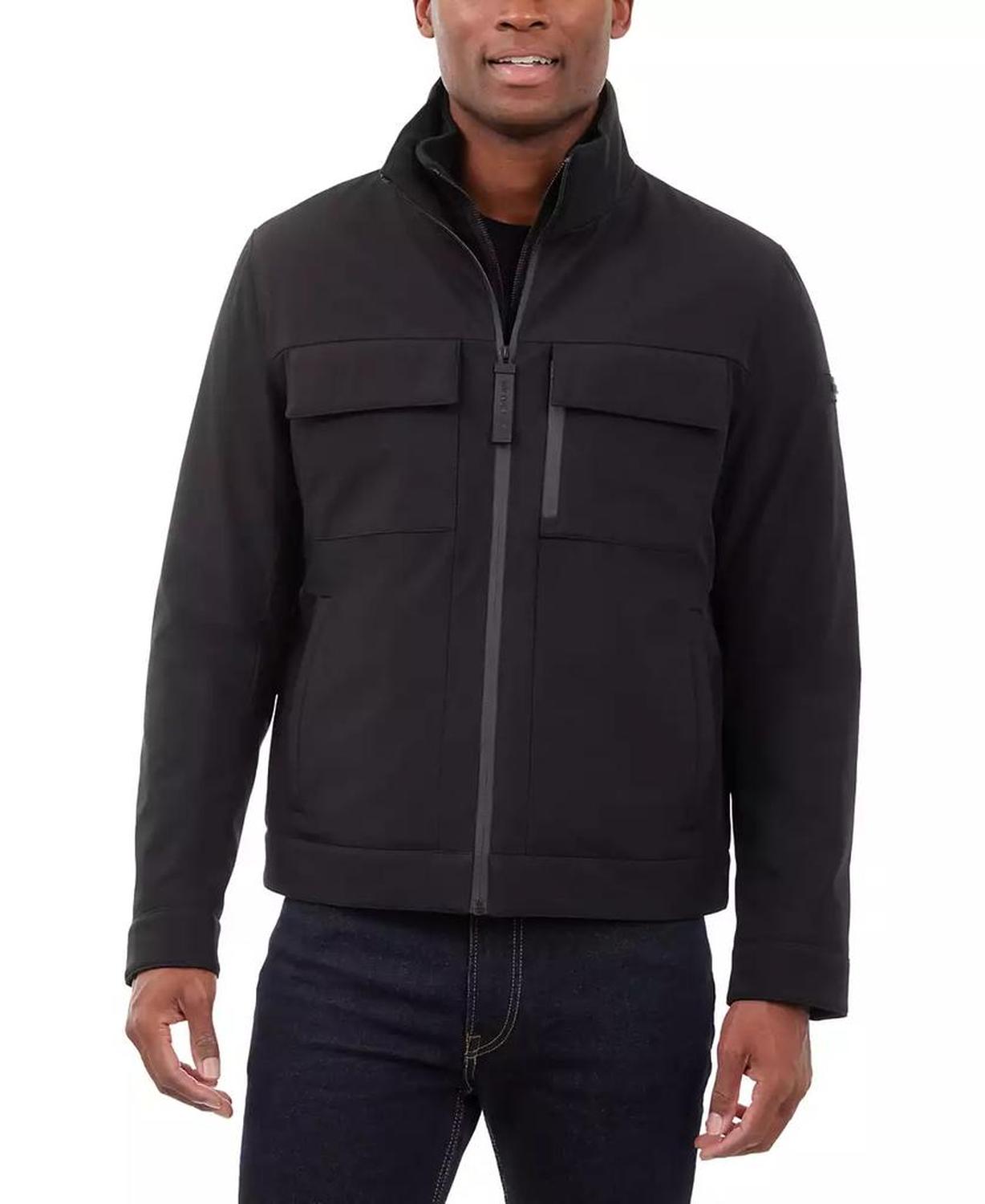 • This signature Michael Kors soft-shell jacket is perfect for date nights and chilly nights alike. When the temperatures start to dip, rejoice in the fleece-lined interior and toasty stand collar.
