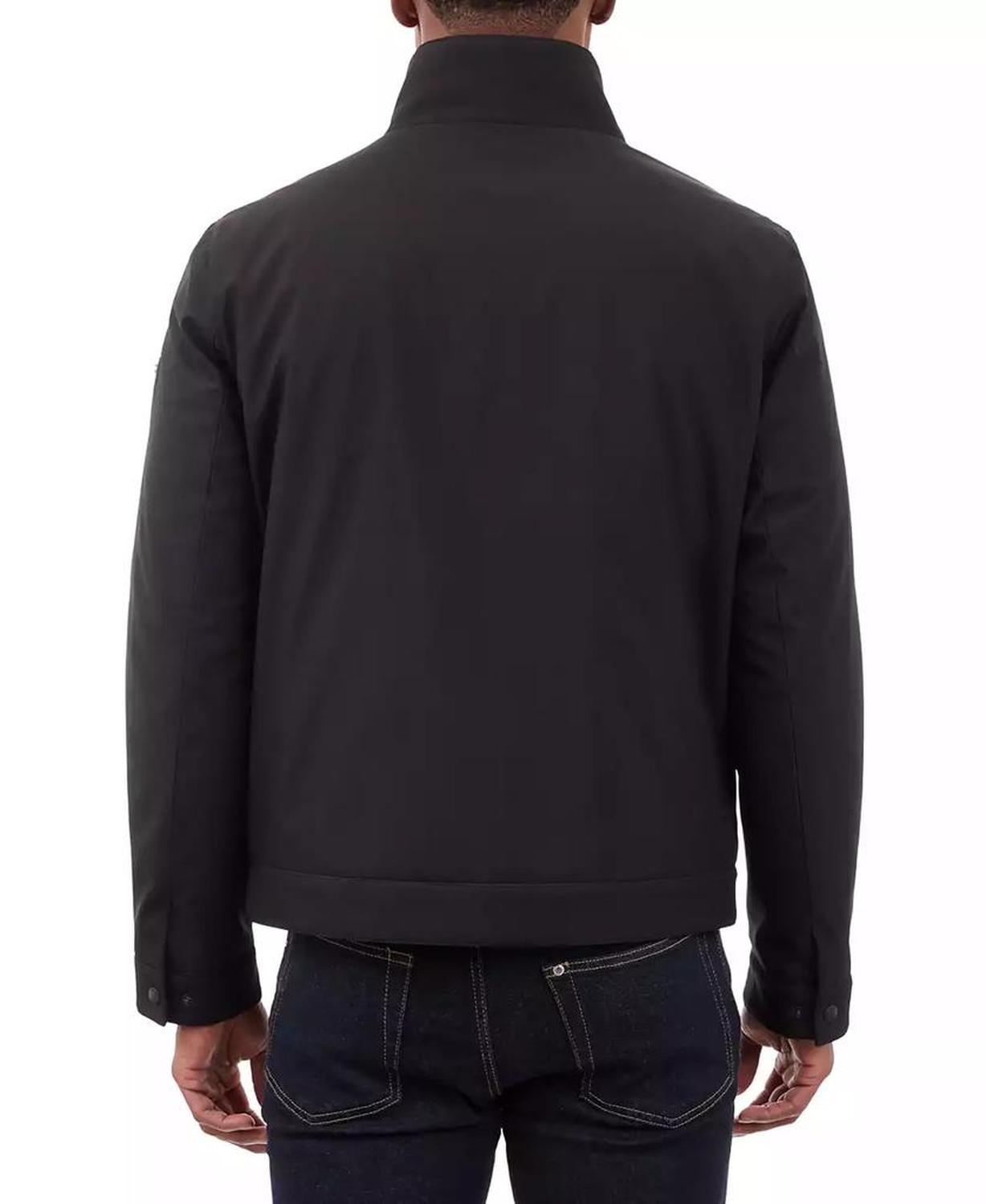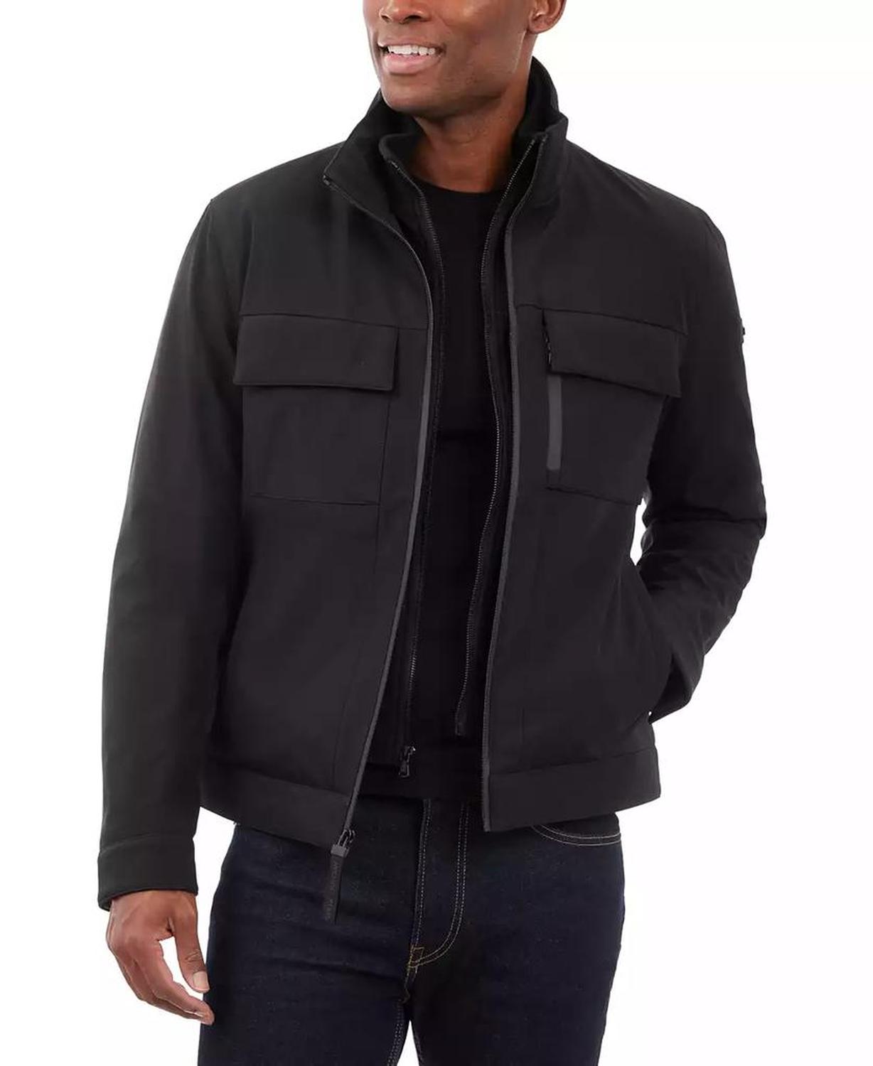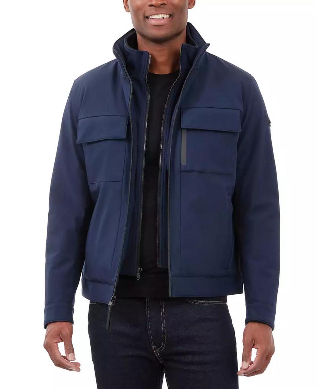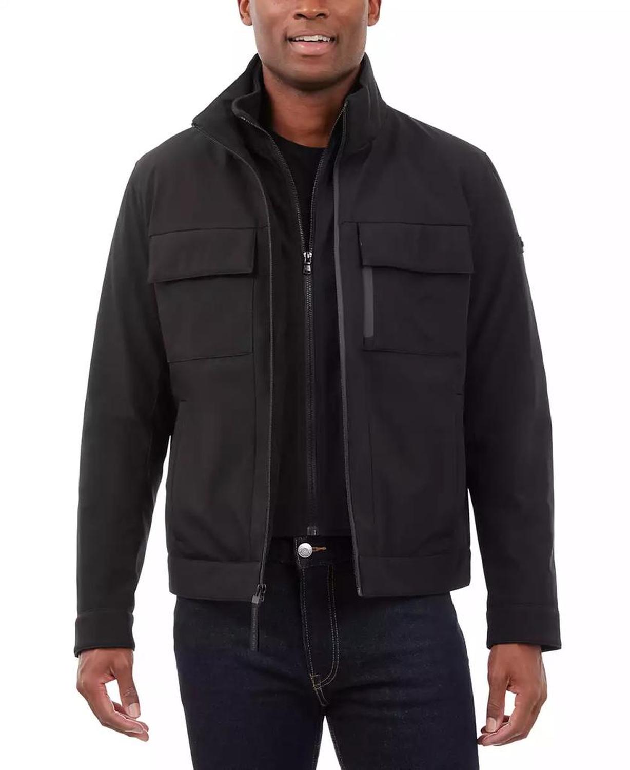 • This signature Michael Kors soft-shell jacket is perfect for date nights and chilly nights alike. When the temperatures start to dip, rejoice in the fleece-lined interior and toasty stand collar.