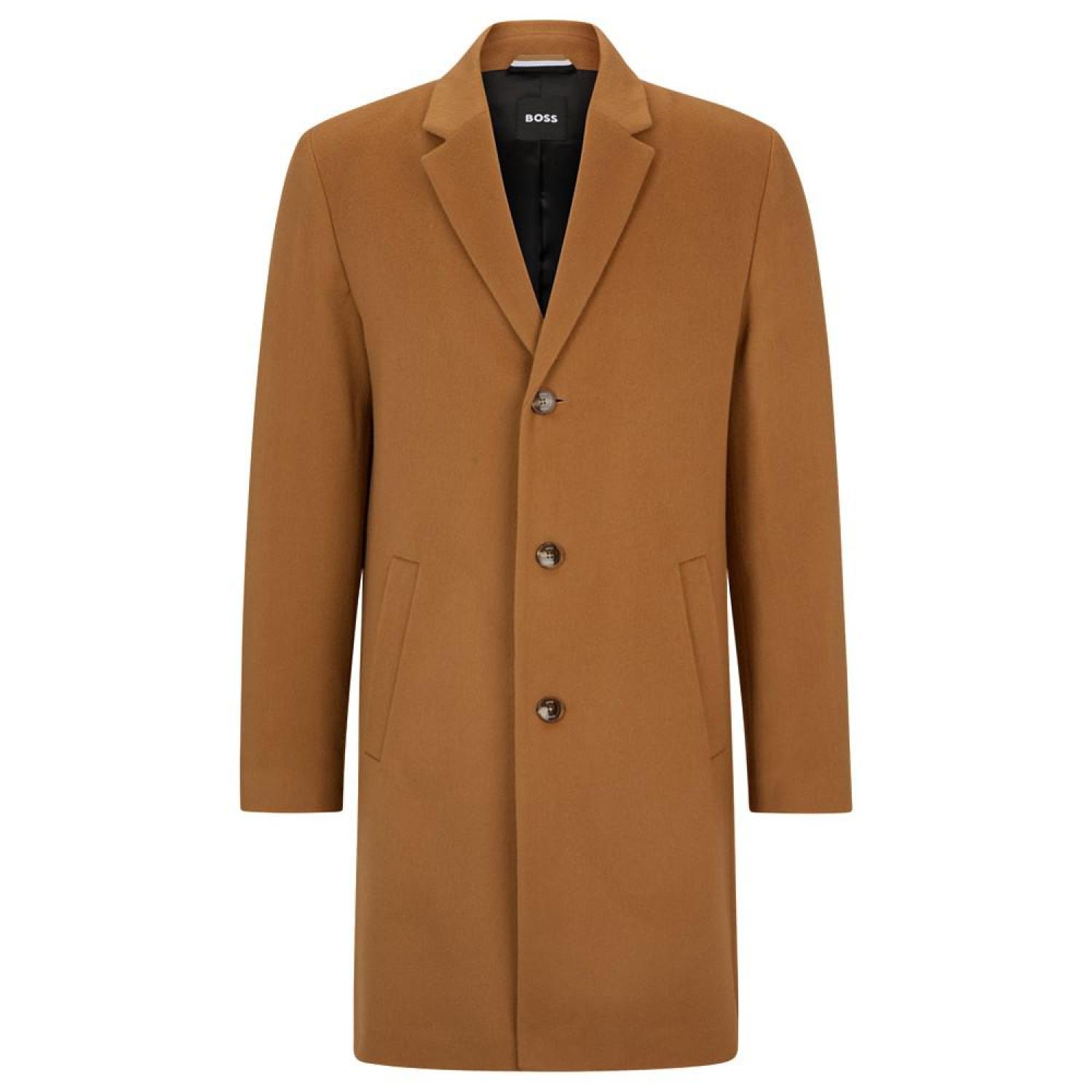 An elegant tailored coat with notch lapels by BOSS menswear, crafted in a wool-rich blend and fully lined for ease.